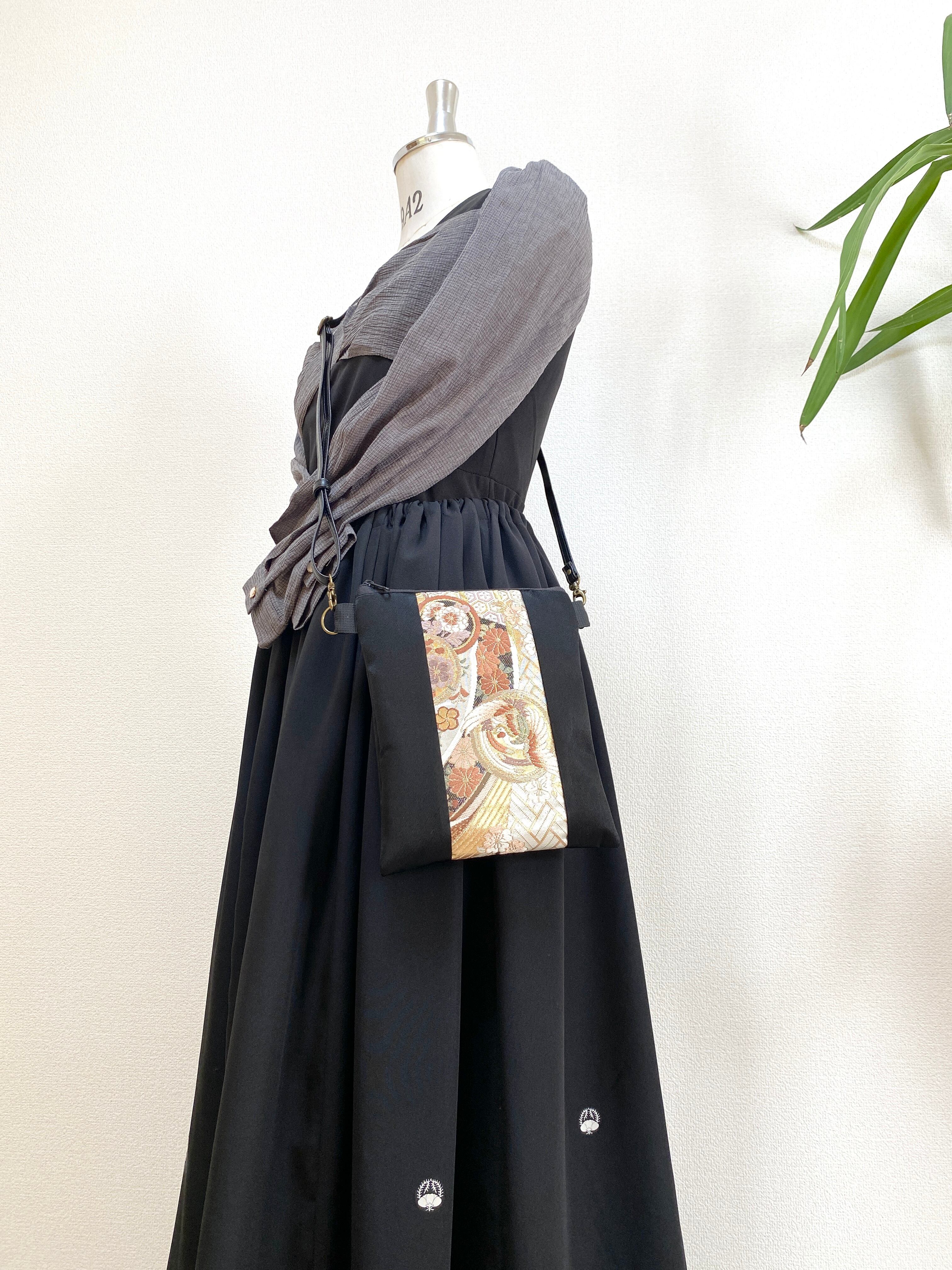大人可愛いサコッシュバッグ帯リメイクサコッシュバッグ着物リメイクバッグスマホショルダー帯リメイクバッグハンドメイド送料込みNO.5877