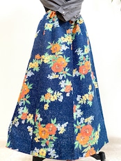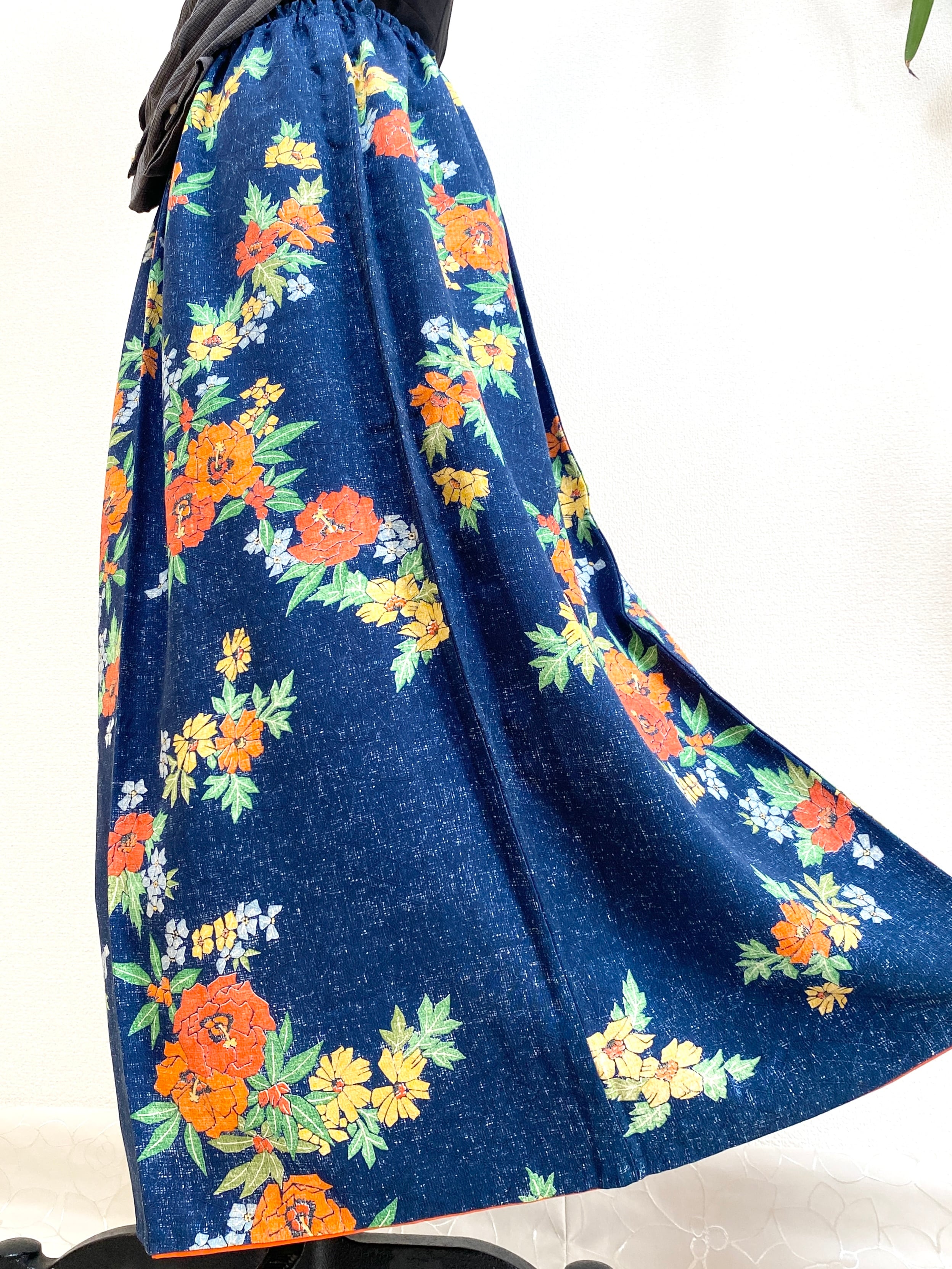 着物をリメイクして作製したウエストゴムロングドレススカートフリーサイズです