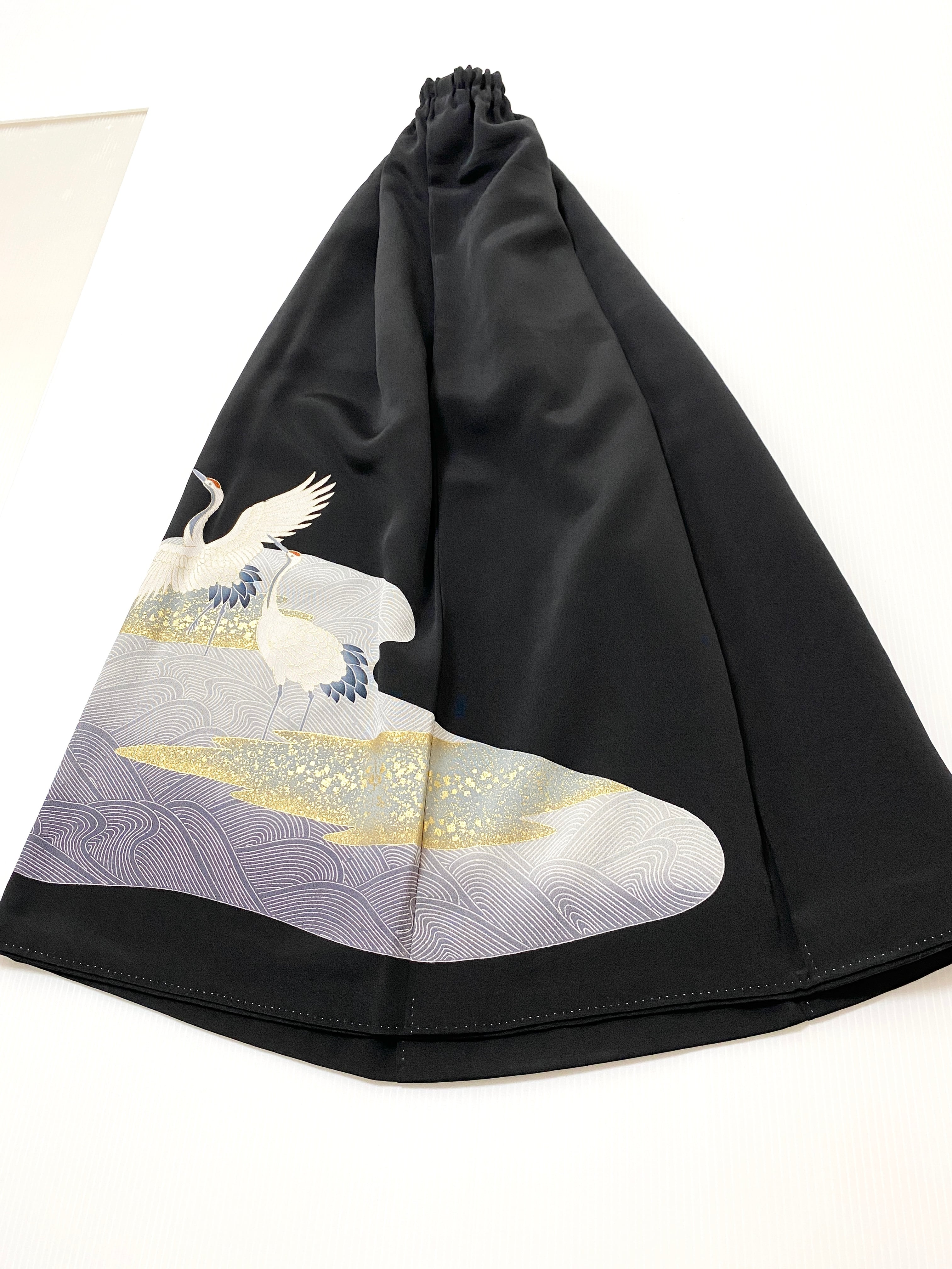大人可愛いセレブ着物スカートフリーサイズ黒留袖着物リメイクウエストゴムロングスカート