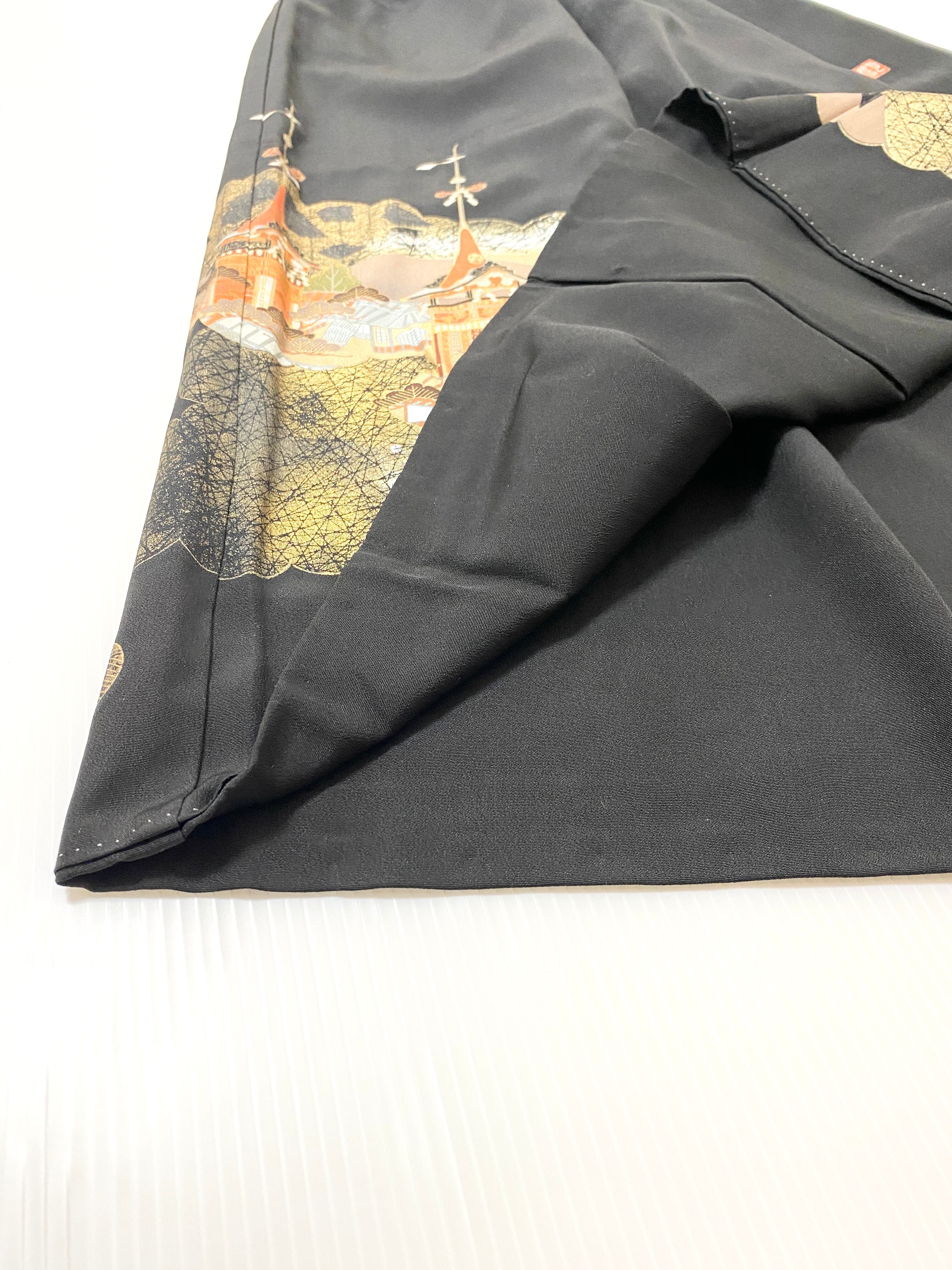 大人可愛いセレブ着物スカートフリーサイズ黒留袖着物リメイクウエストゴムロングスカート