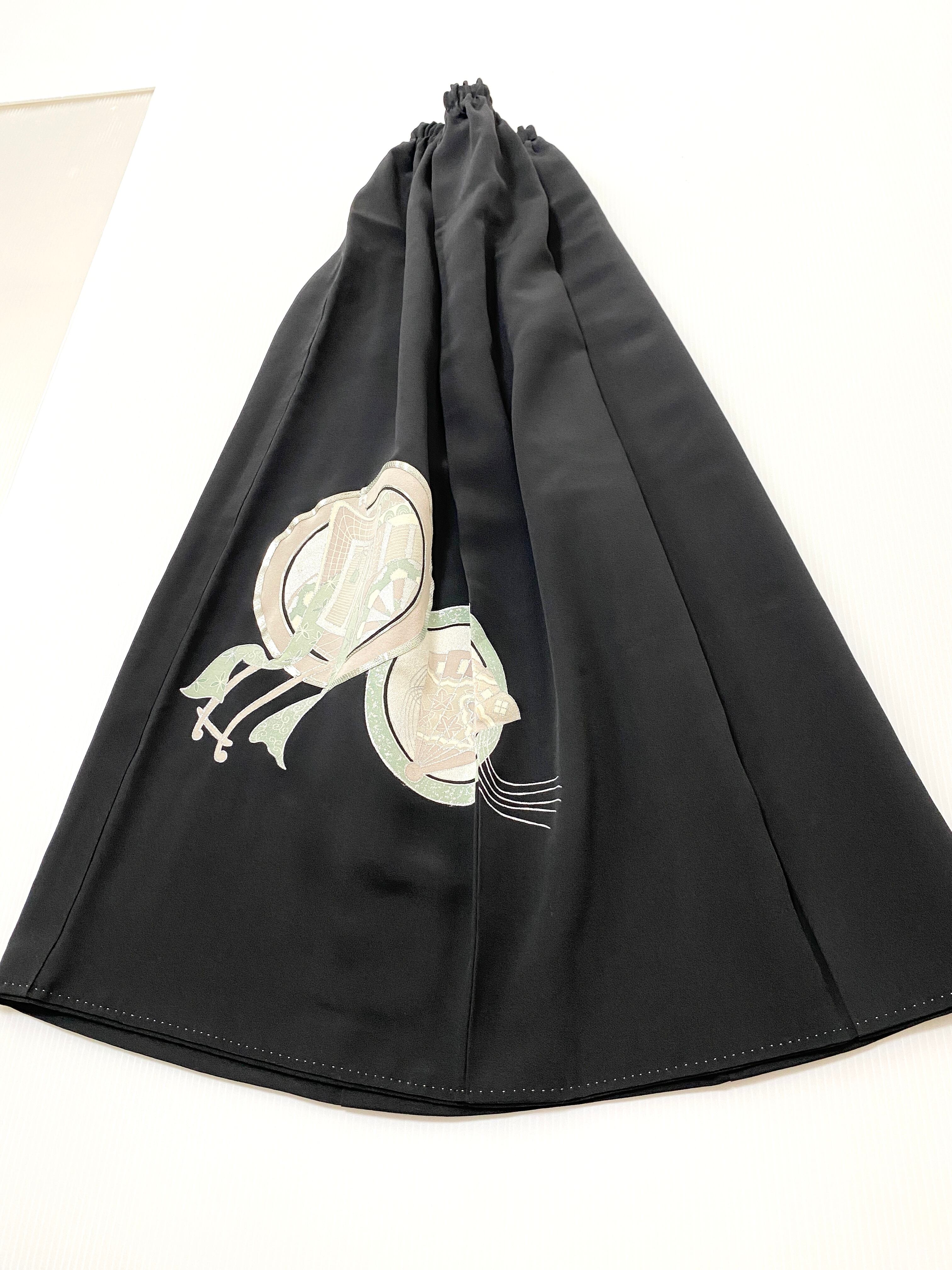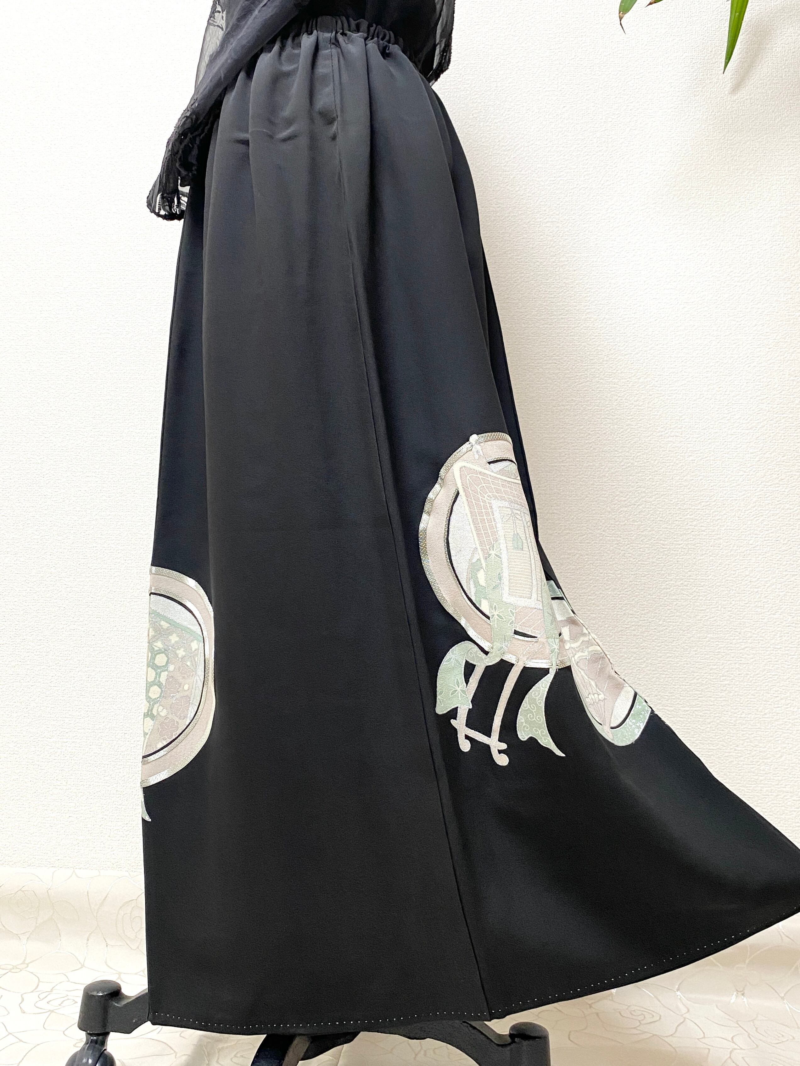 大人可愛いセレブ着物スカートフリーサイズ黒留袖着物リメイクウエストゴムロングスカート