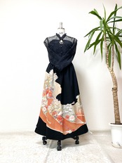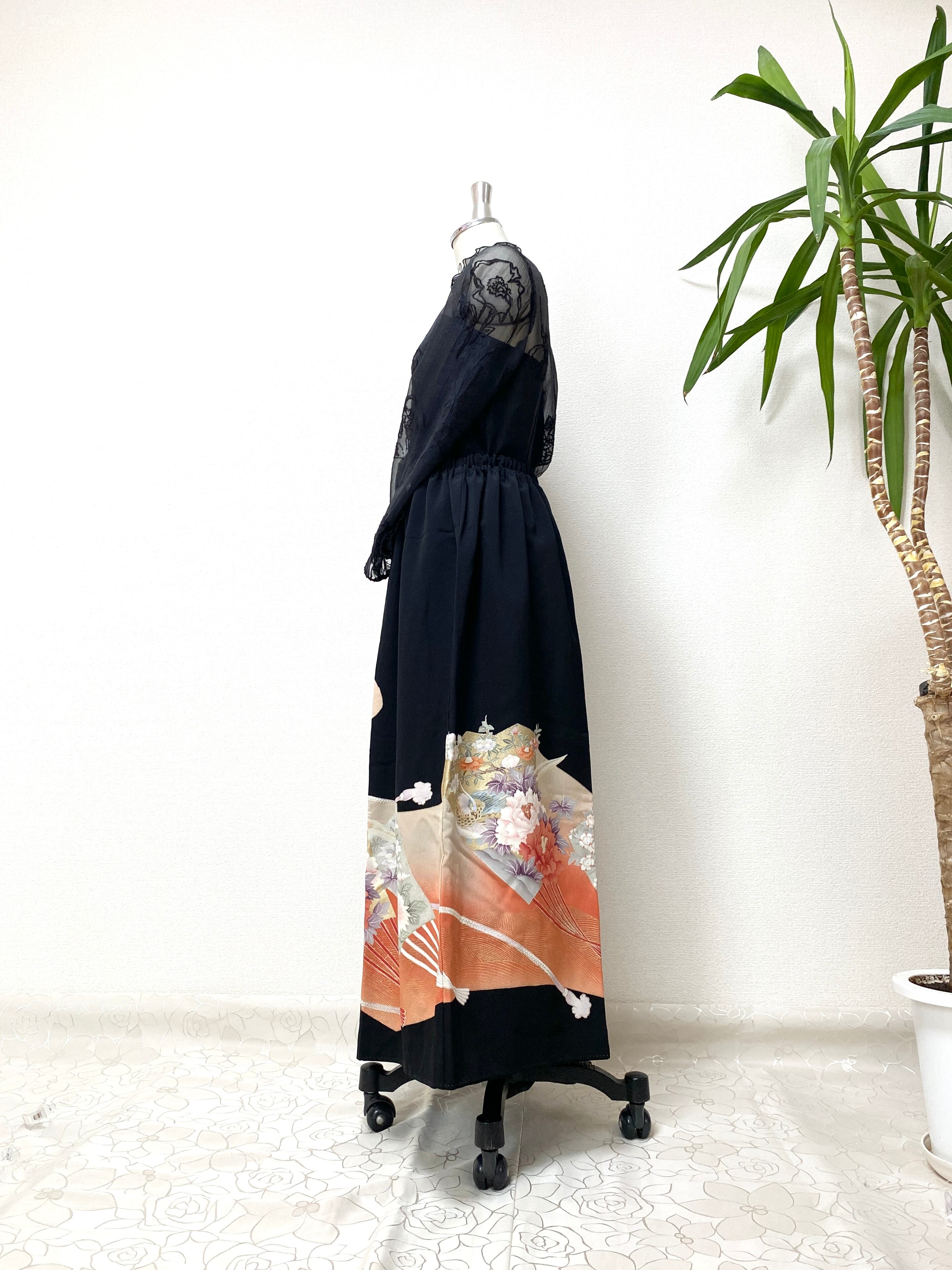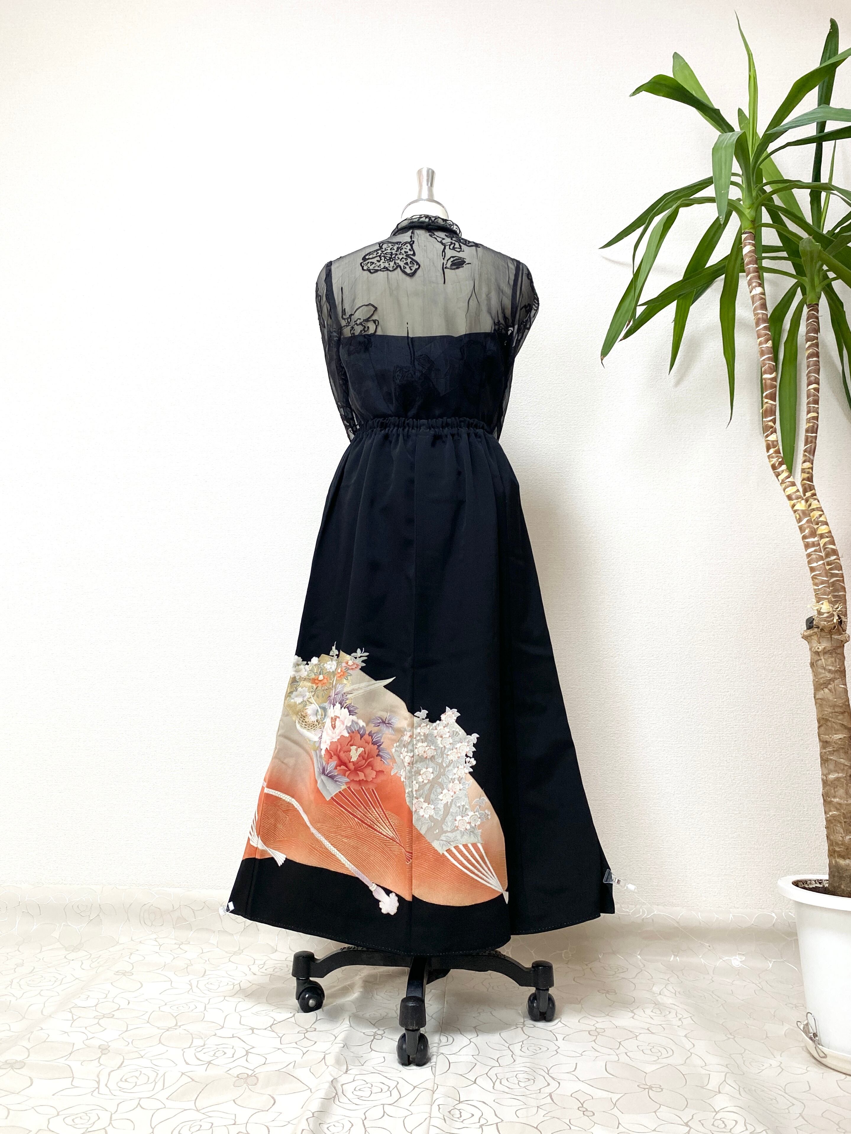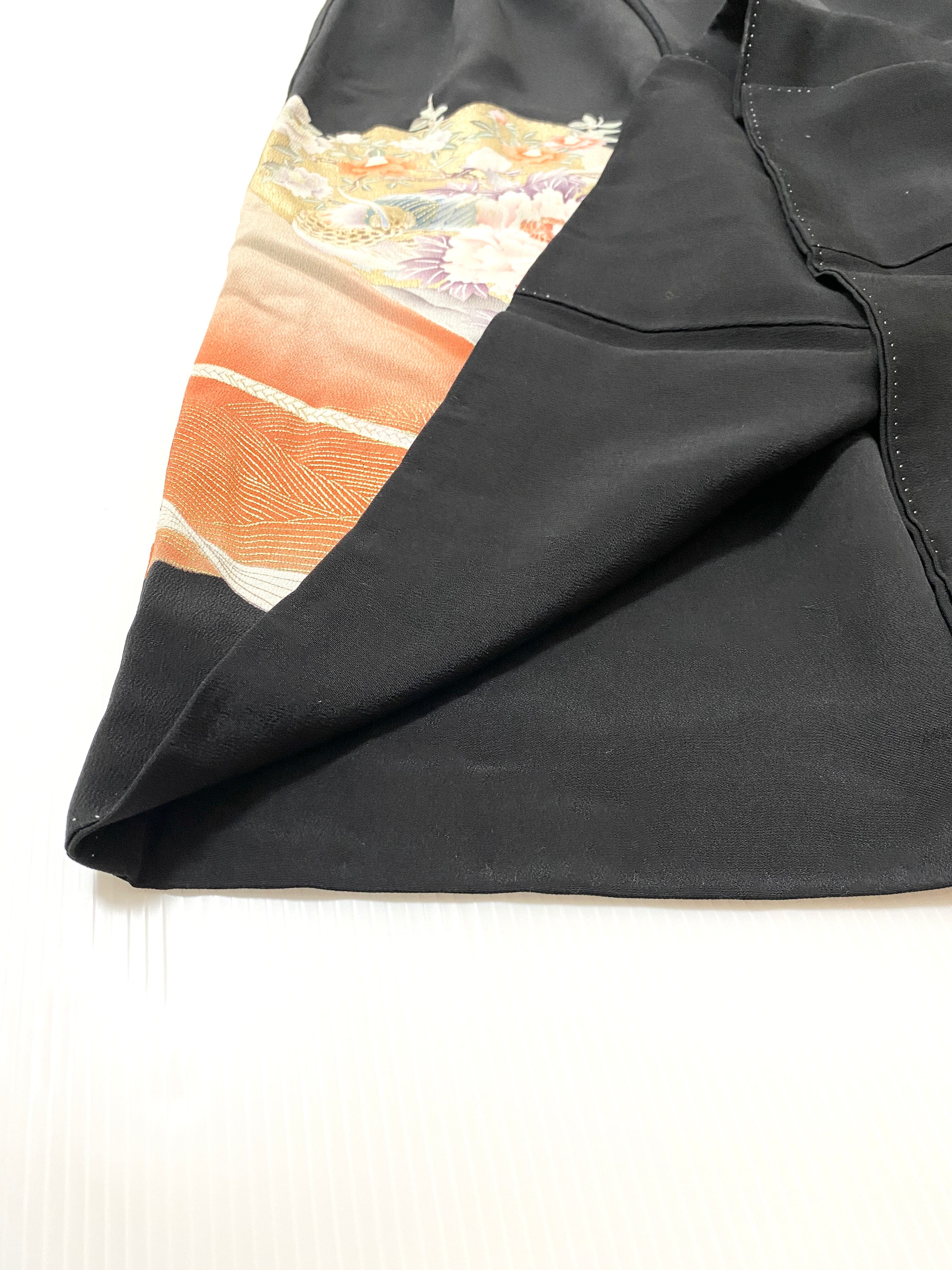 大人可愛いセレブ着物スカートフリーサイズ黒留袖着物リメイクウエストゴムロングスカート