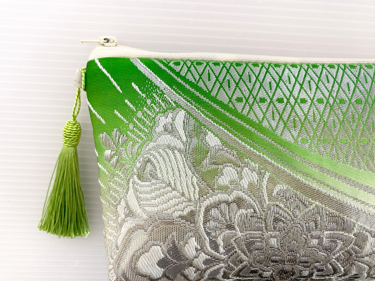 触り心地が滑らかで手にしっくりとくる安心感。絵柄の鮮やかさは日本の着物帯ならではの存在感で素晴らしく華やかな美しさ