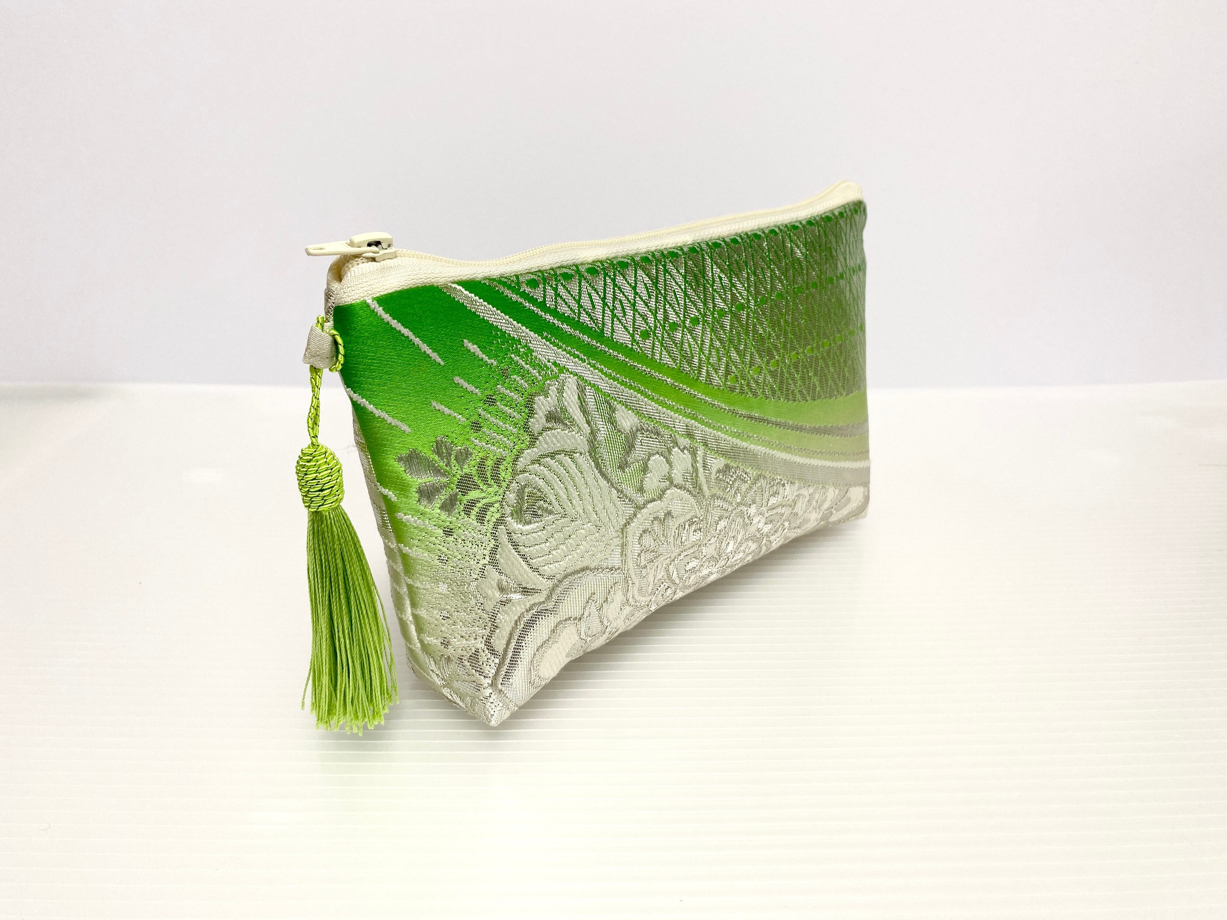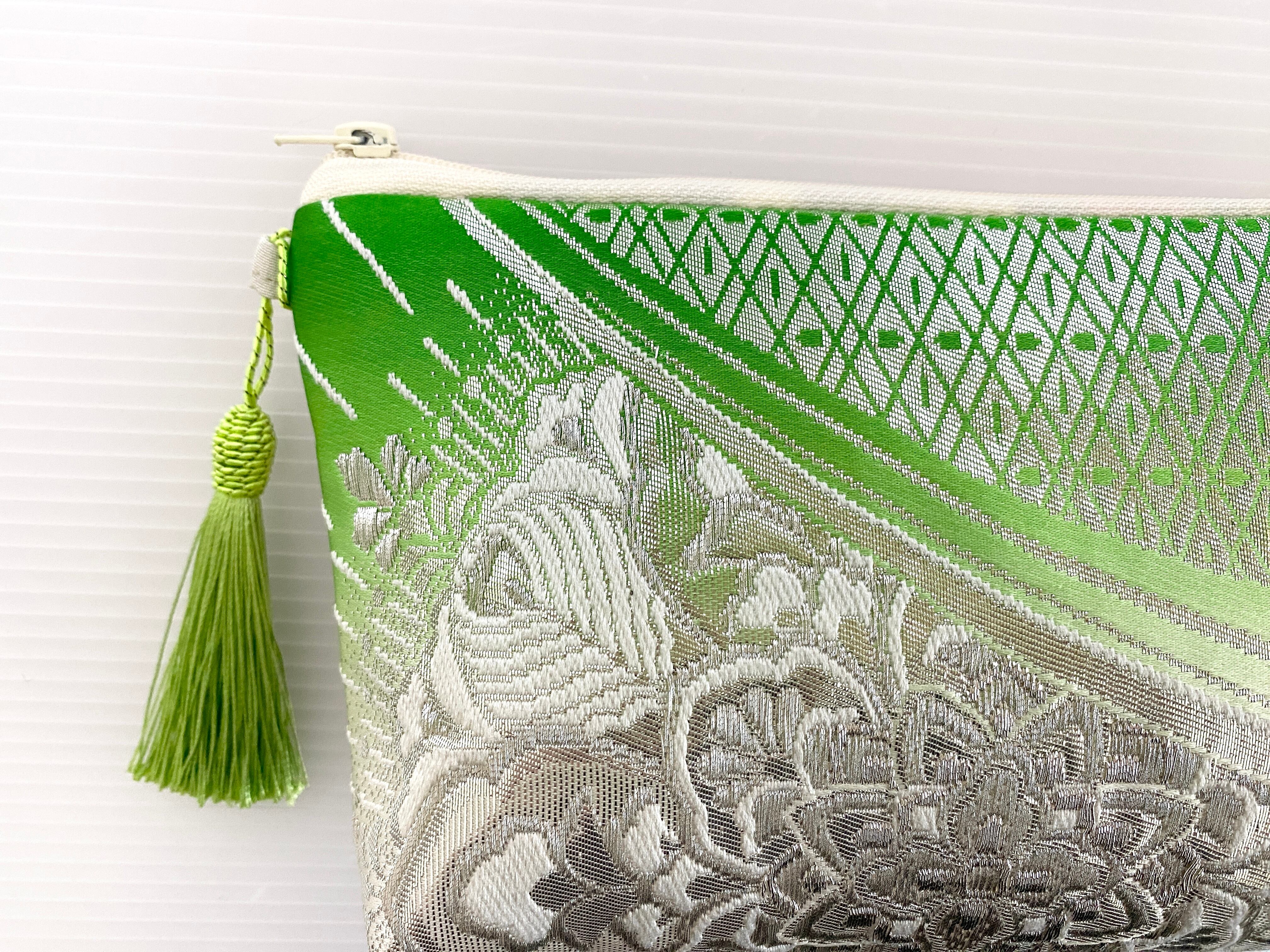 日本の古着物帯をリメイクして作製したポーチでハンドメイド品です