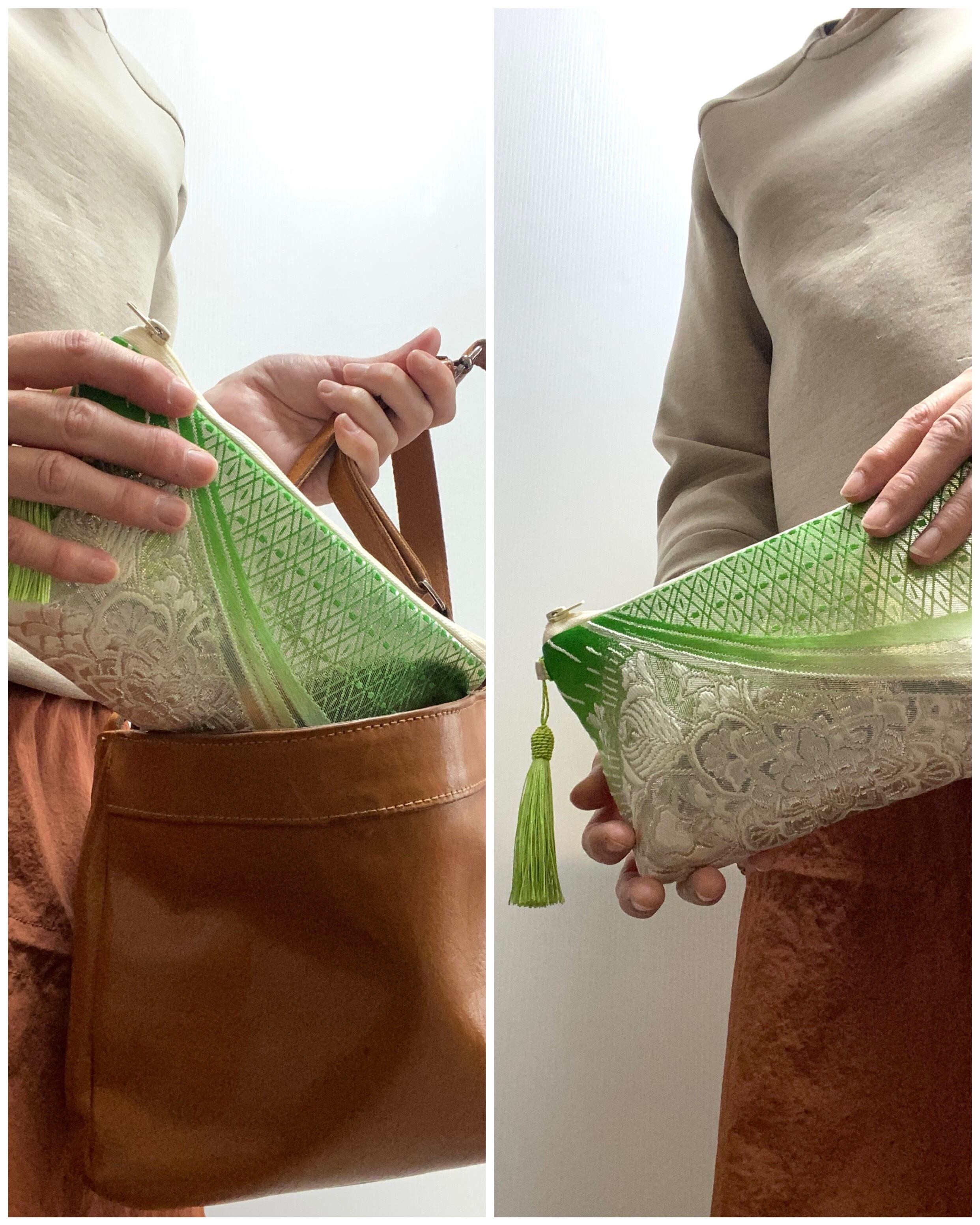 心を込めて1点1点作製している帯リメイクポーチ着物リメイクポーチです(*^-^*)