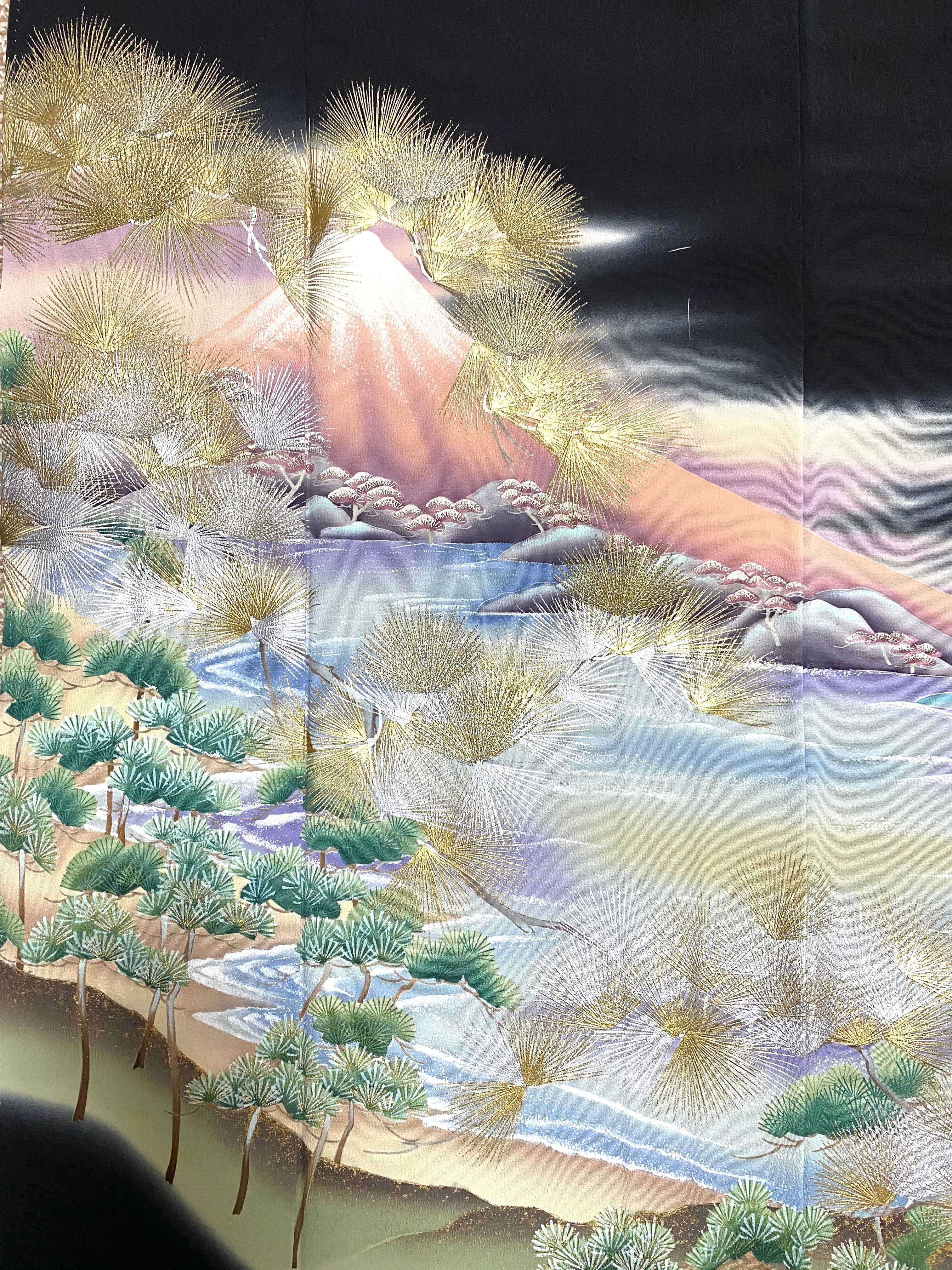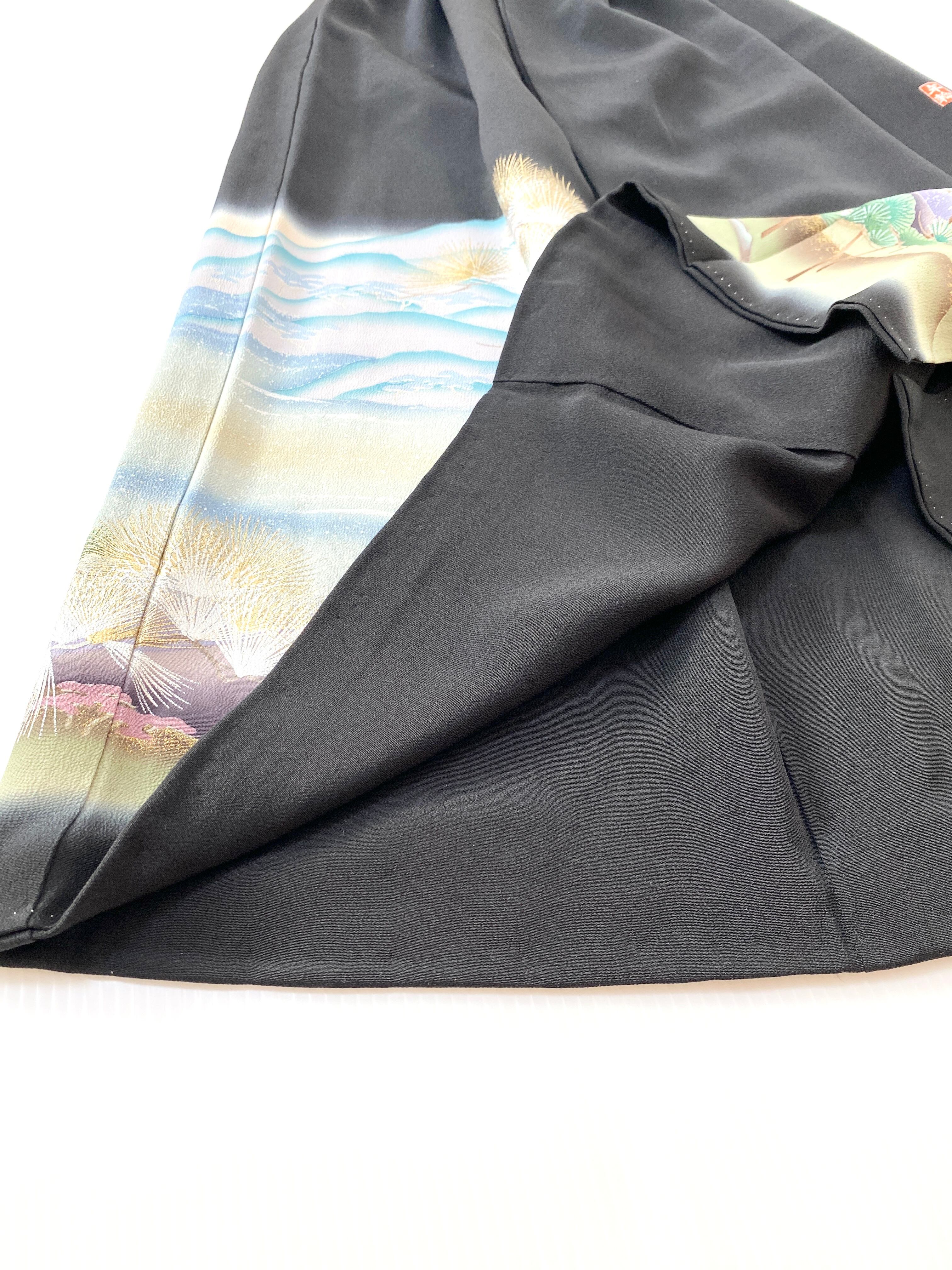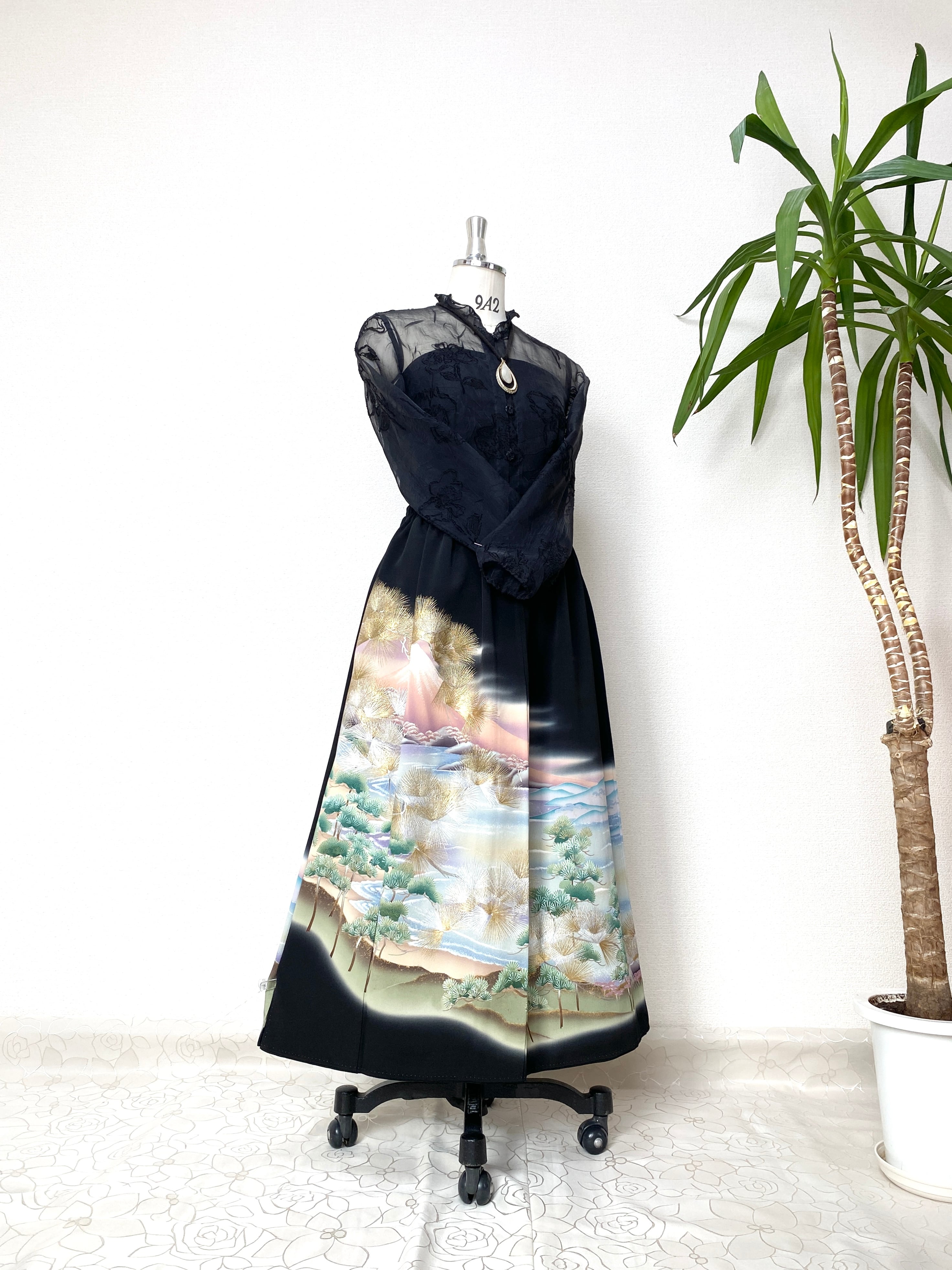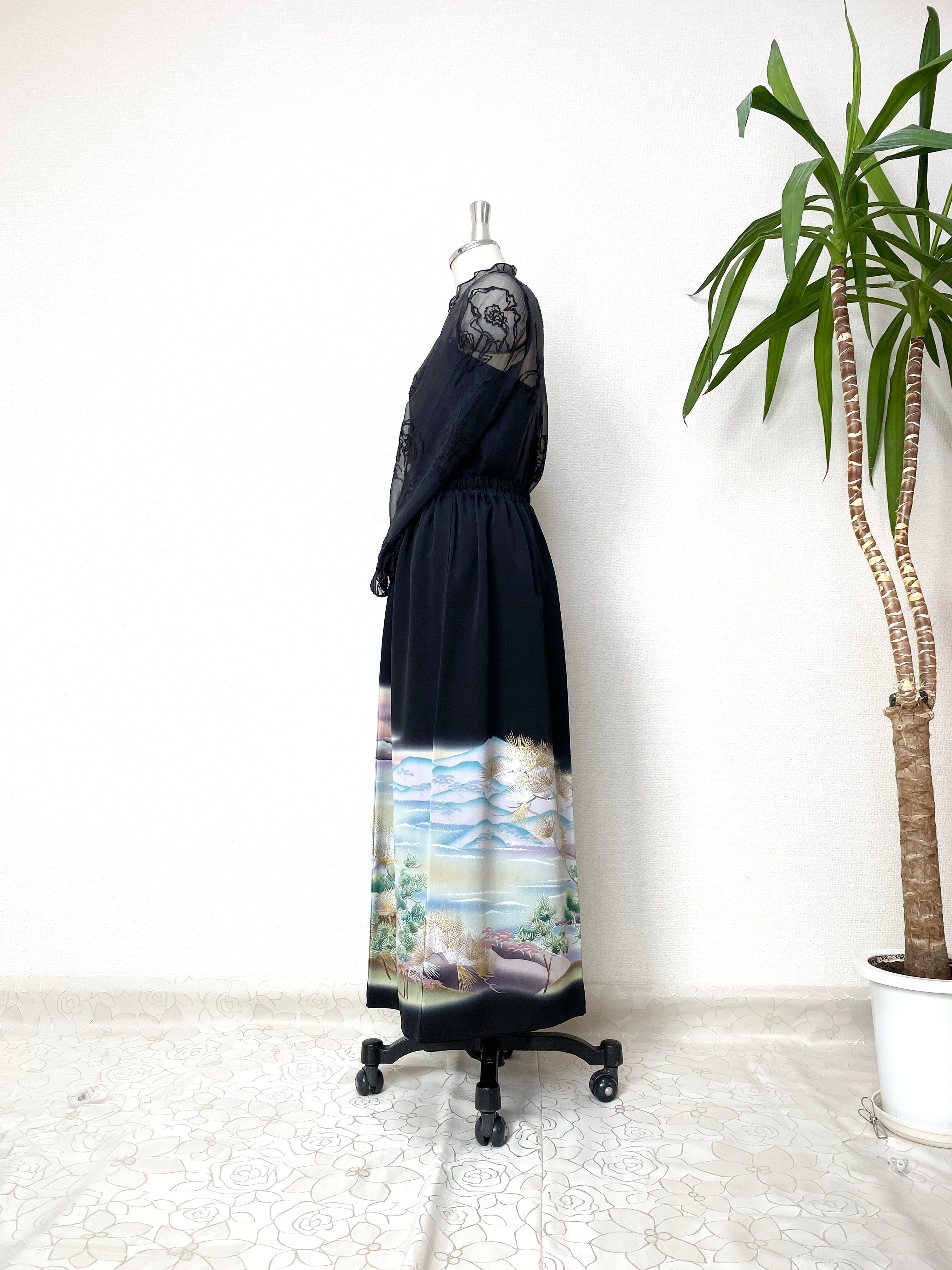 大人可愛いセレブ着物スカートフリーサイズ黒留袖着物リメイクウエストゴムロングスカート