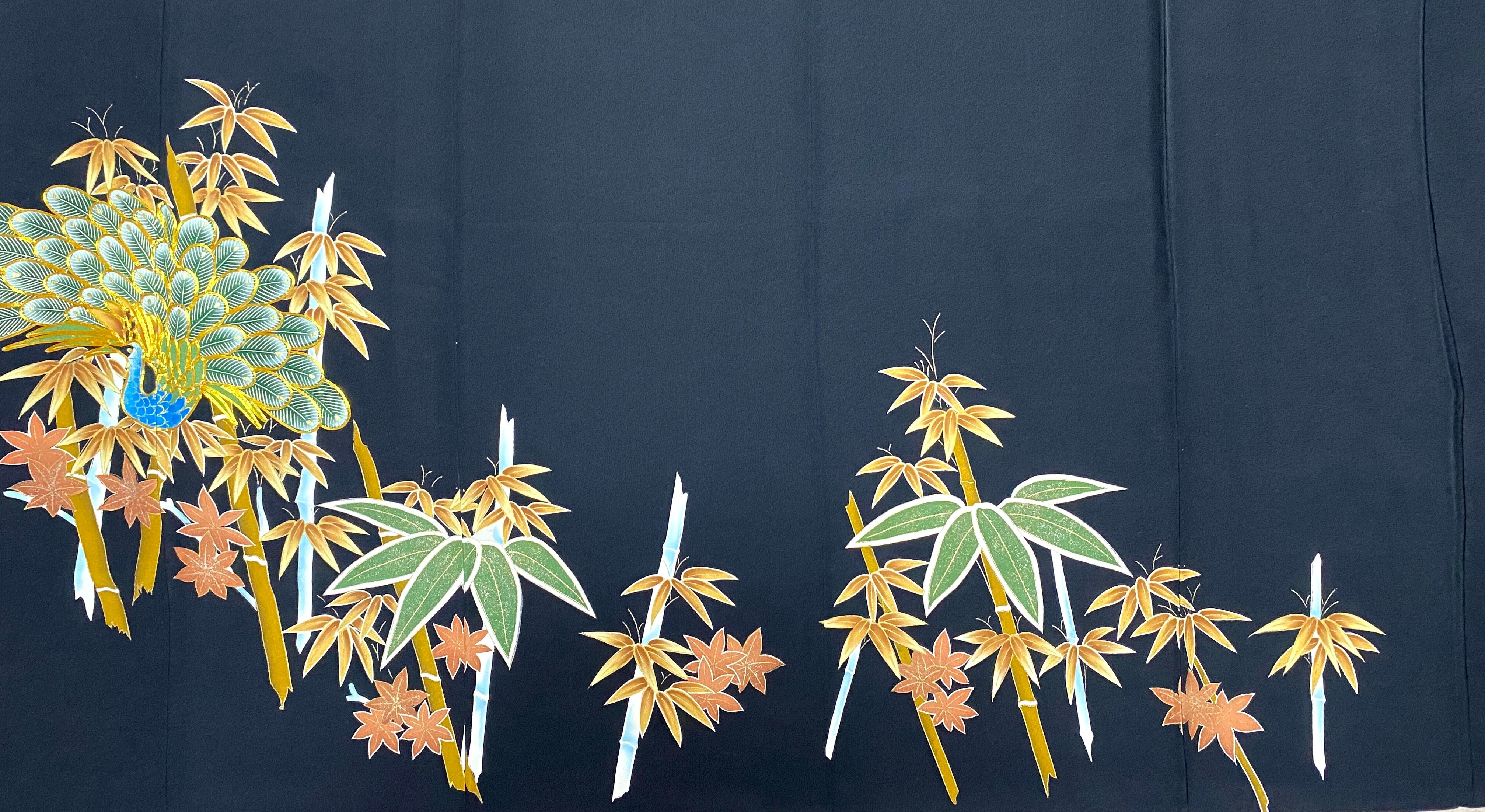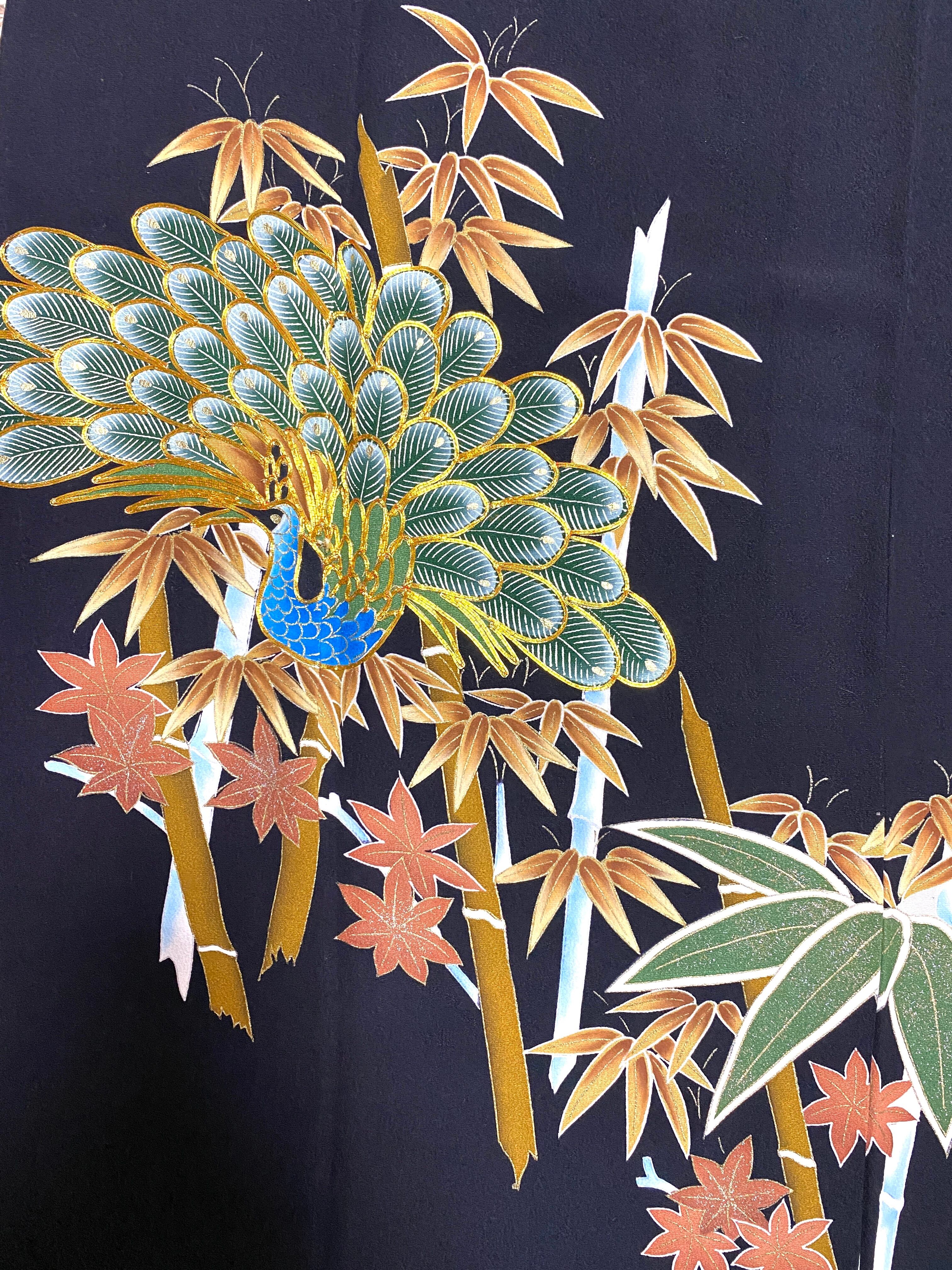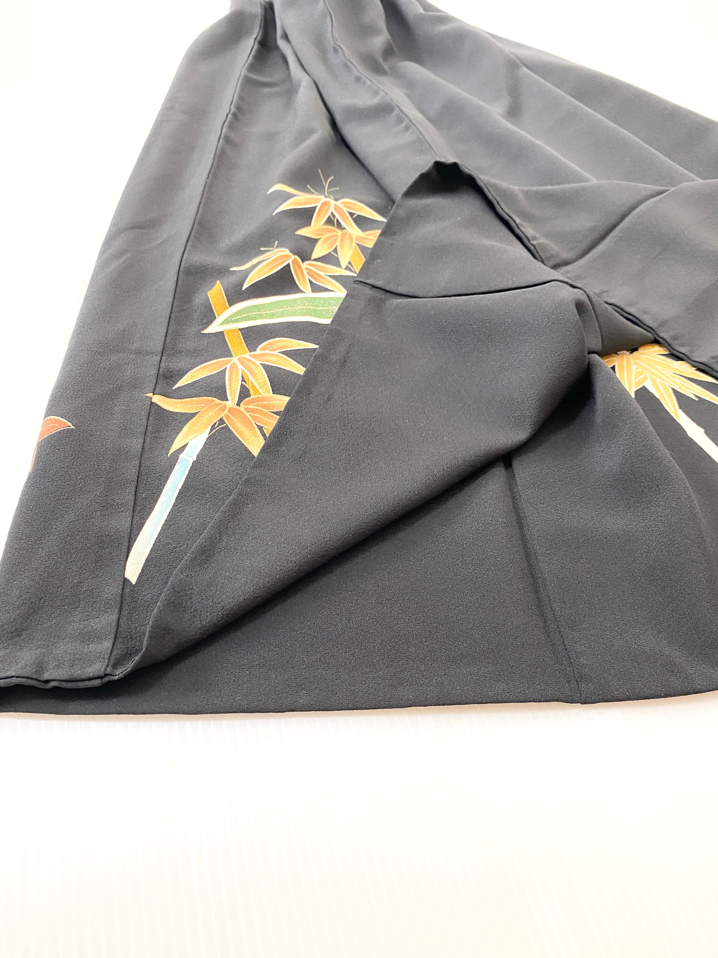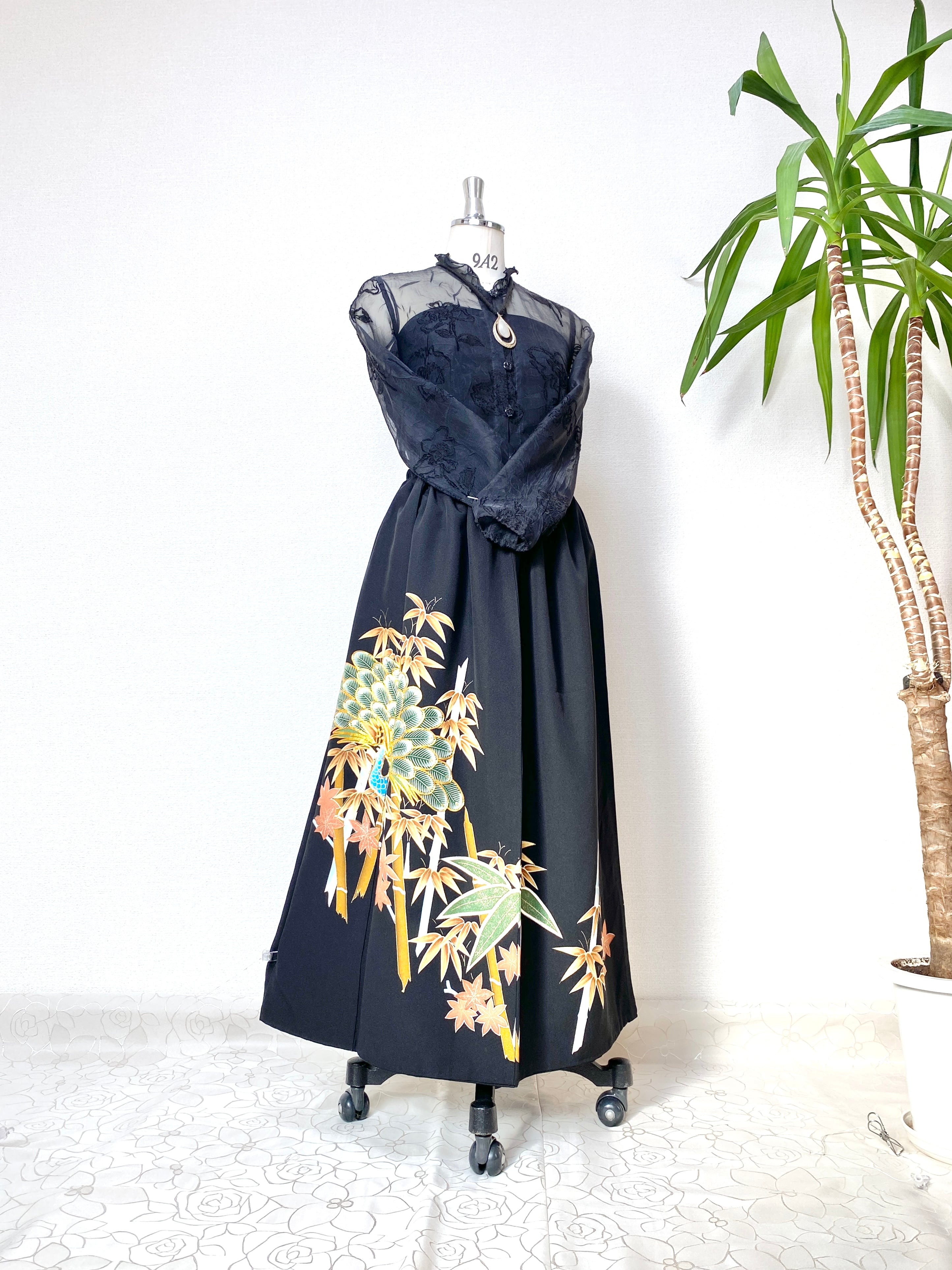 大人可愛いセレブ着物スカートフリーサイズ黒留袖着物リメイクウエストゴムロングスカート