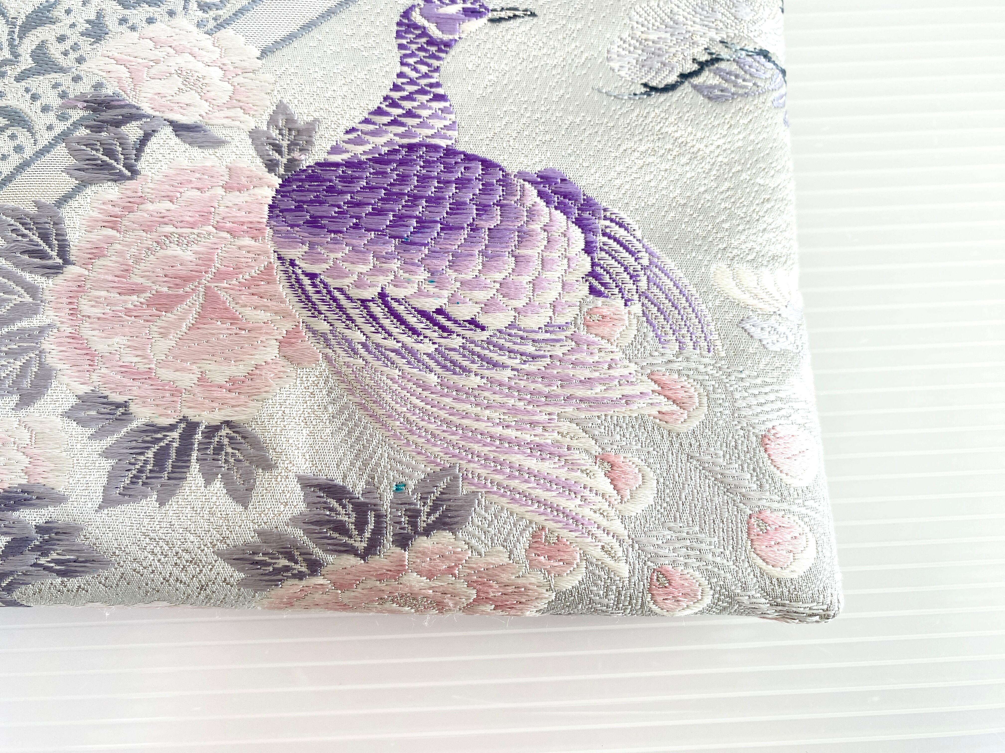 触り心地が滑らかで手にしっくりとくる安心感。絵柄の鮮やかさは日本の帯ならではの存在感で素晴らしく華やかな美しさです