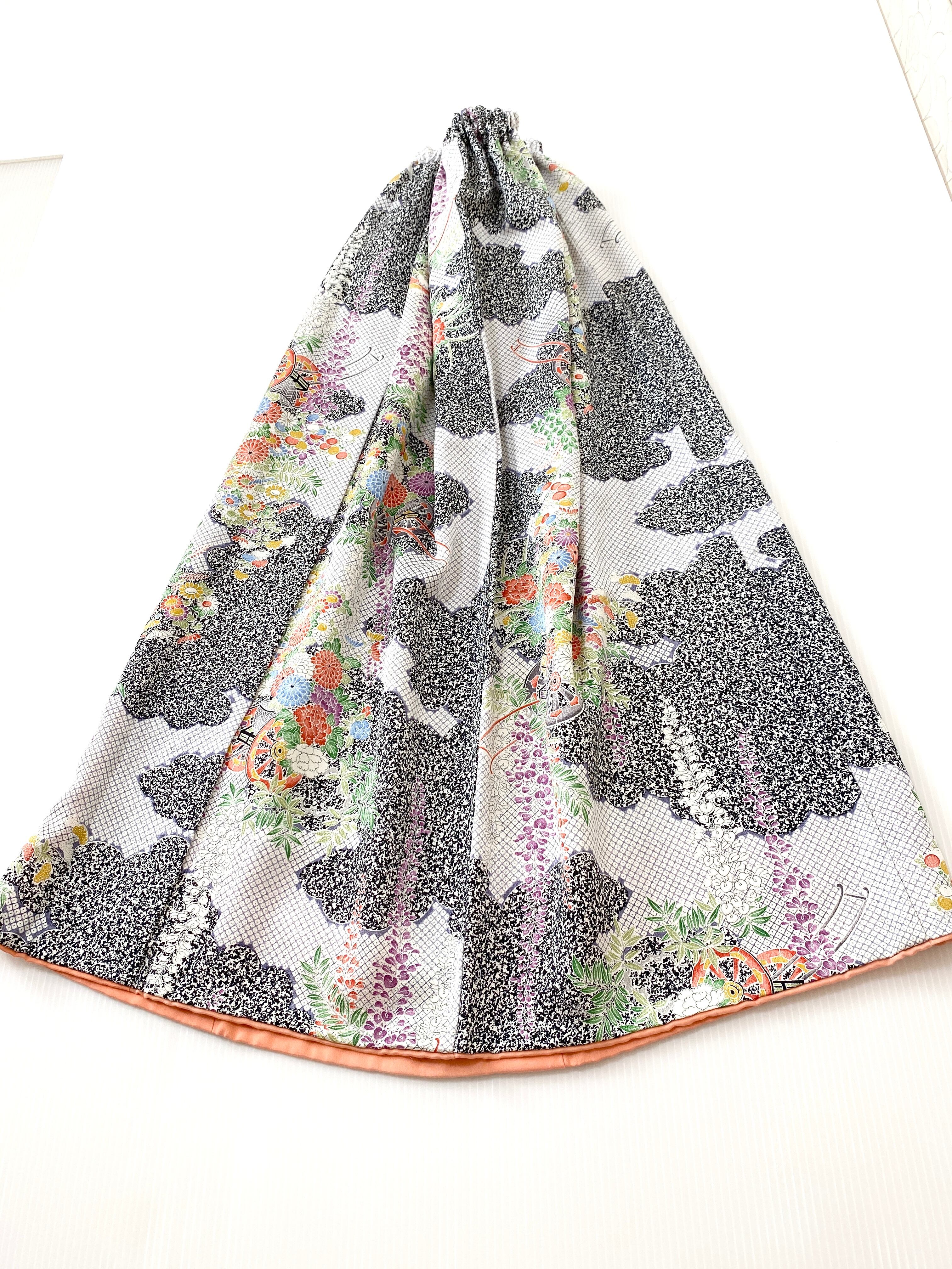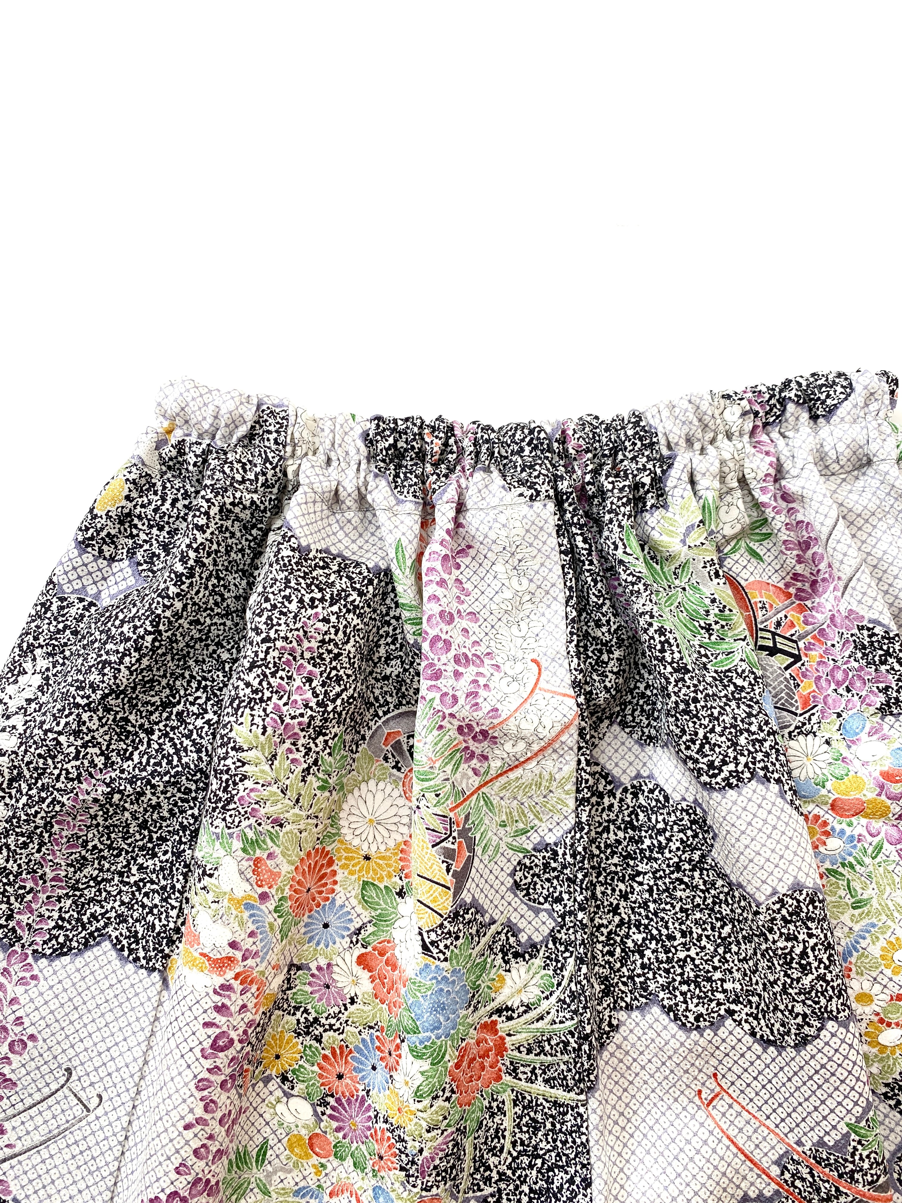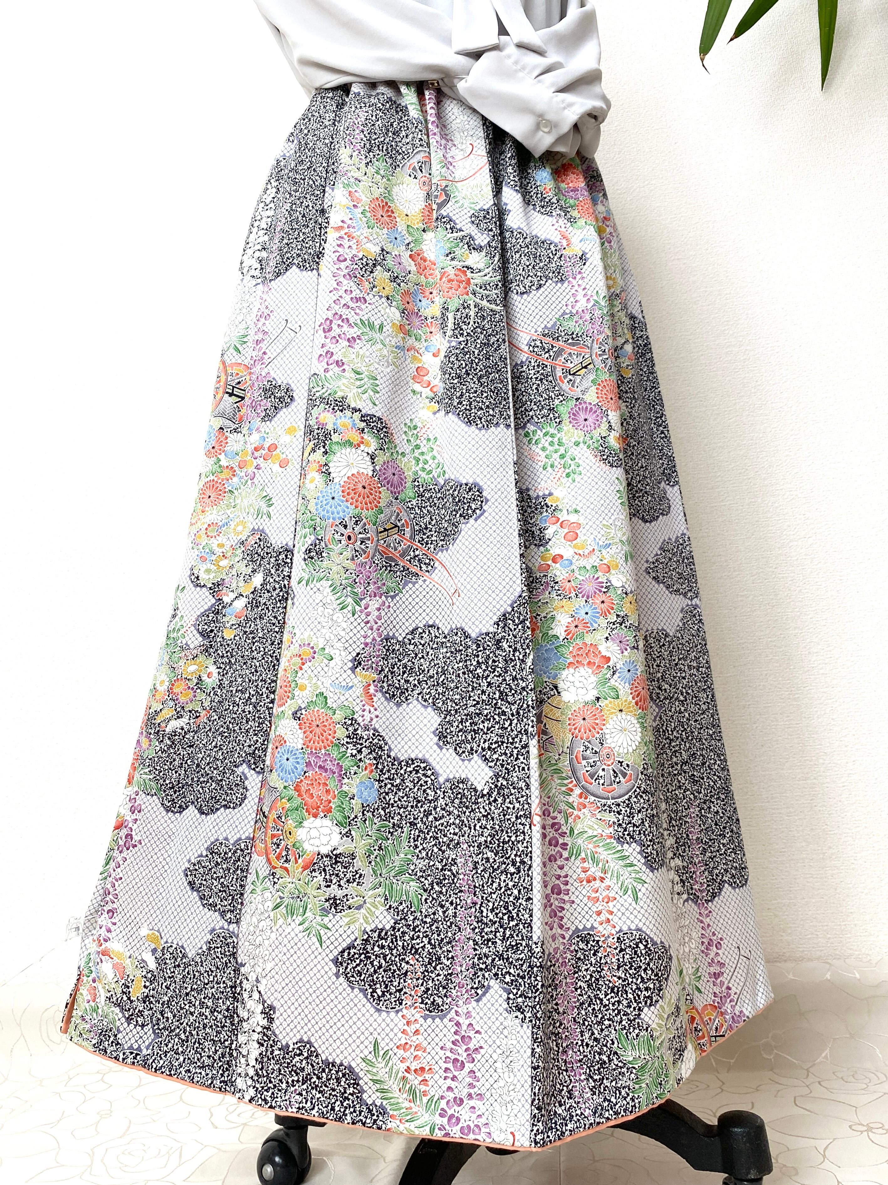 着物をリメイクして作製したウエストゴムロングドレススカートフリーサイズです
