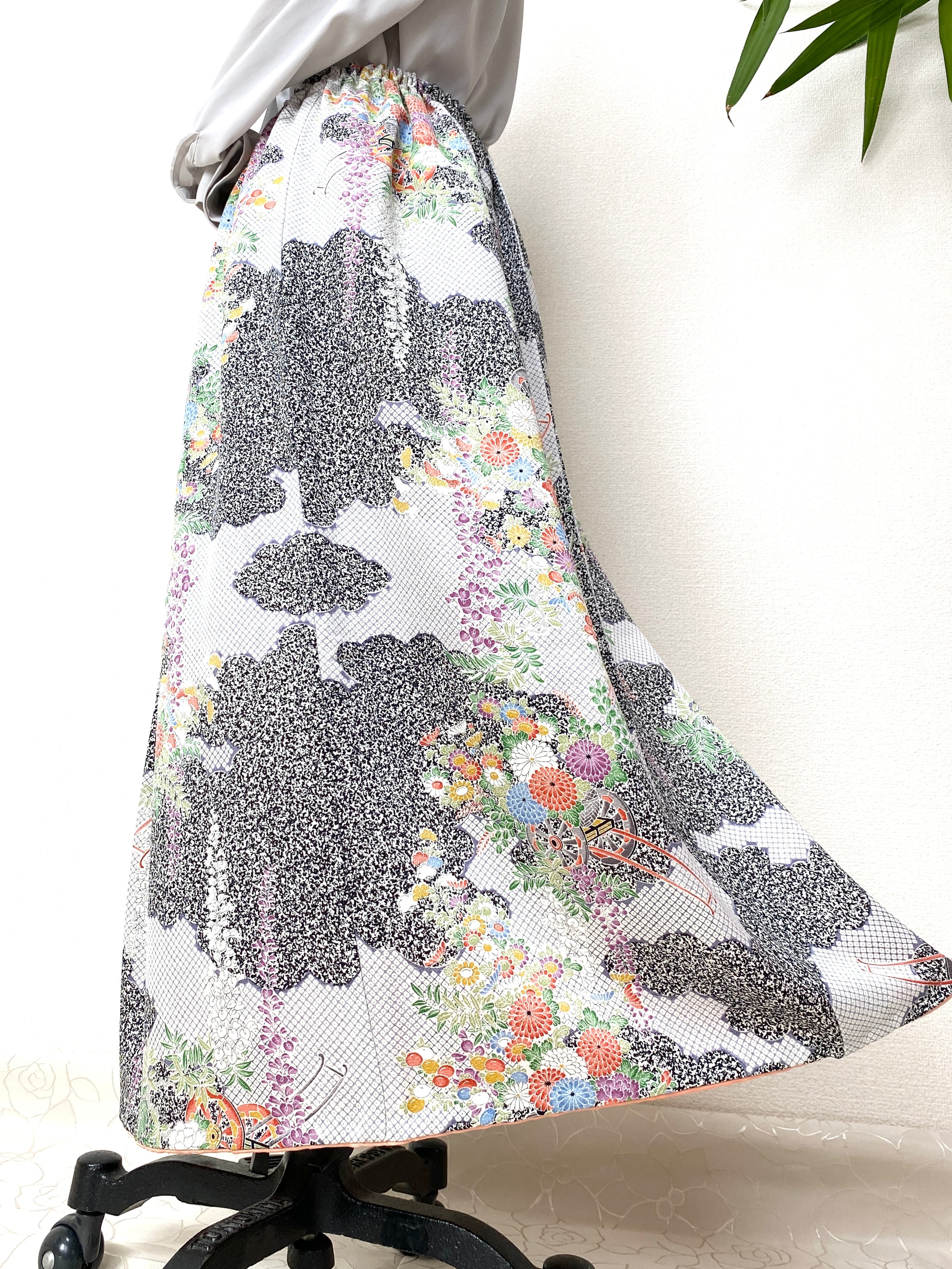 大人可愛い着物スカートフリーサイズ着物リメイクウエストゴムロングスカートフリーサイズ送料込みハンドメイドNO.6035