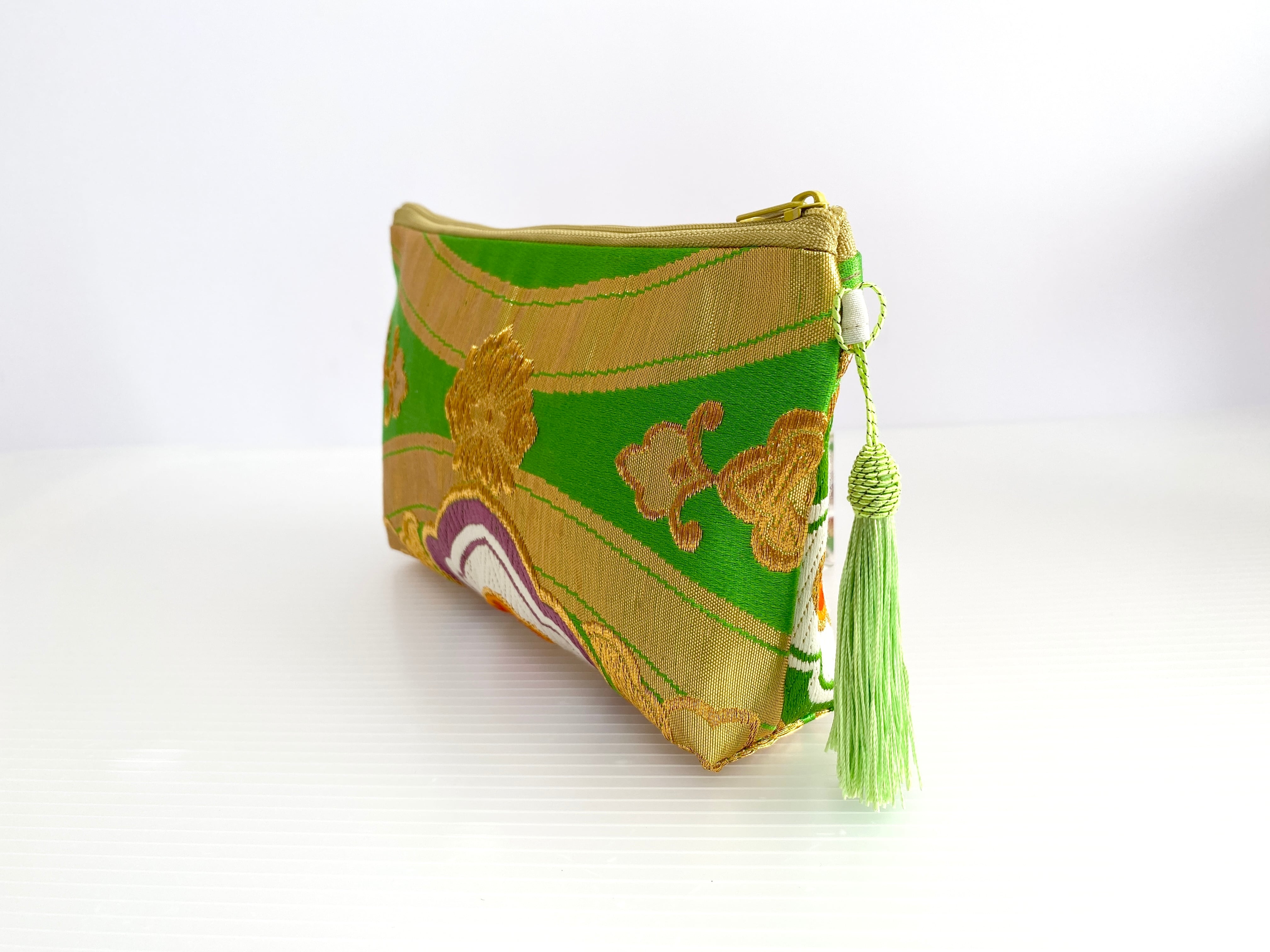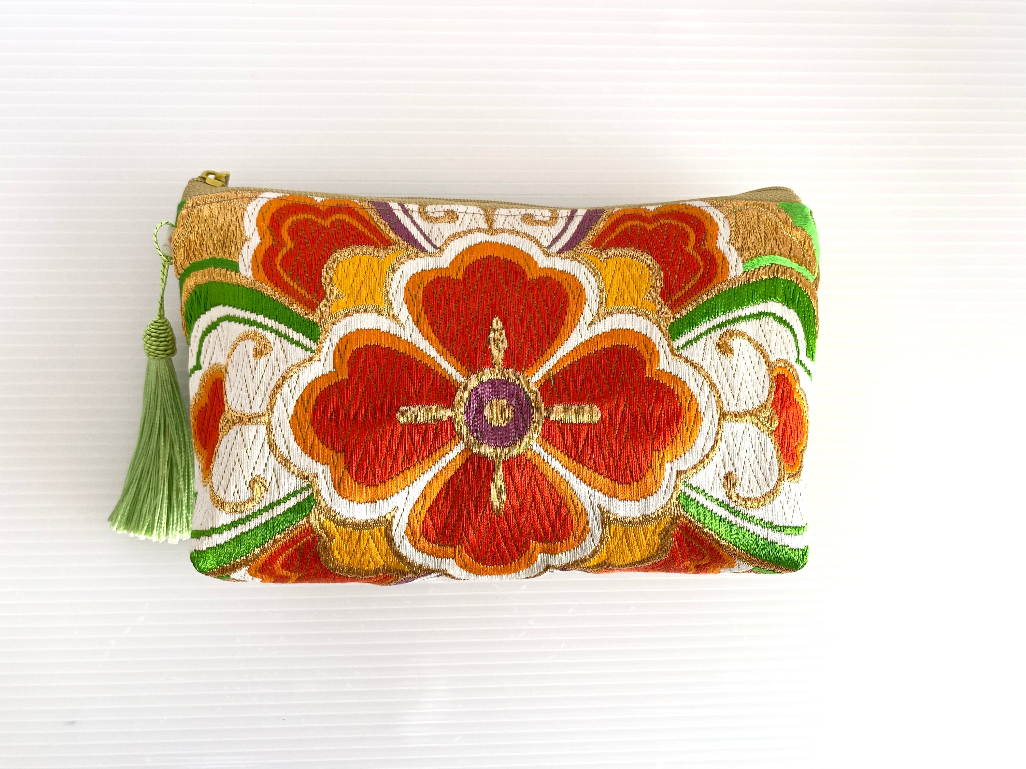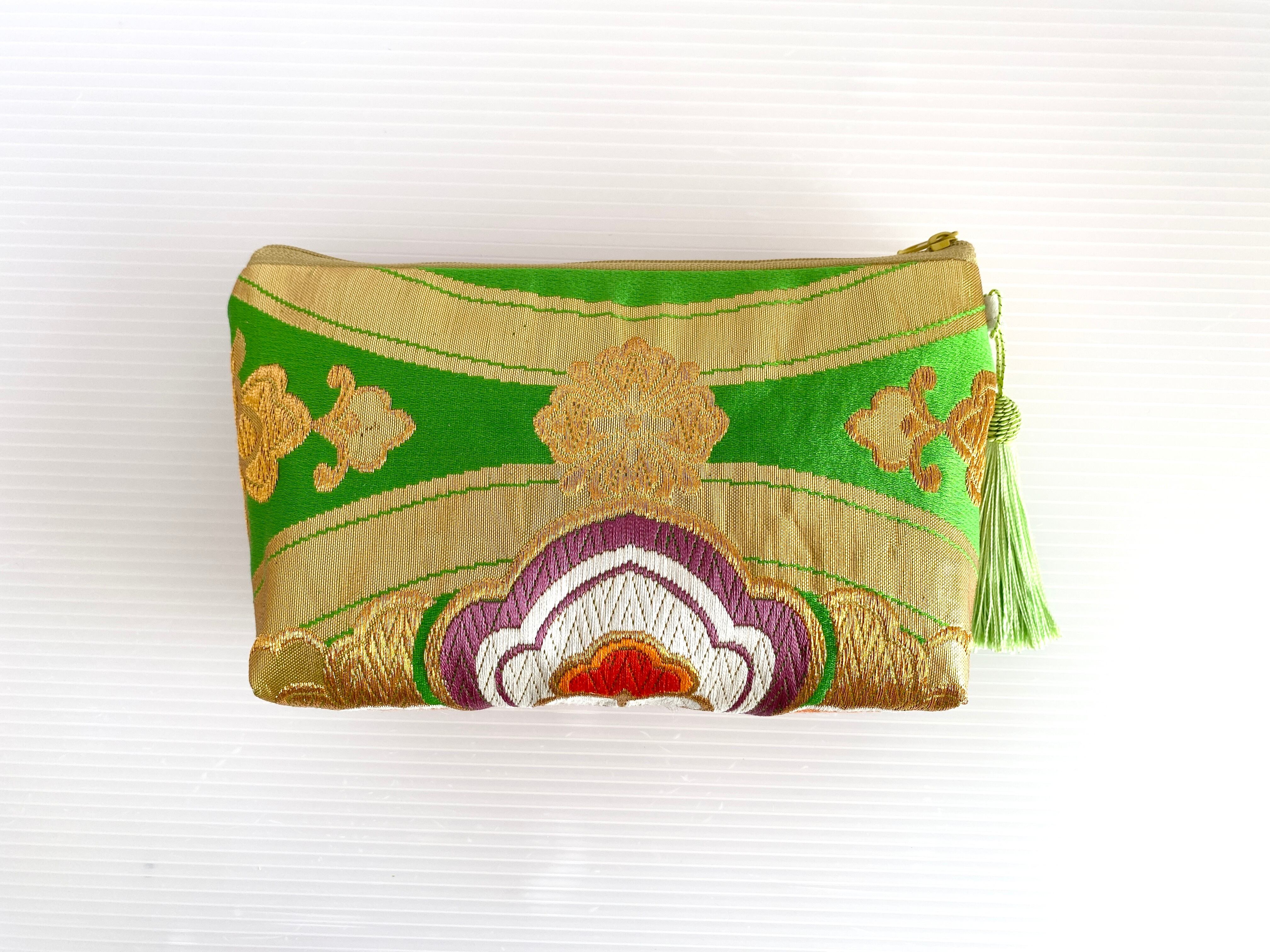 日本の古着物帯をリメイクして作製したポーチでハンドメイド品です