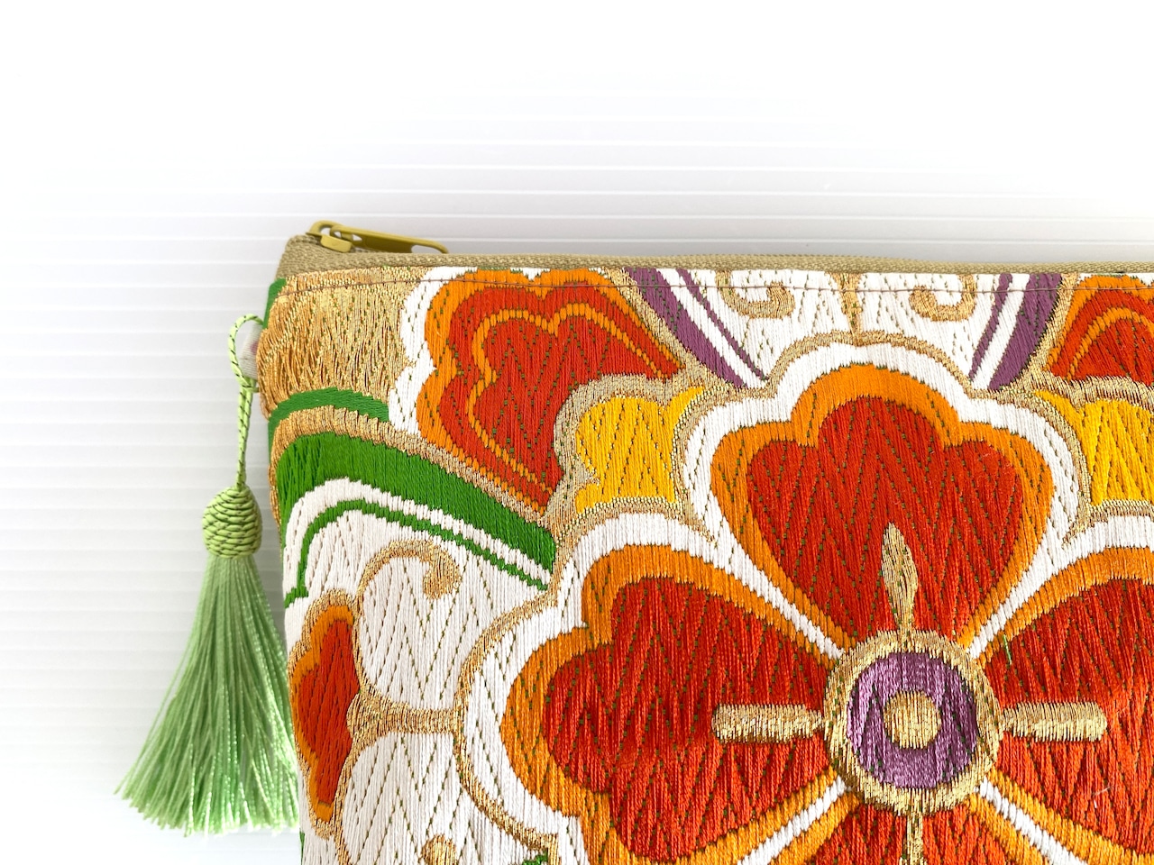 触り心地が滑らかで手にしっくりとくる安心感。絵柄の鮮やかさは日本の着物帯ならではの存在感で素晴らしく華やかな美しさ