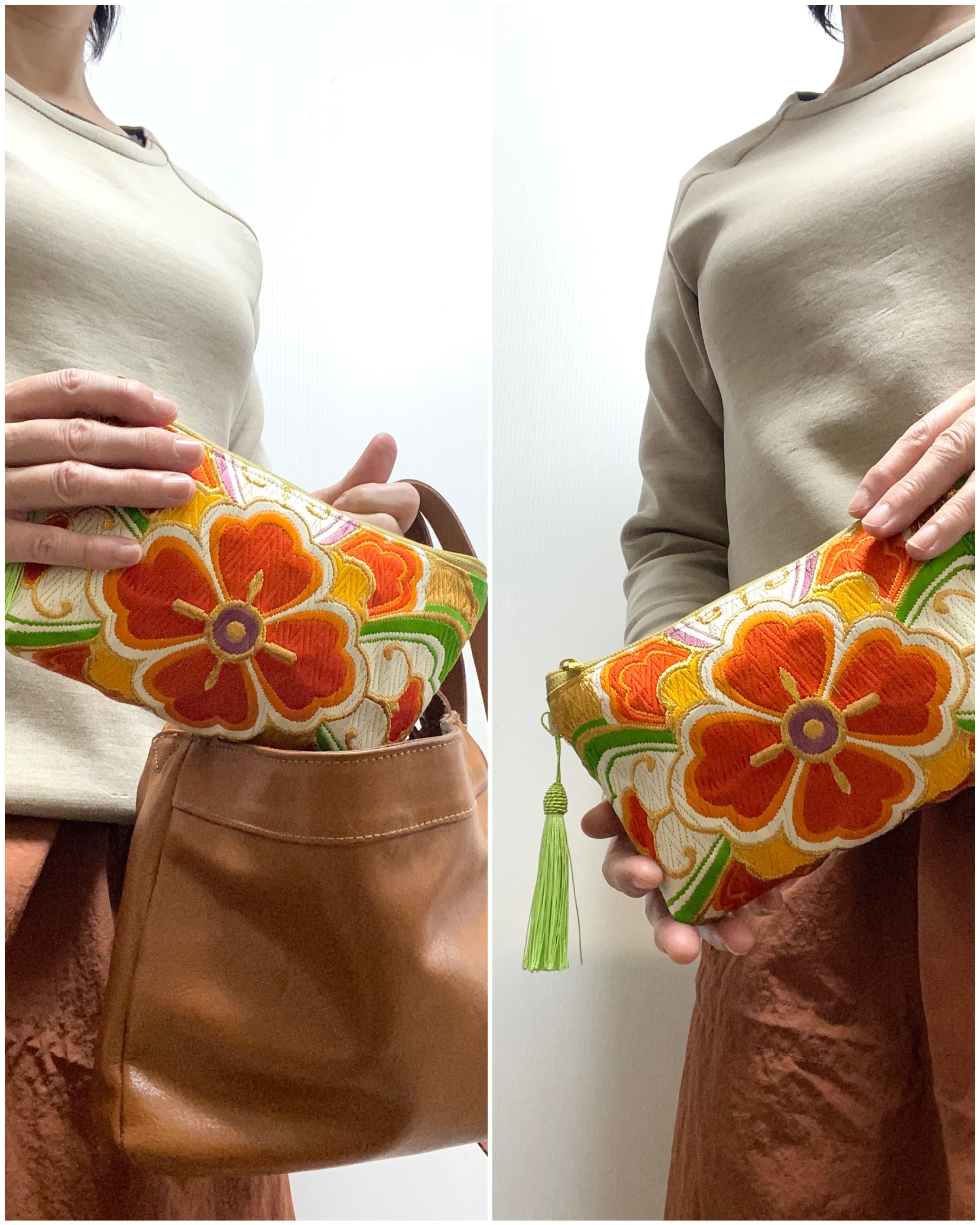 心を込めて1点1点作製している帯リメイクポーチ着物リメイクポーチです(*^-^*)
