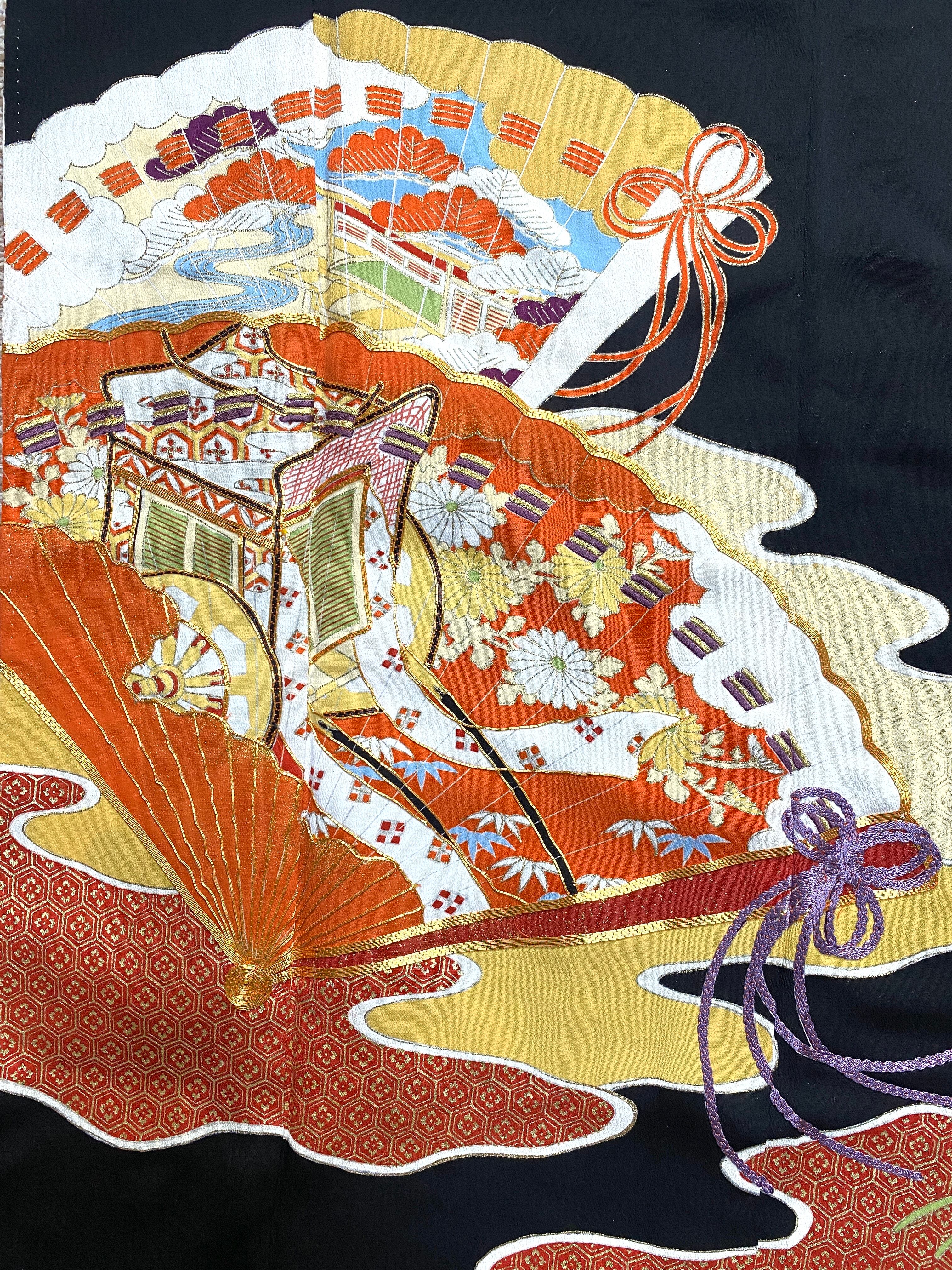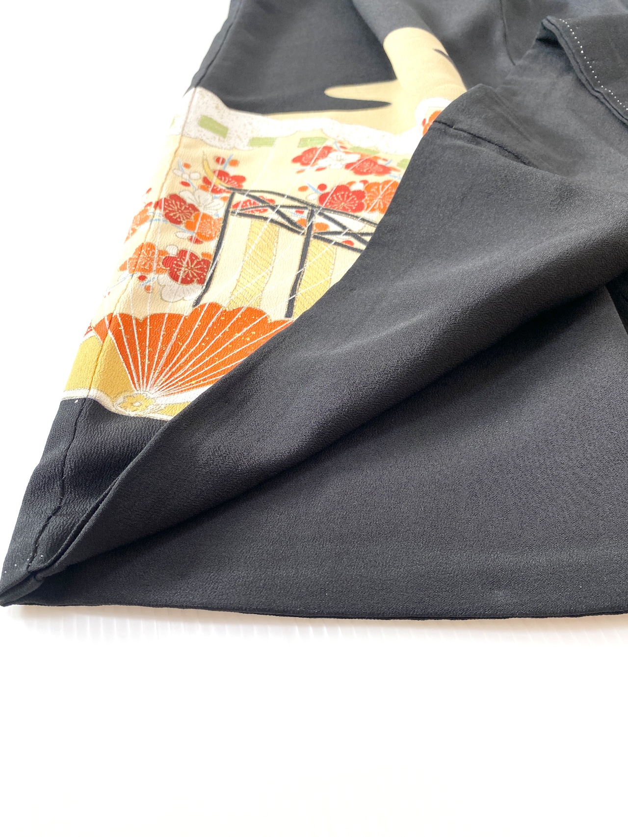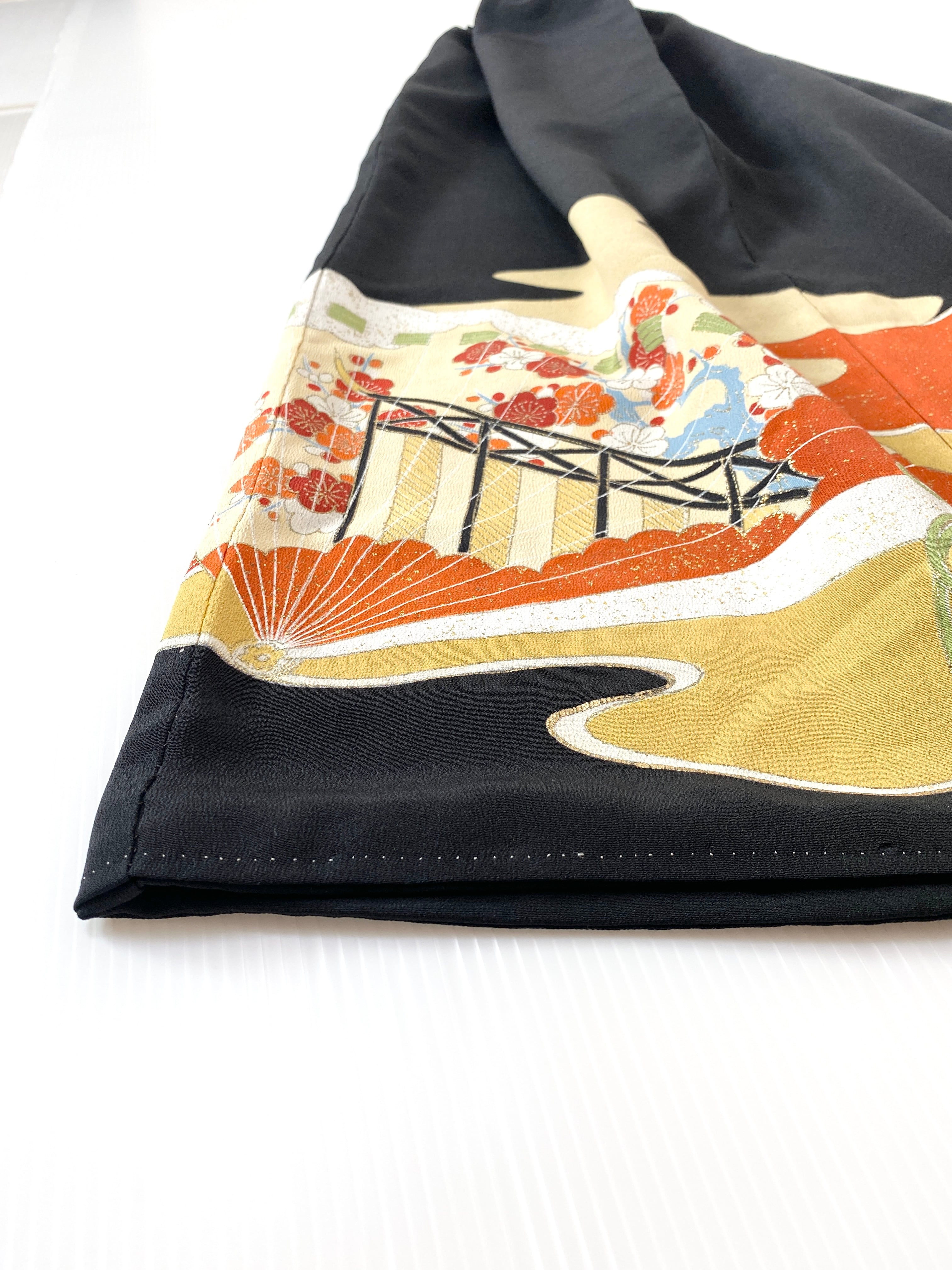 大人可愛いセレブ着物スカートフリーサイズ黒留袖着物リメイクウエストゴムロングスカート