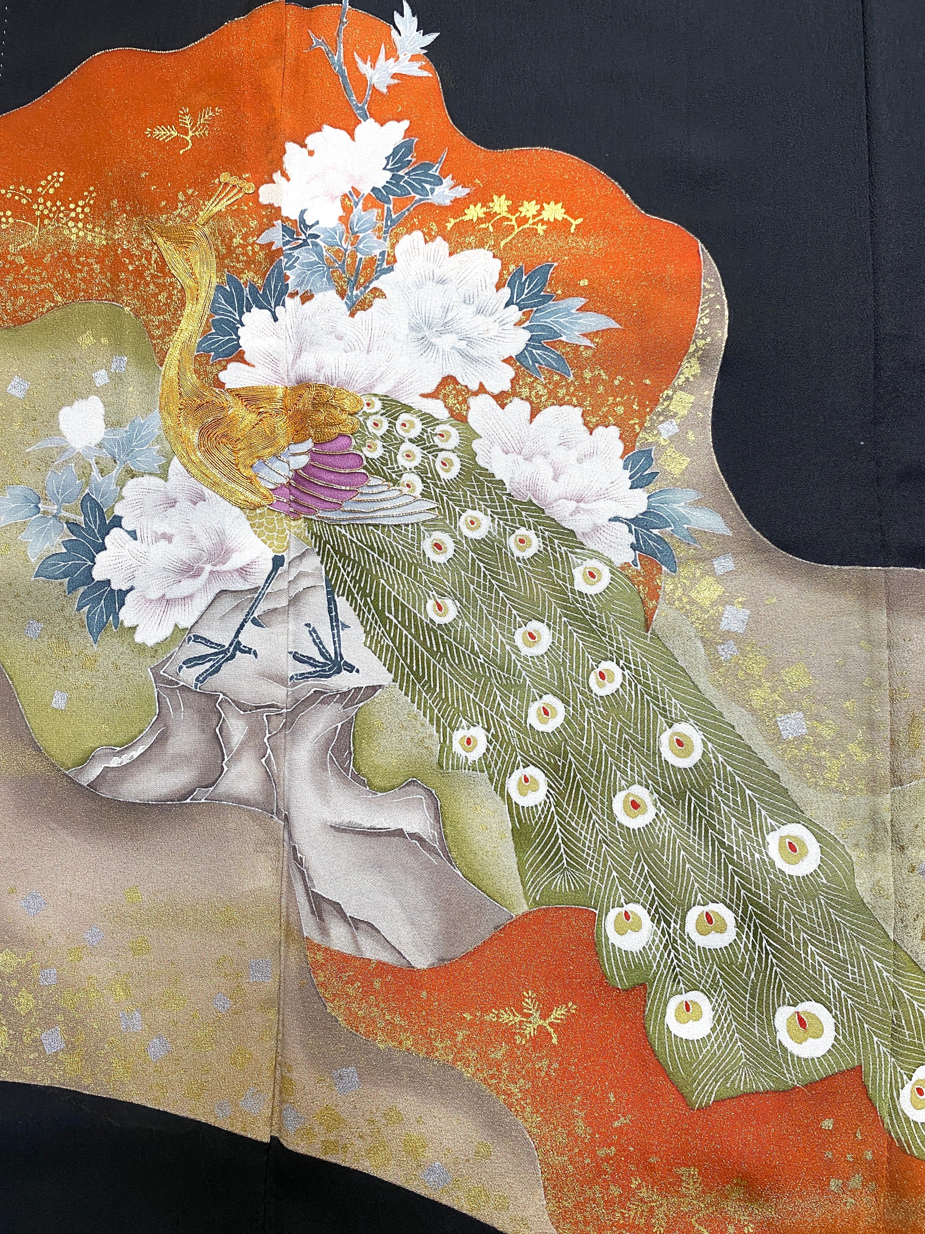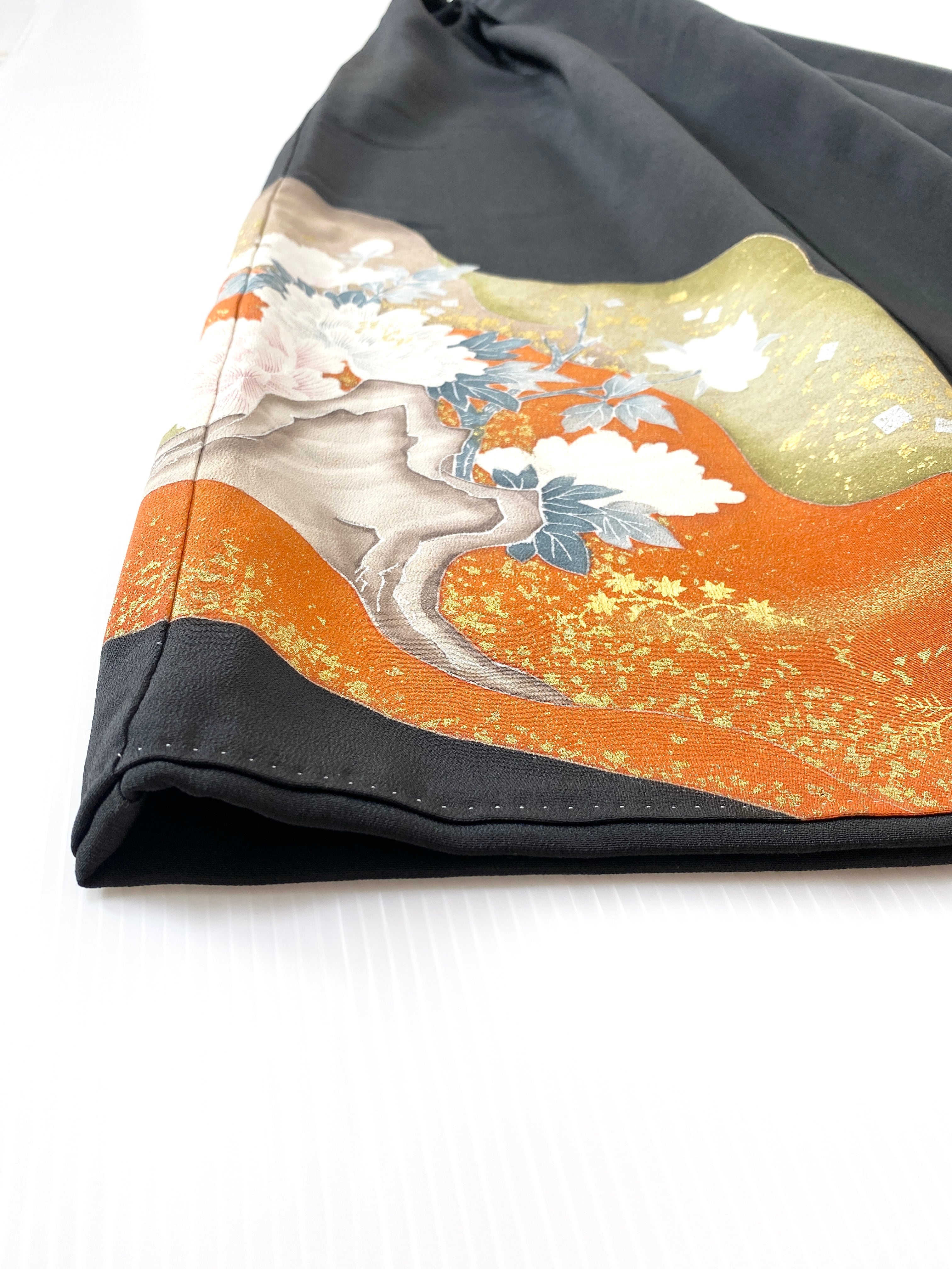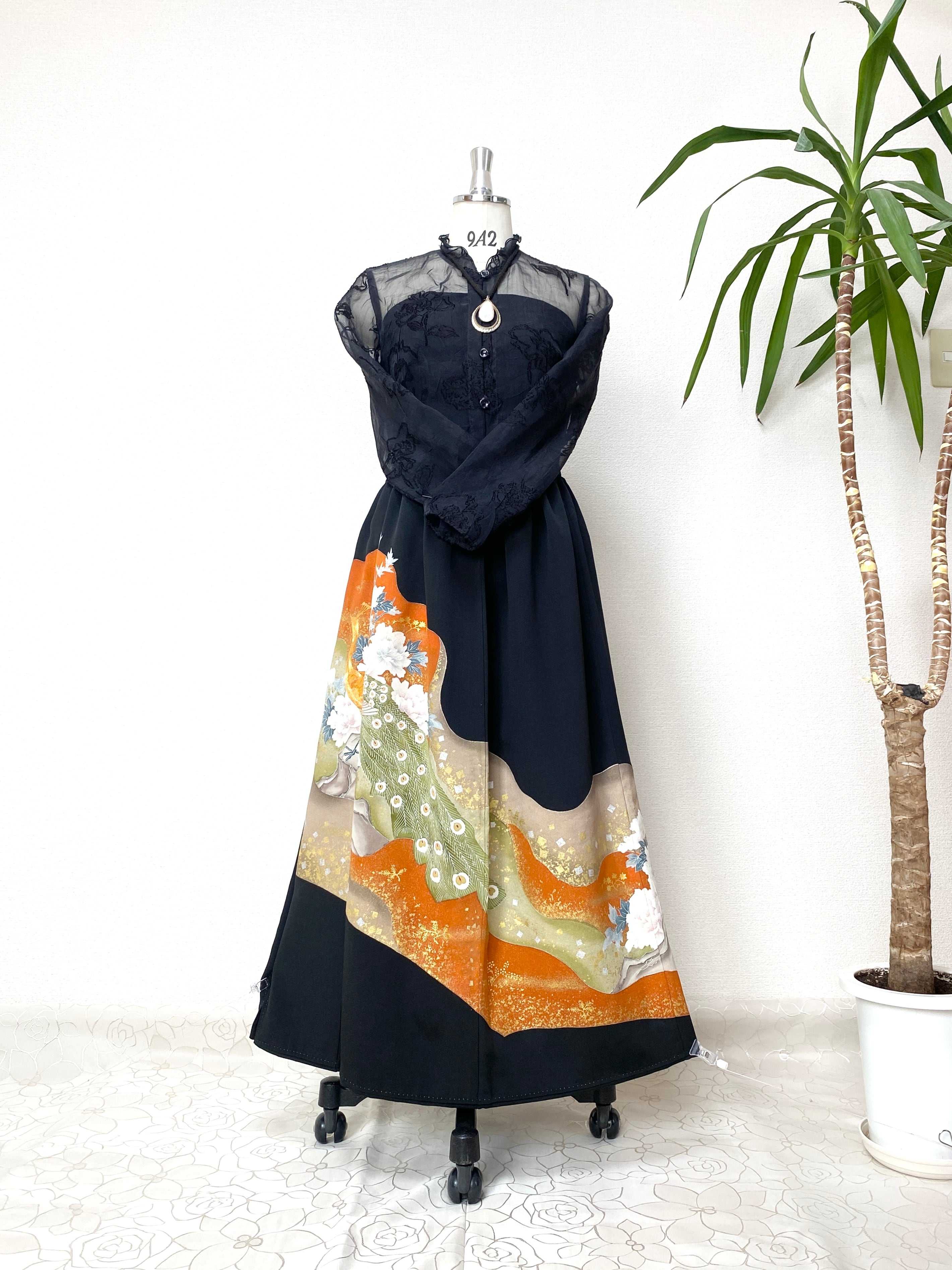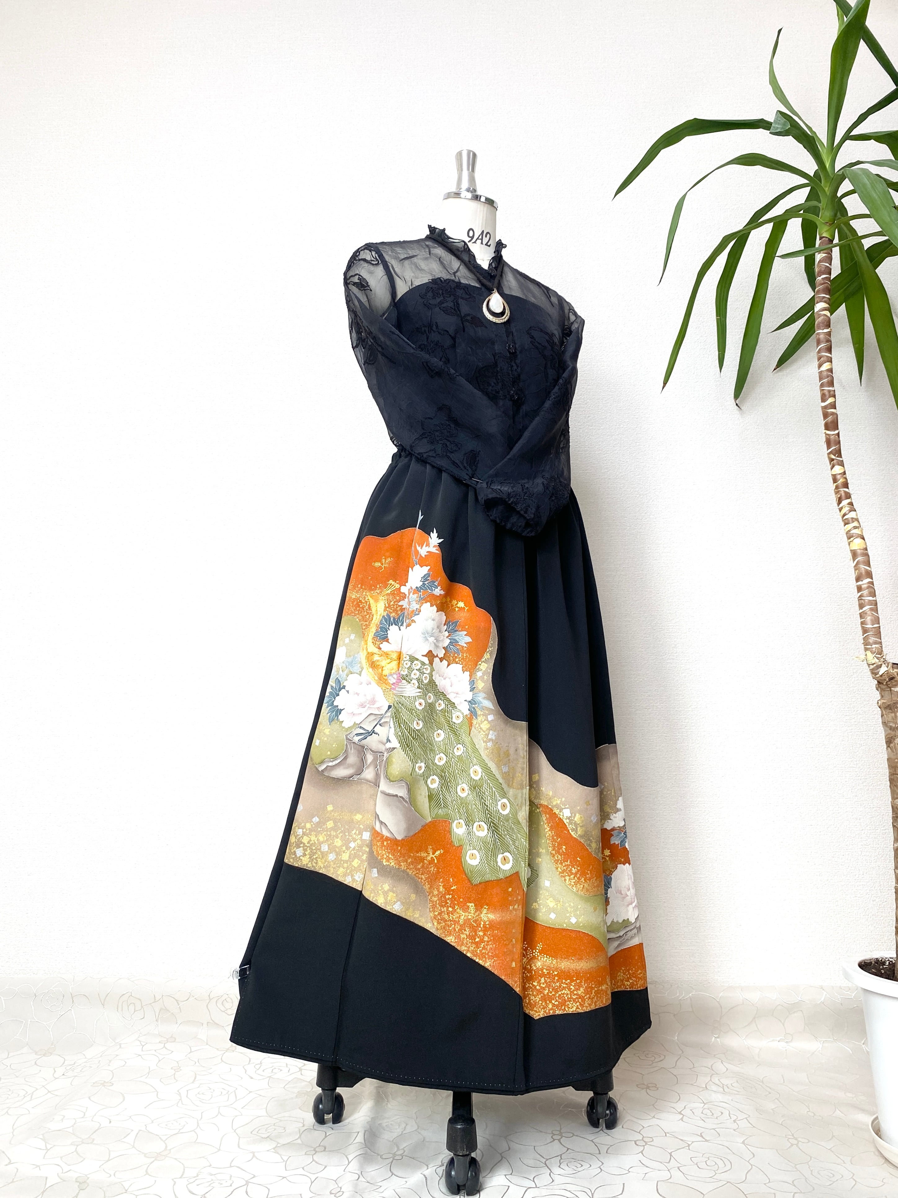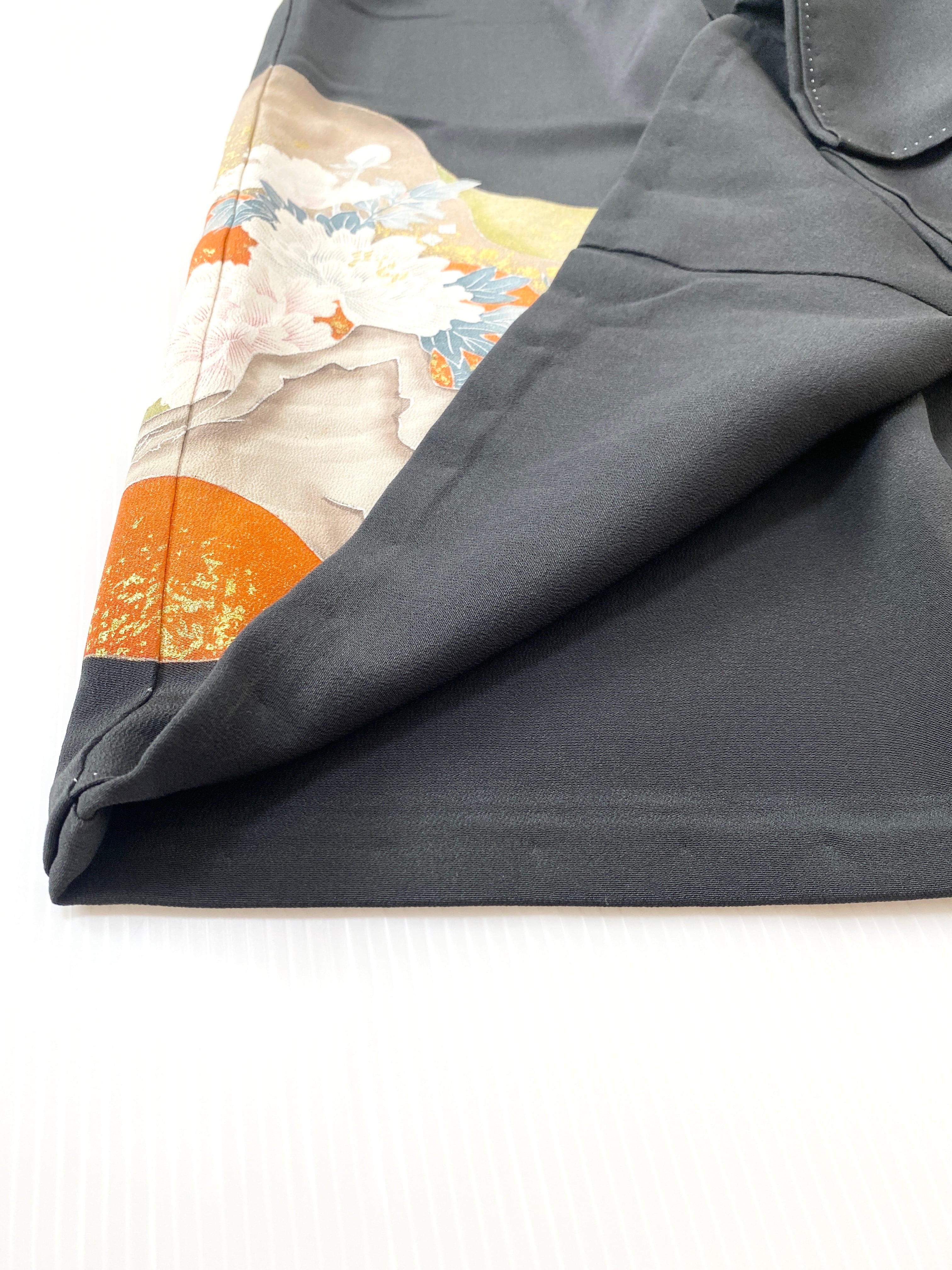 大人可愛いセレブ着物スカートフリーサイズ黒留袖着物リメイクウエストゴムロングスカート