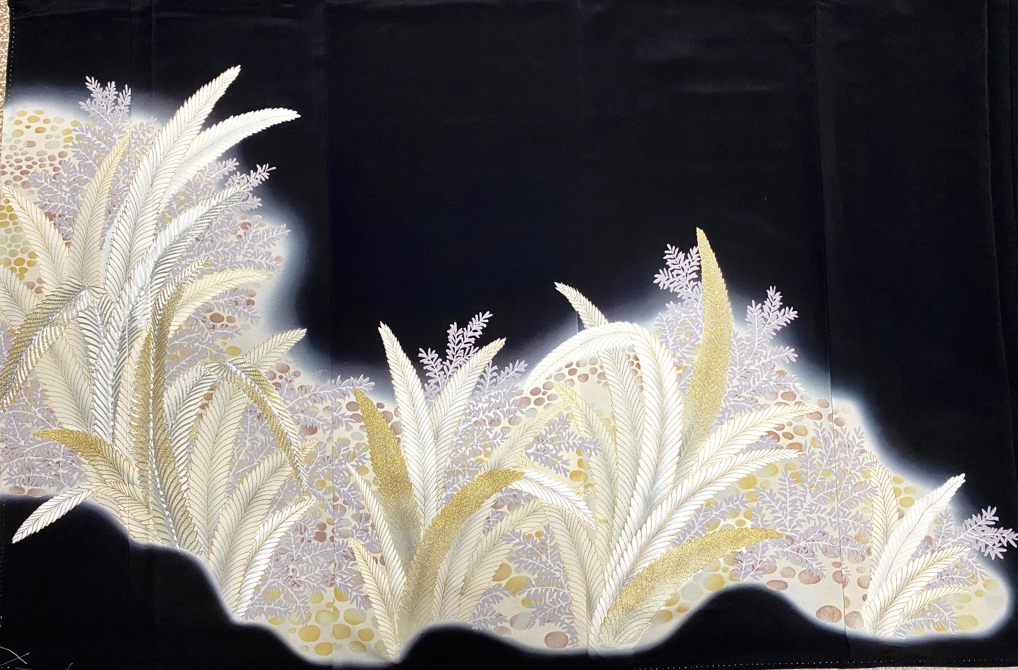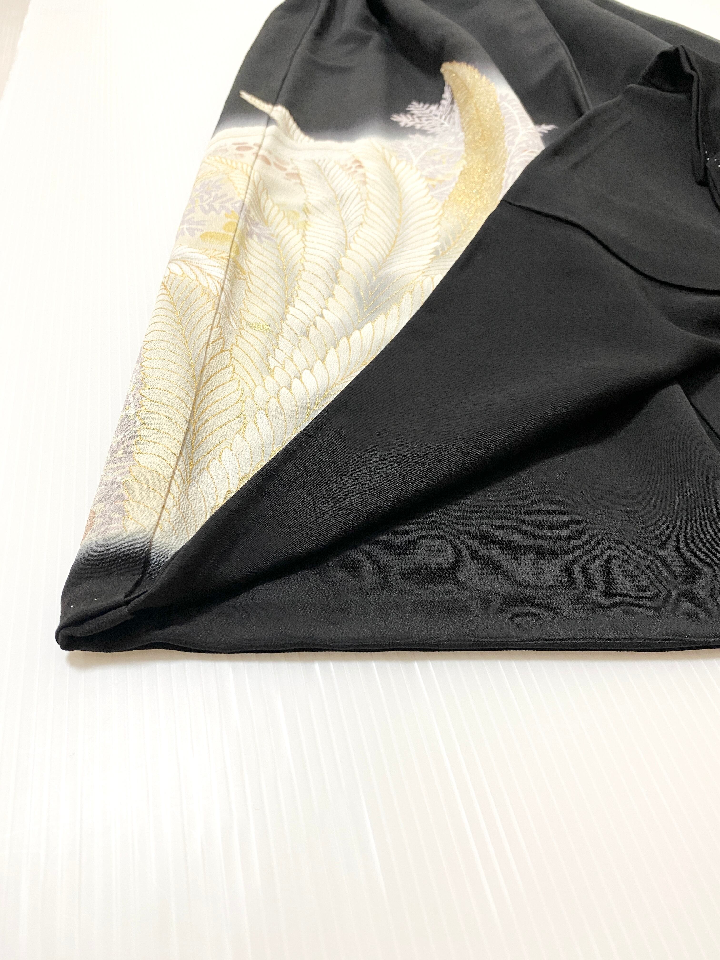 大人可愛いセレブ着物スカートフリーサイズ黒留袖着物リメイクウエストゴムロングスカート