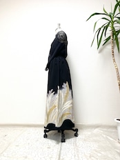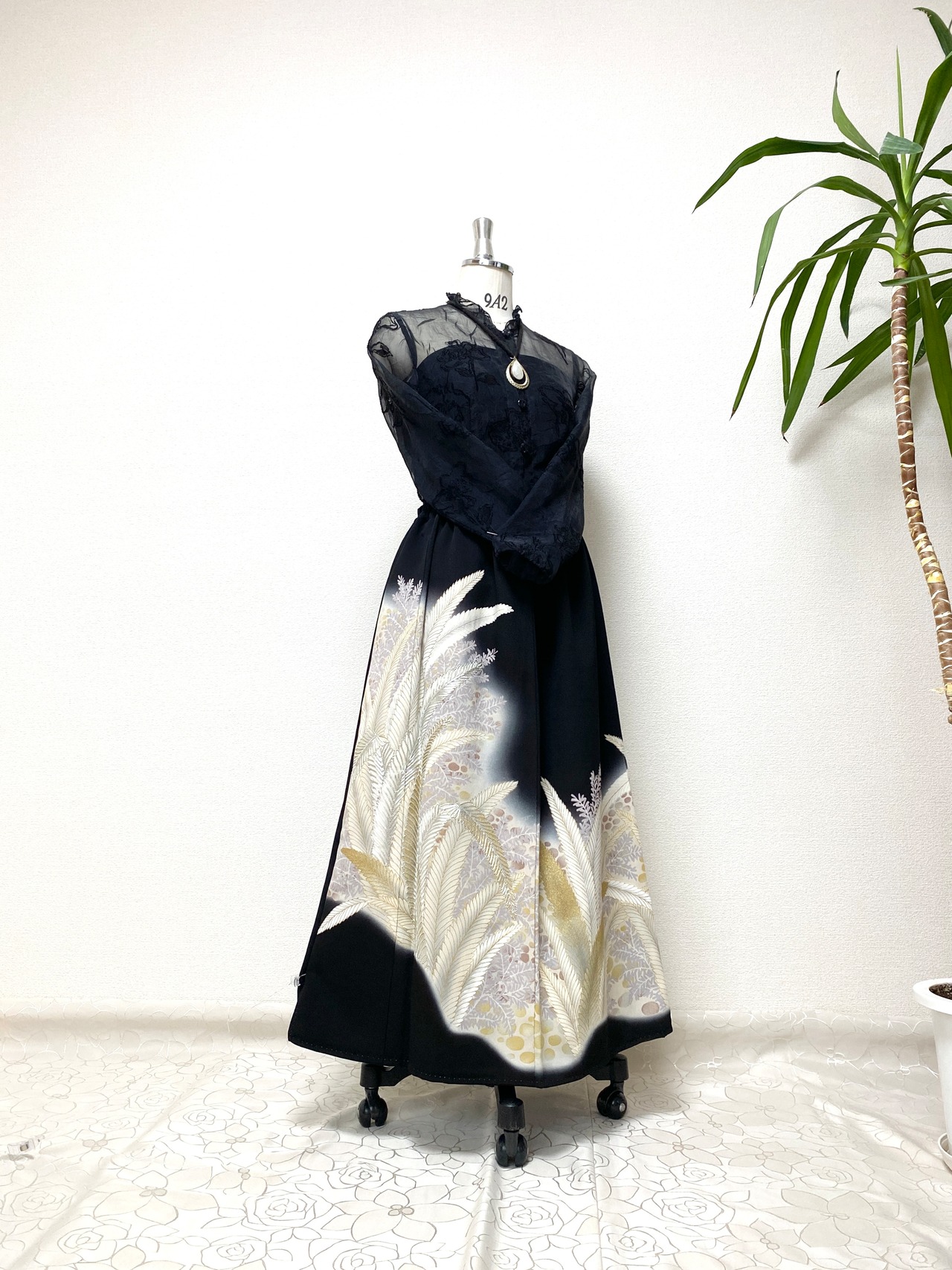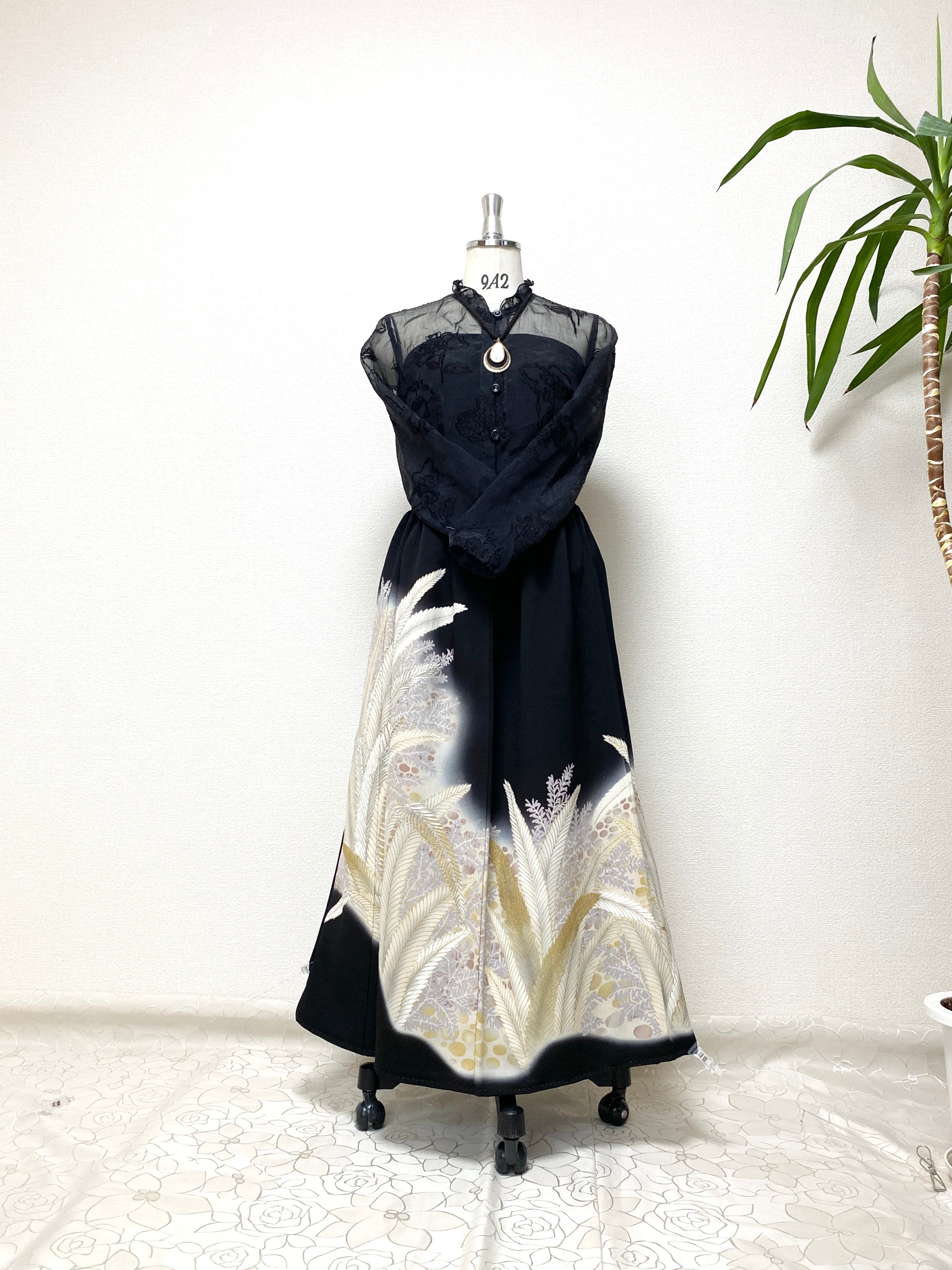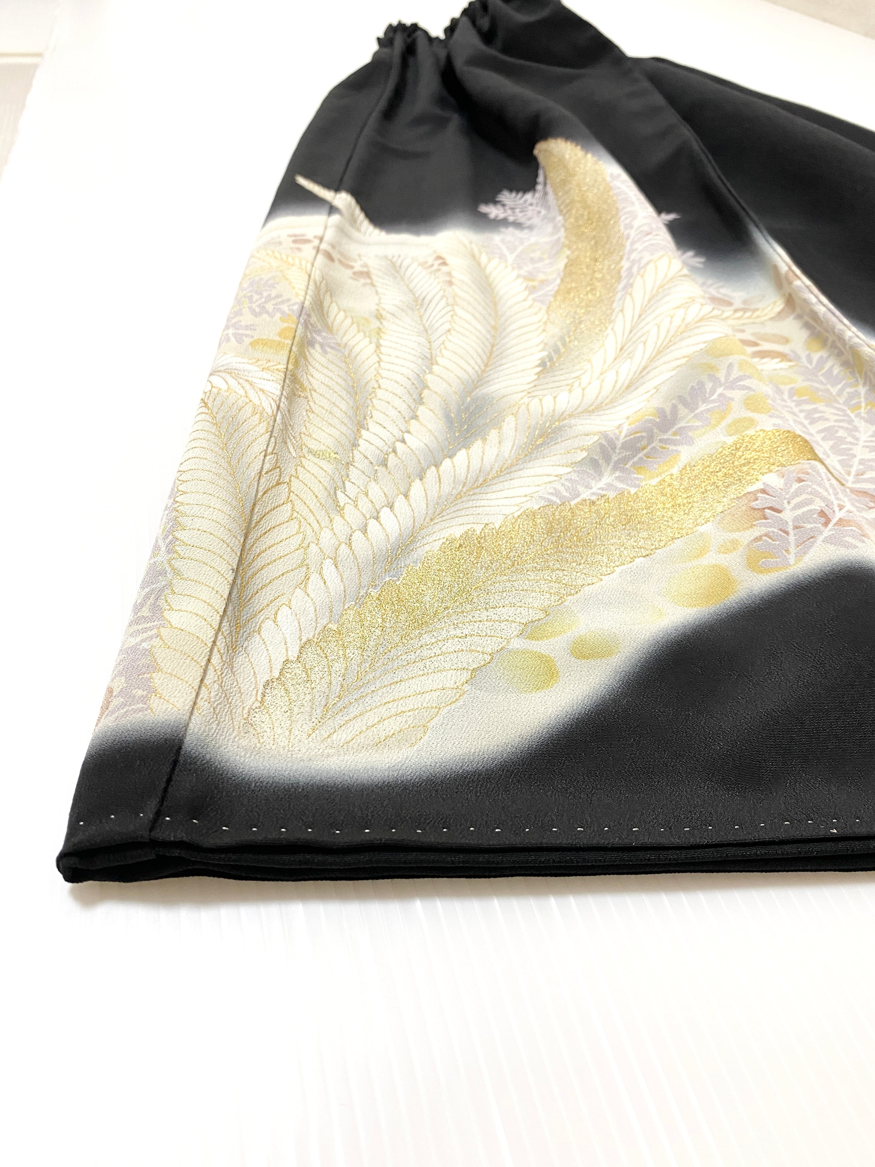 黒留袖着物をリメイクして作製したウエストゴムロングドレススカートフリーサイズです