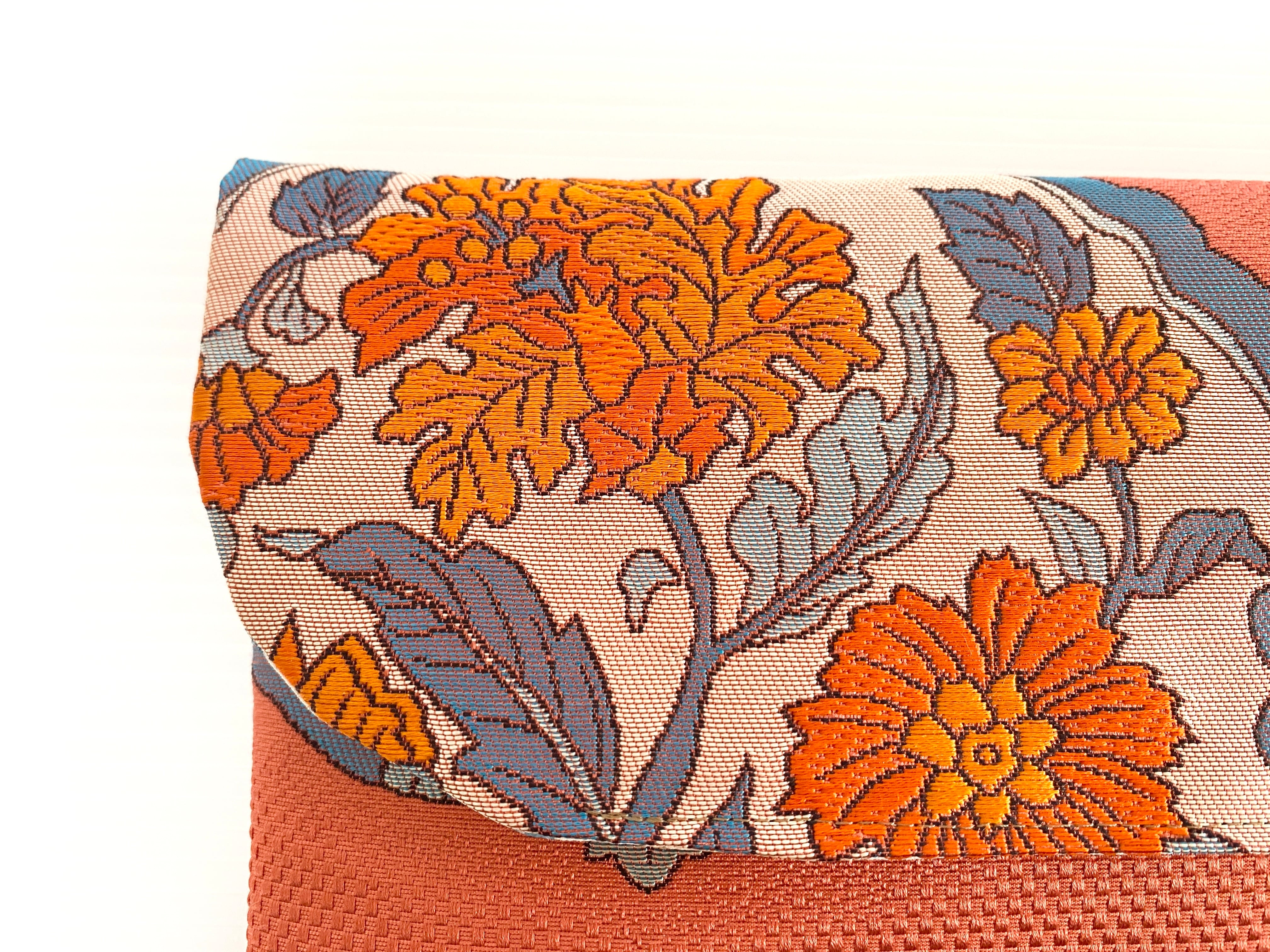 触り心地が滑らかで手にしっくりとくる安心感。絵柄の鮮やかさは日本の帯ならではの存在感で素晴らしく華やかな美しさです
