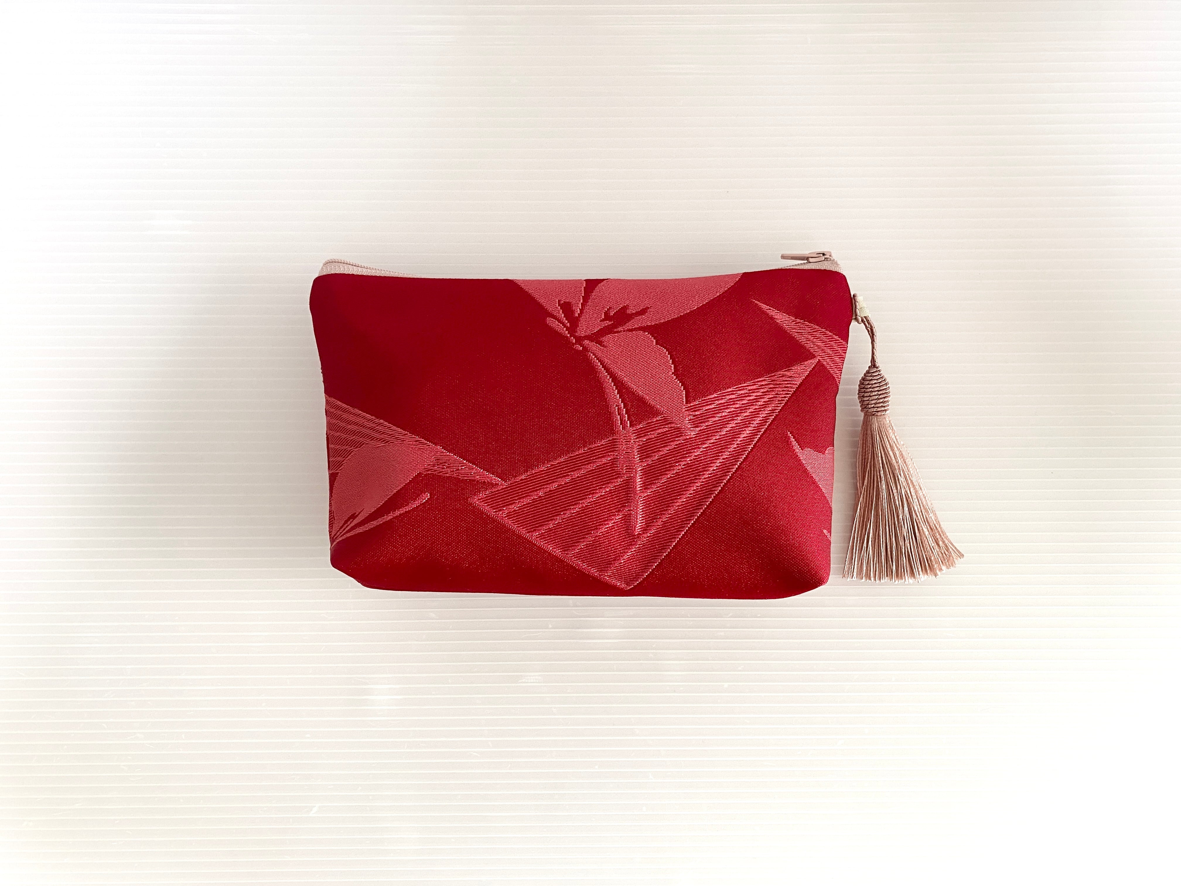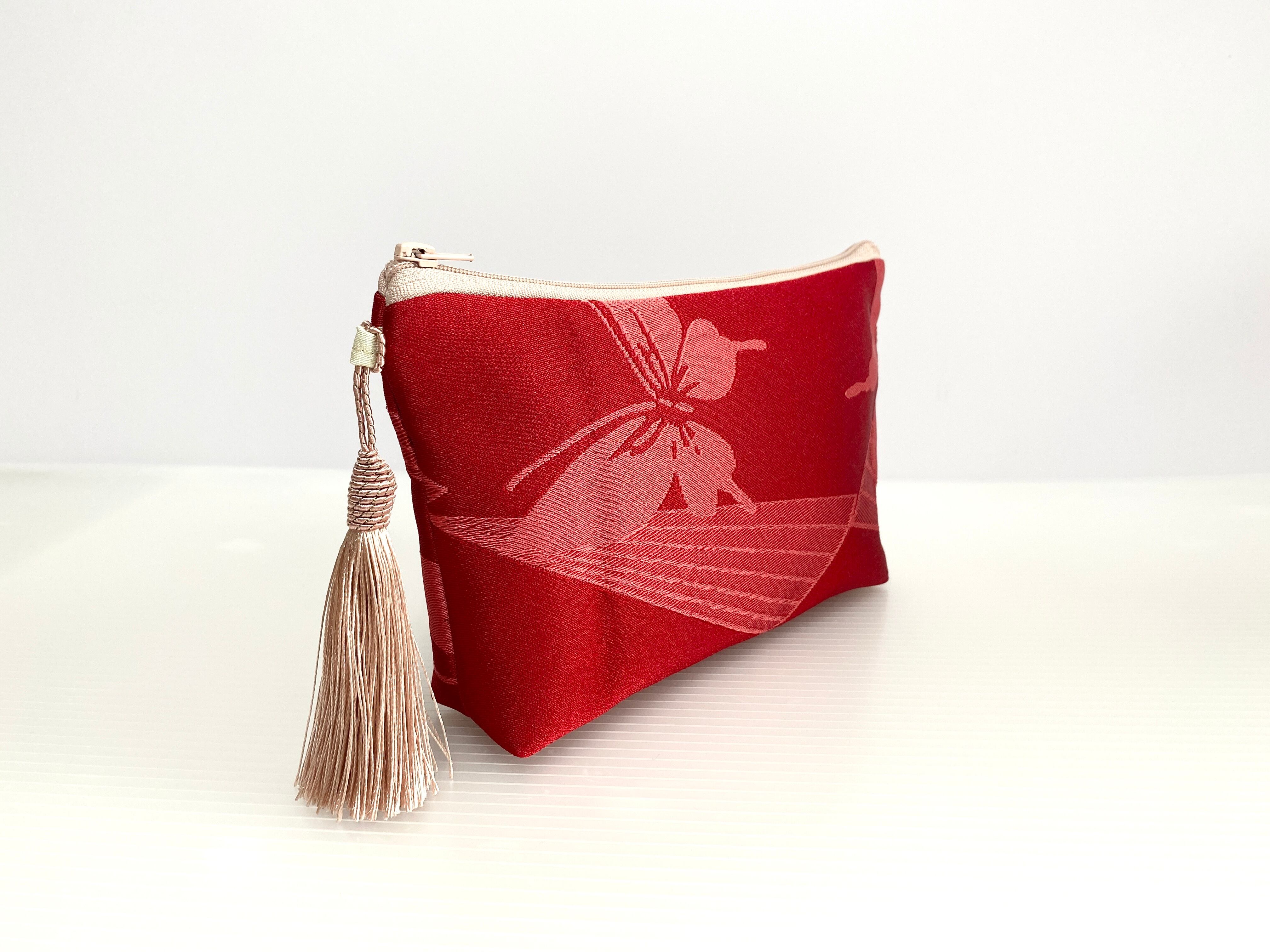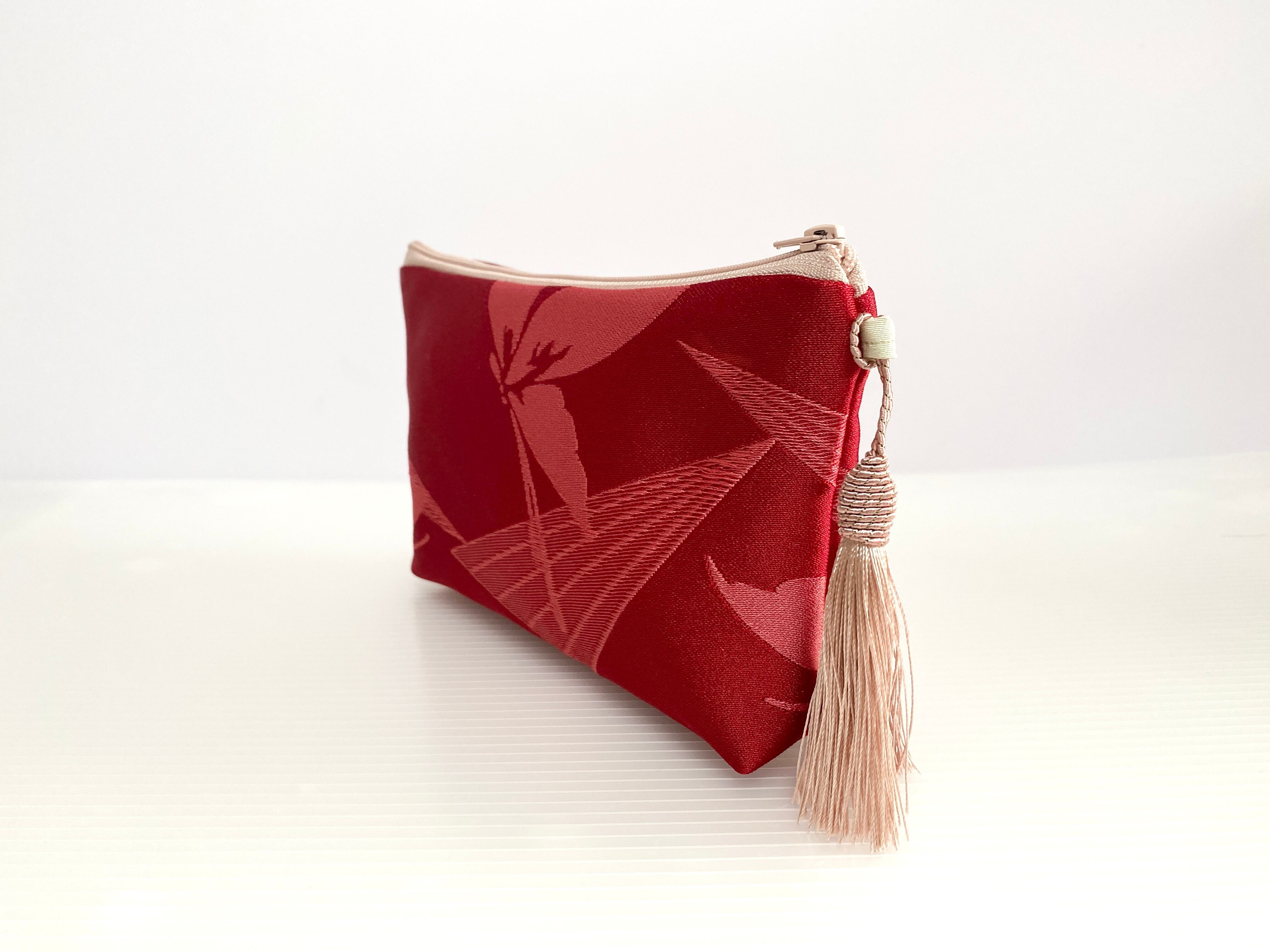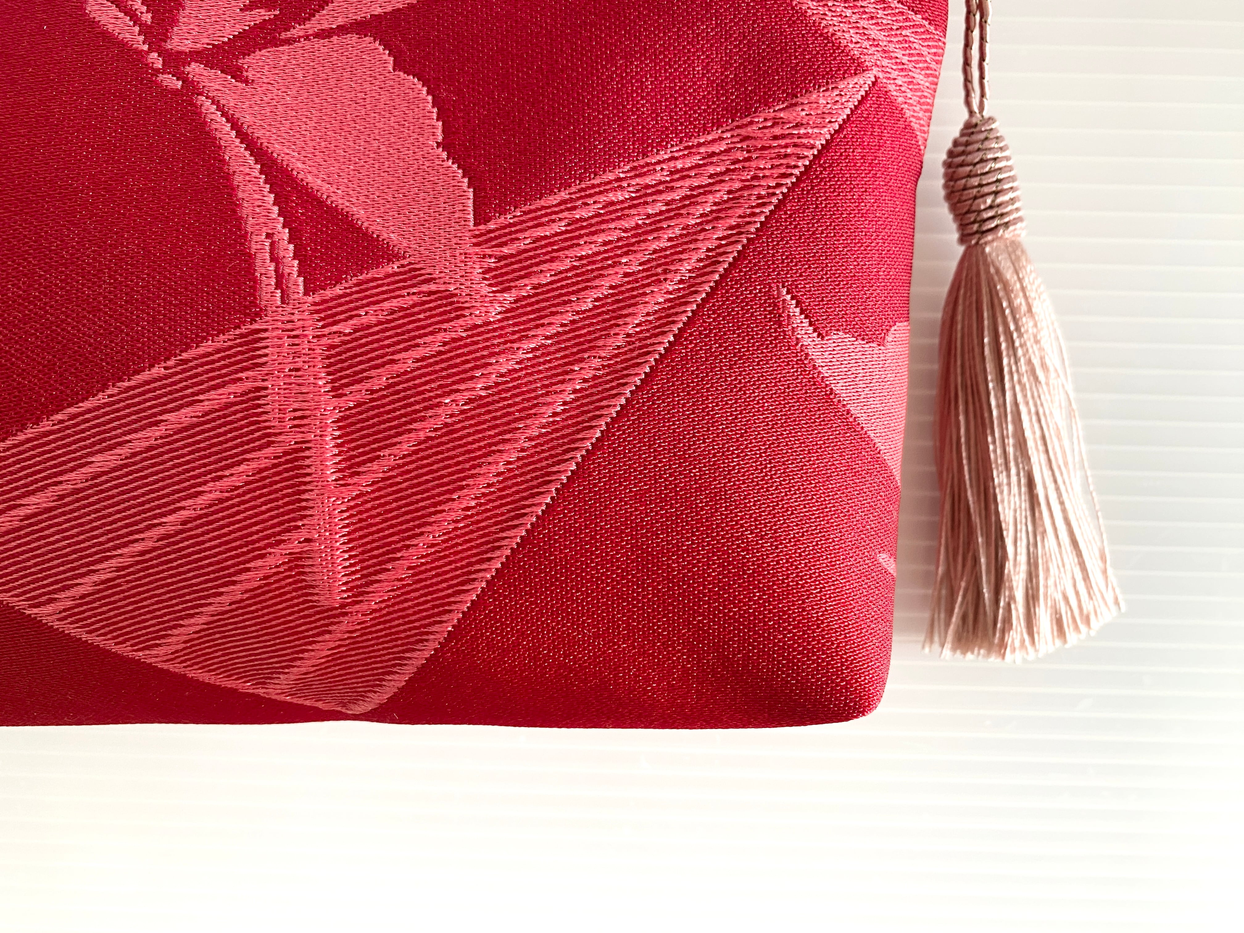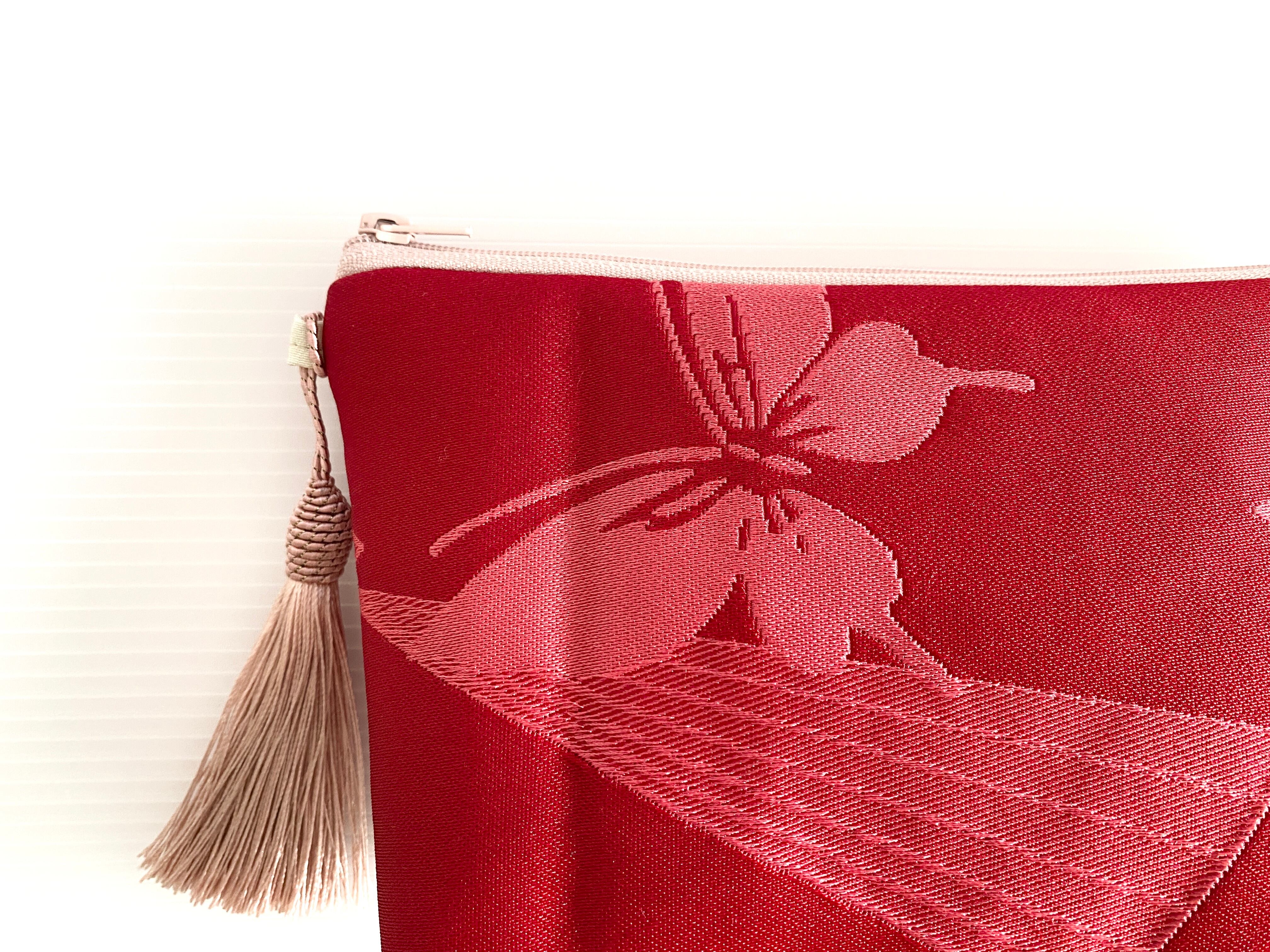日本の古着物帯をリメイクして作製したポーチでハンドメイド品です