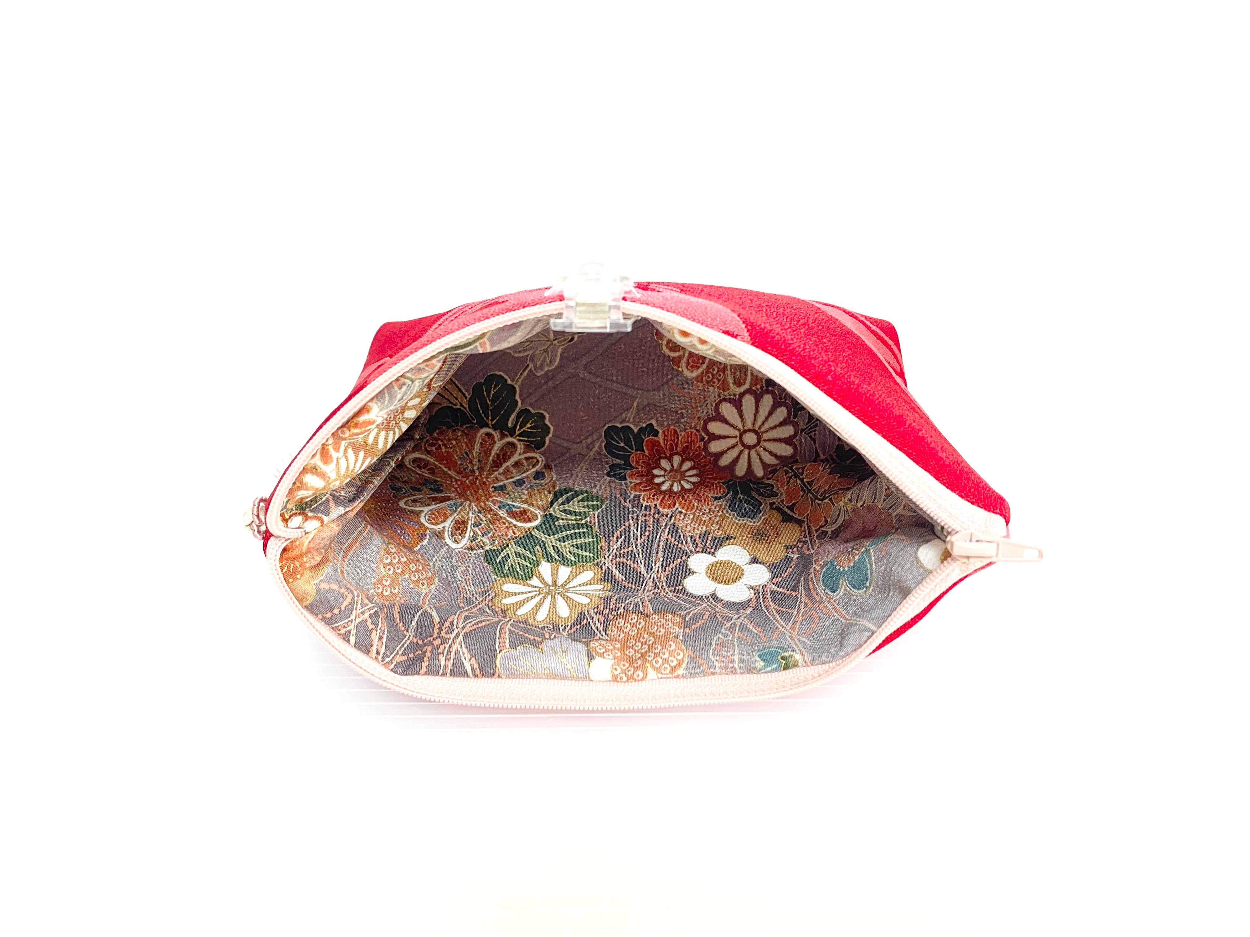 内側の裏生地にも着物布を使用しておりますのでしっかりとした造りの帯リメイクポーチ着物リメイクポーチ