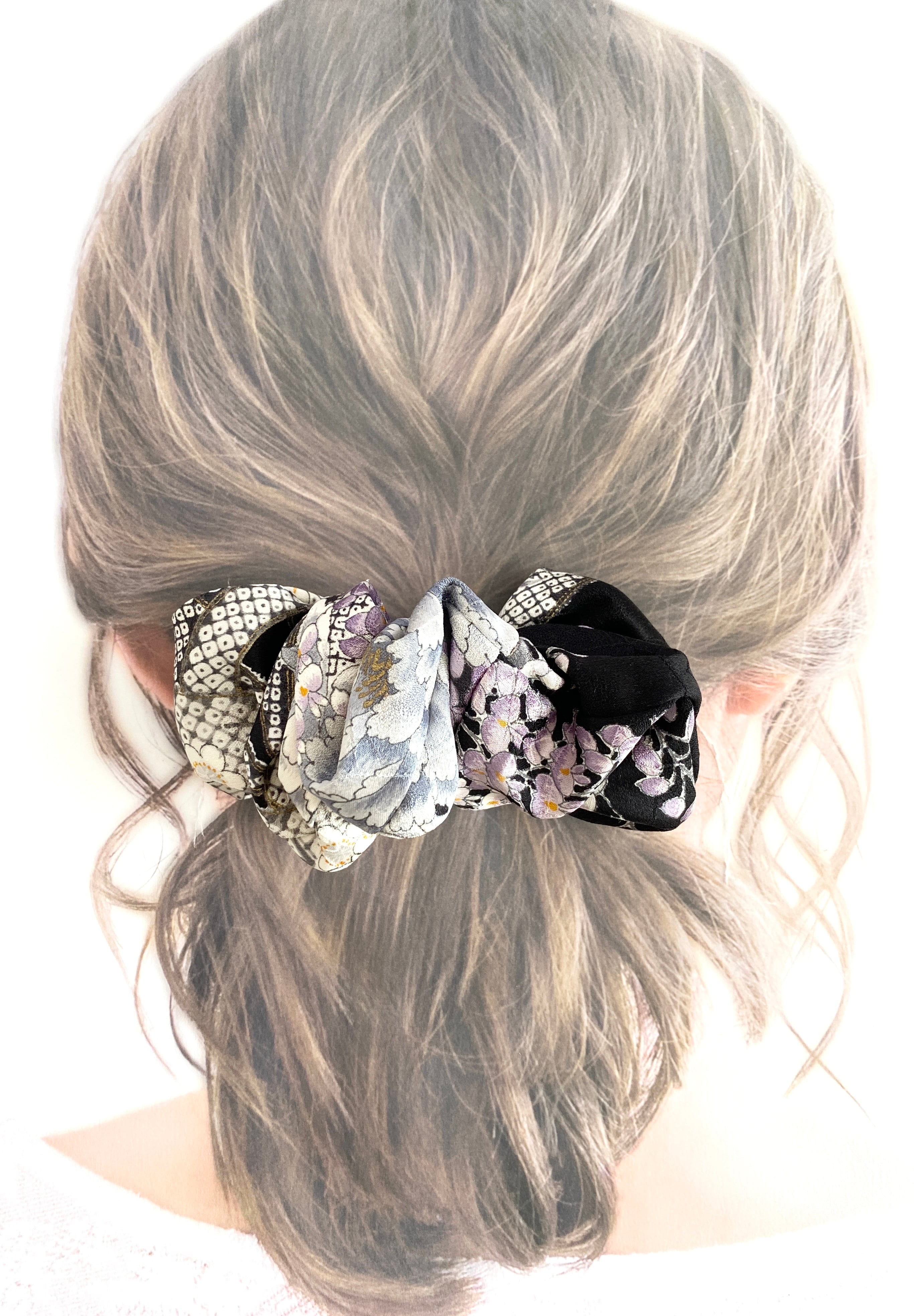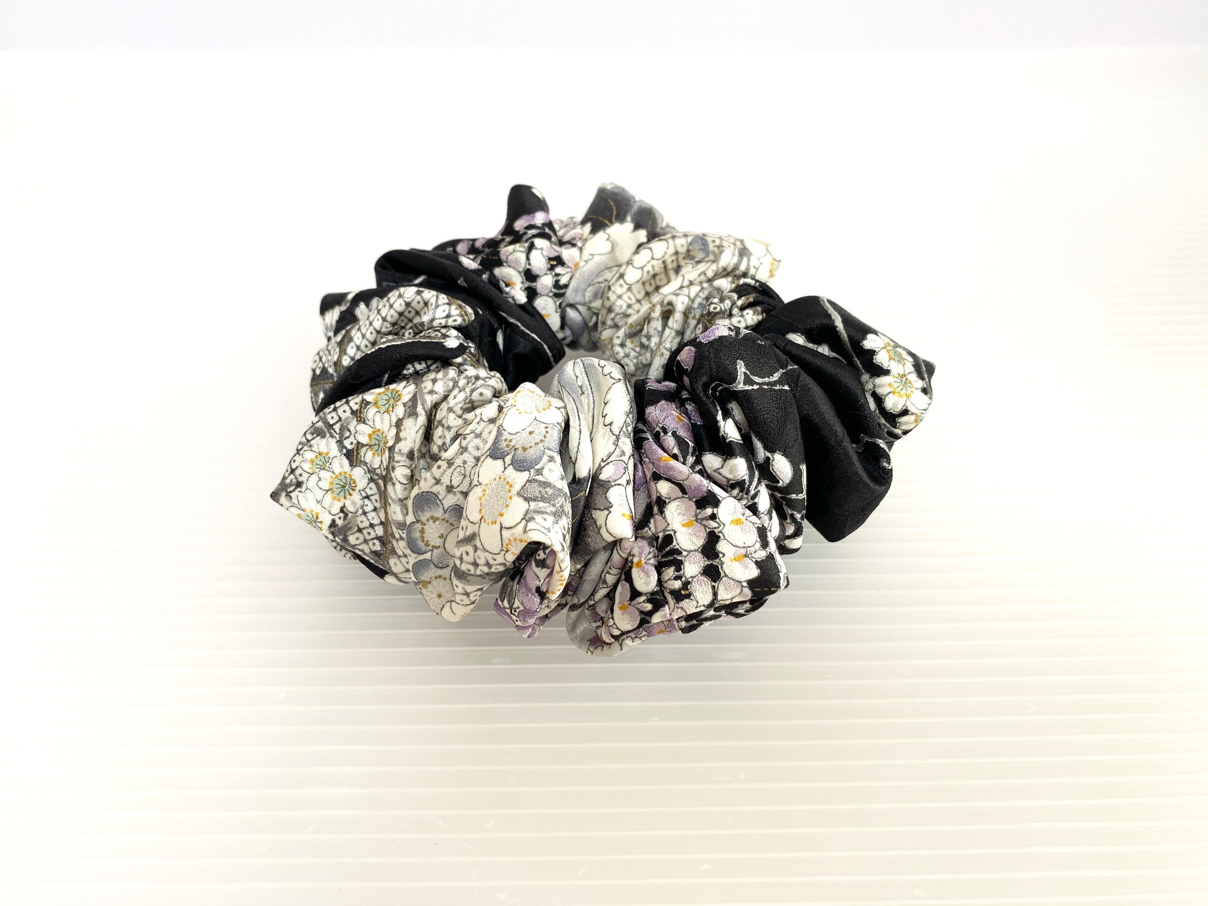 着物布生地なので柔らかで薄い布生地な為触り心地が良く滑らかで髪結びの装着がとても良いシュシュヘアゴムです