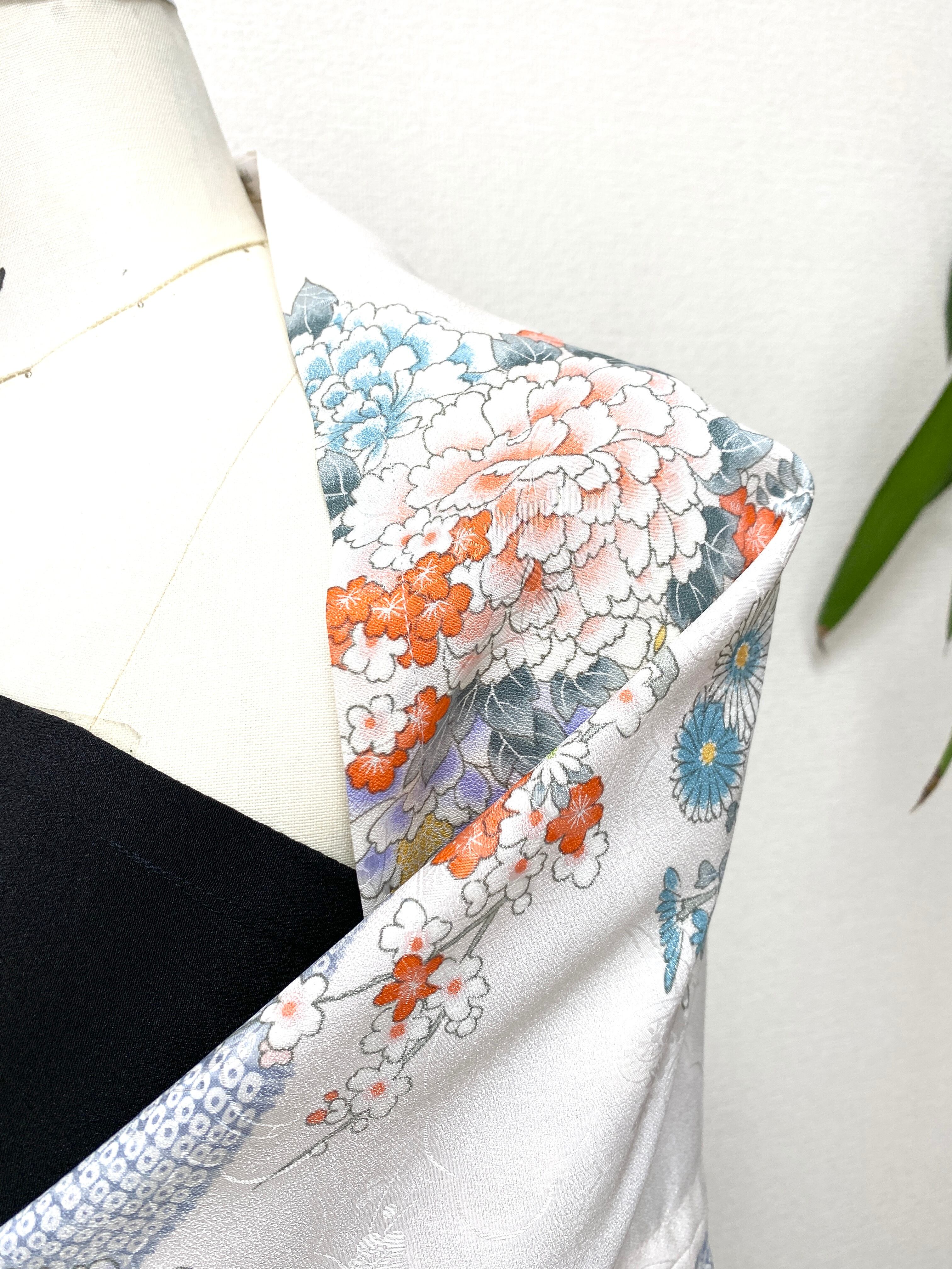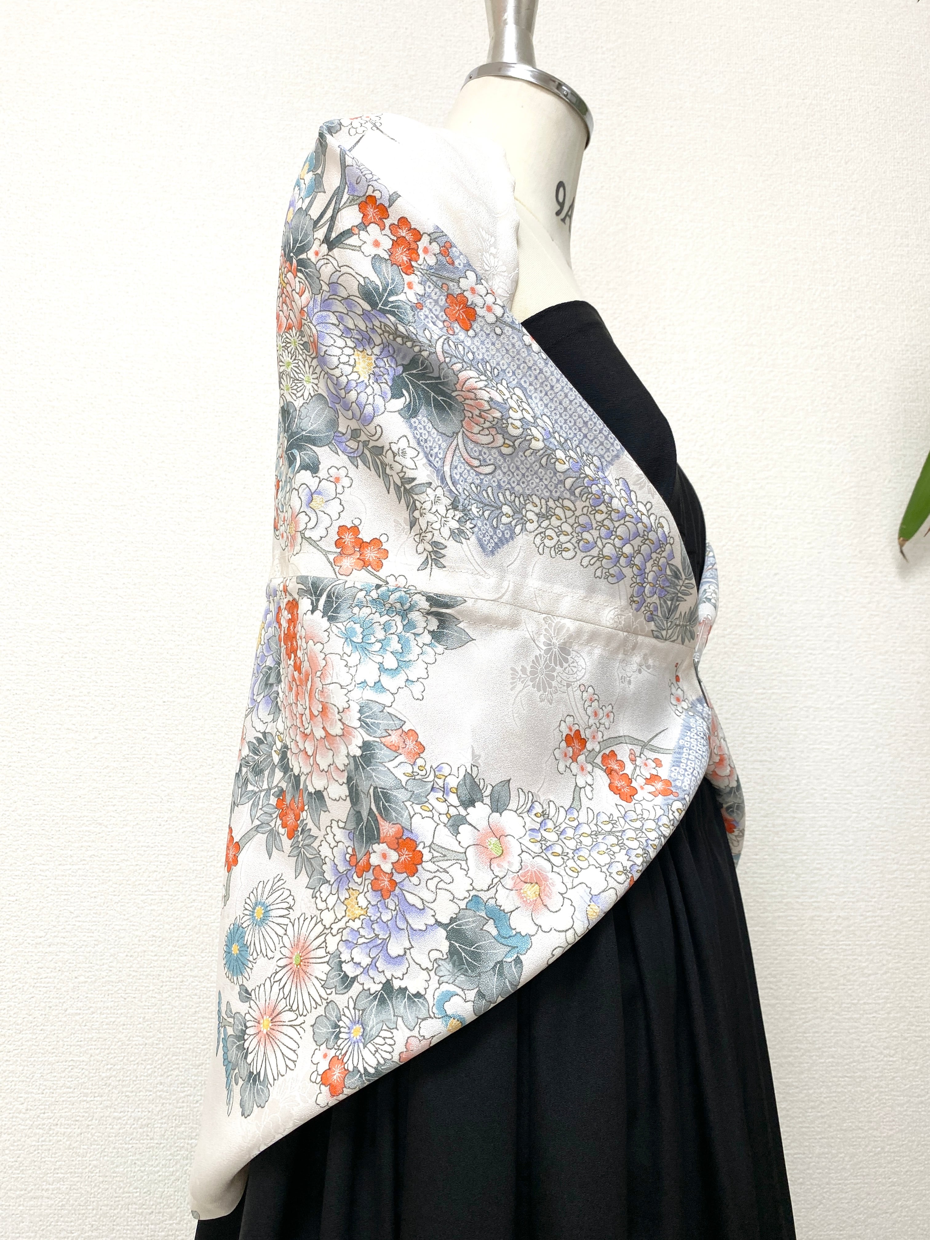 着物をリメイクし作製した羽織物ストールショールです