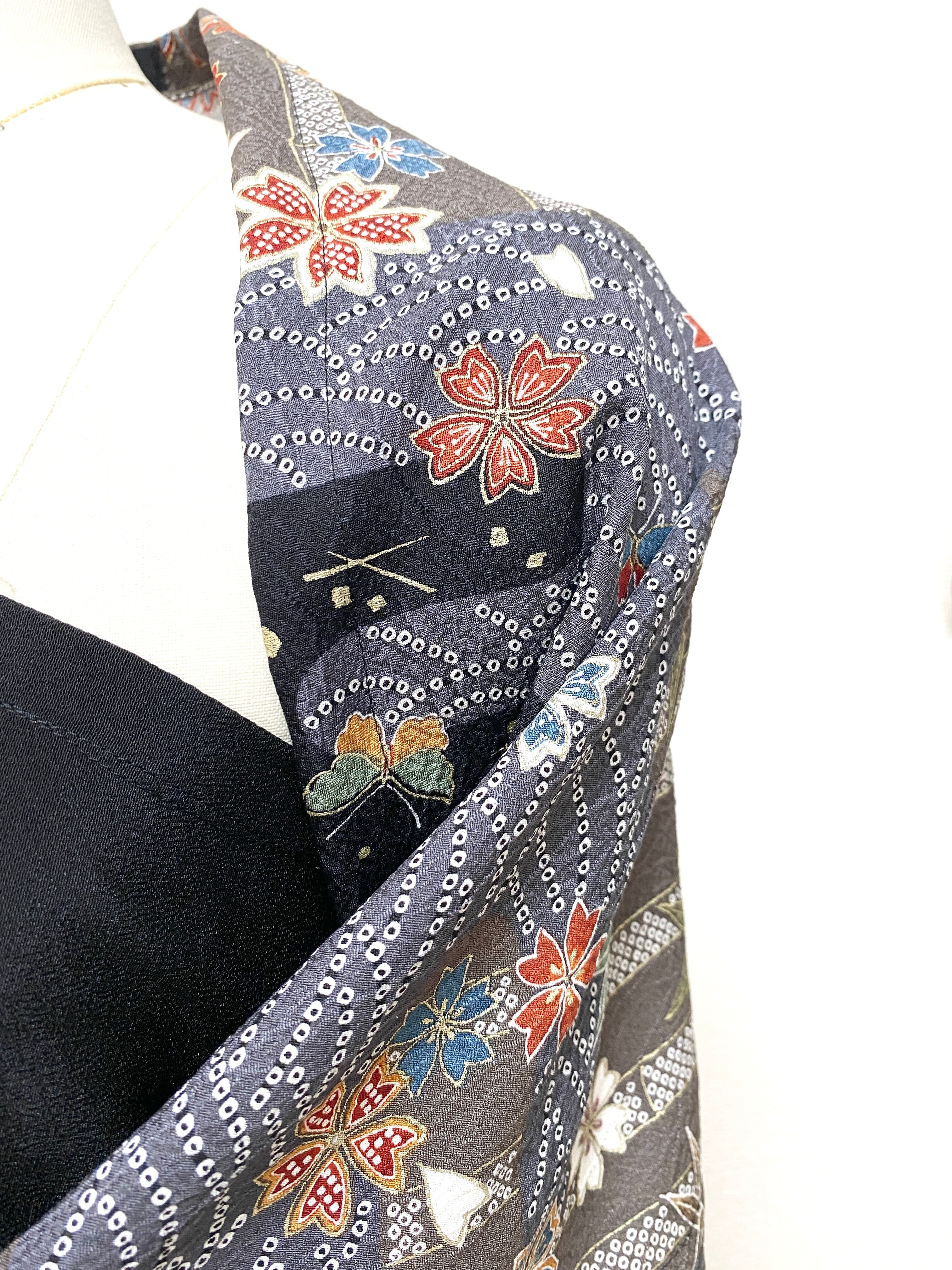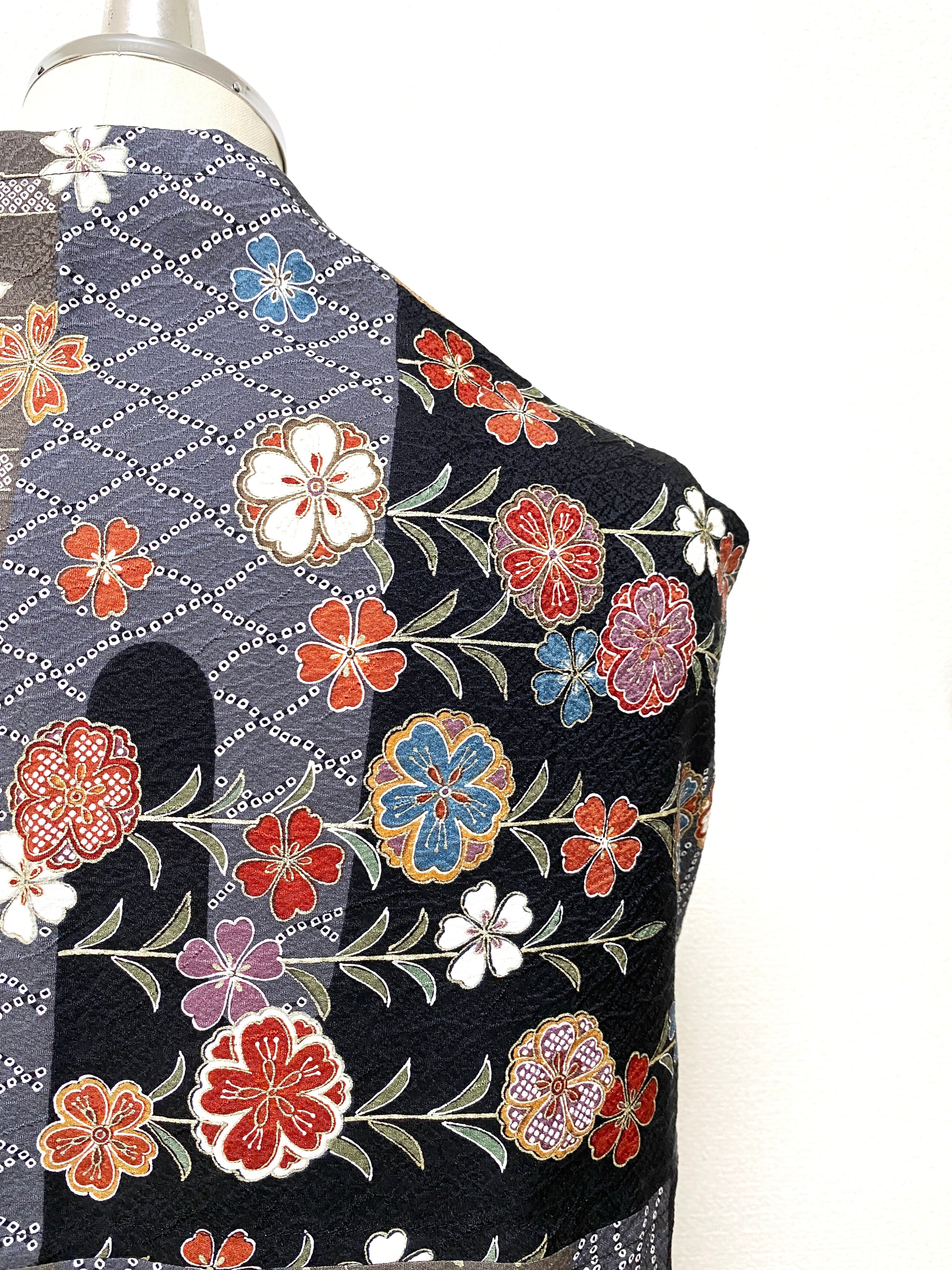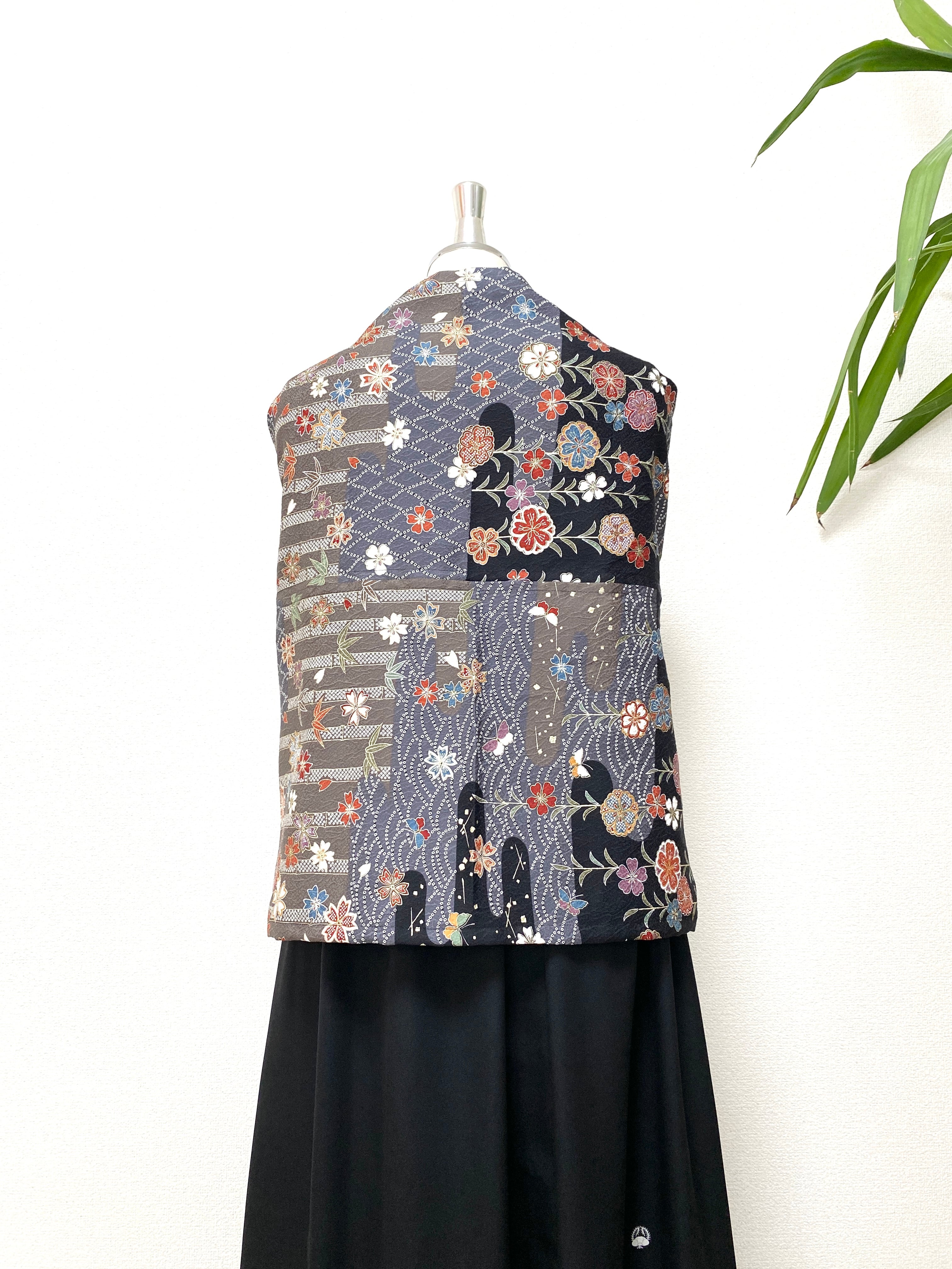 着物をリメイクし作製した羽織物ストールショールです