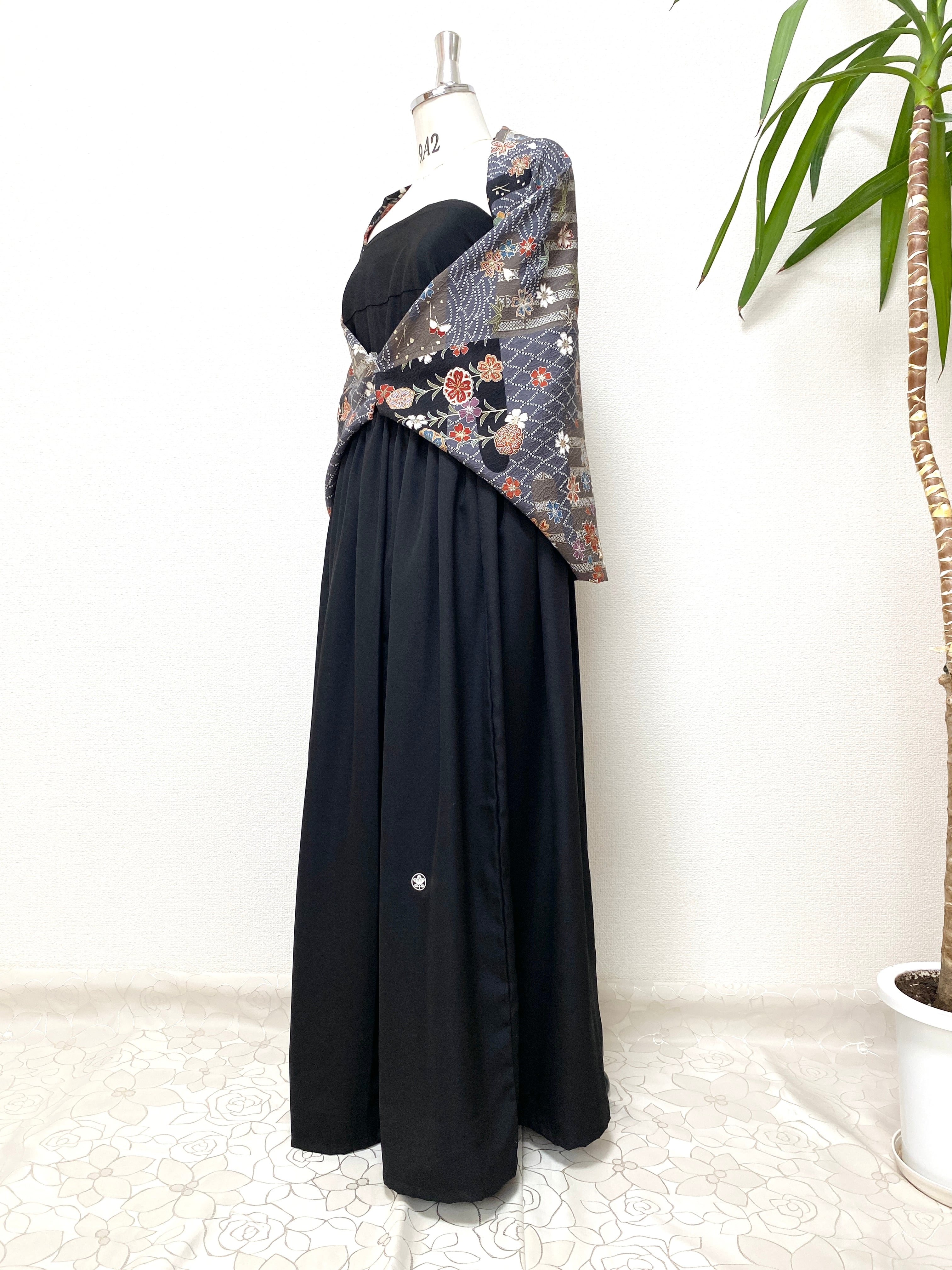 着物リメイク羽織物ストールショールフリーサイズ大人可愛いストール送料無料ハンドメイド着物リメイク羽織物NO.6086