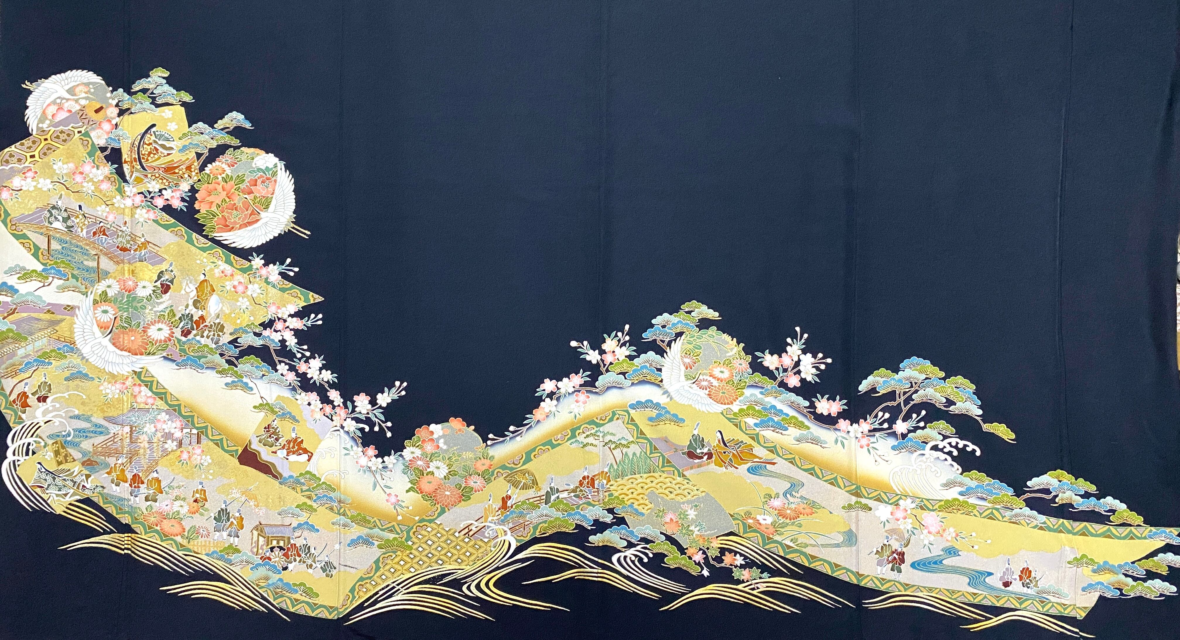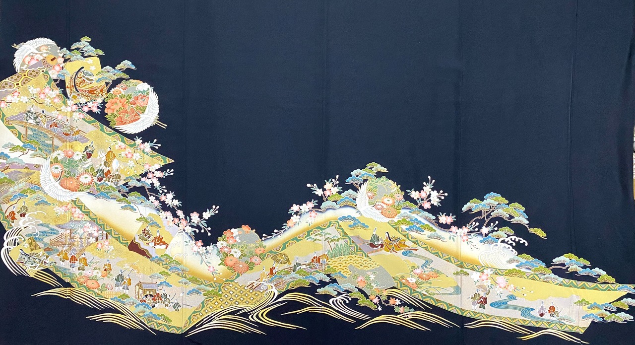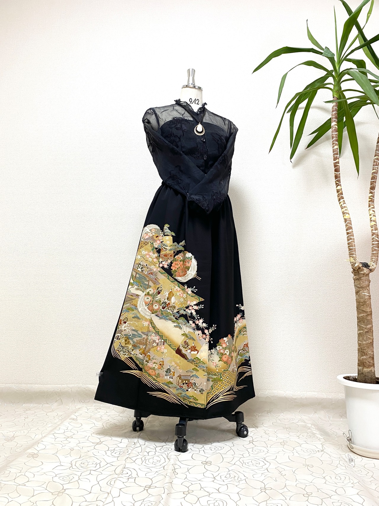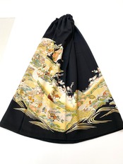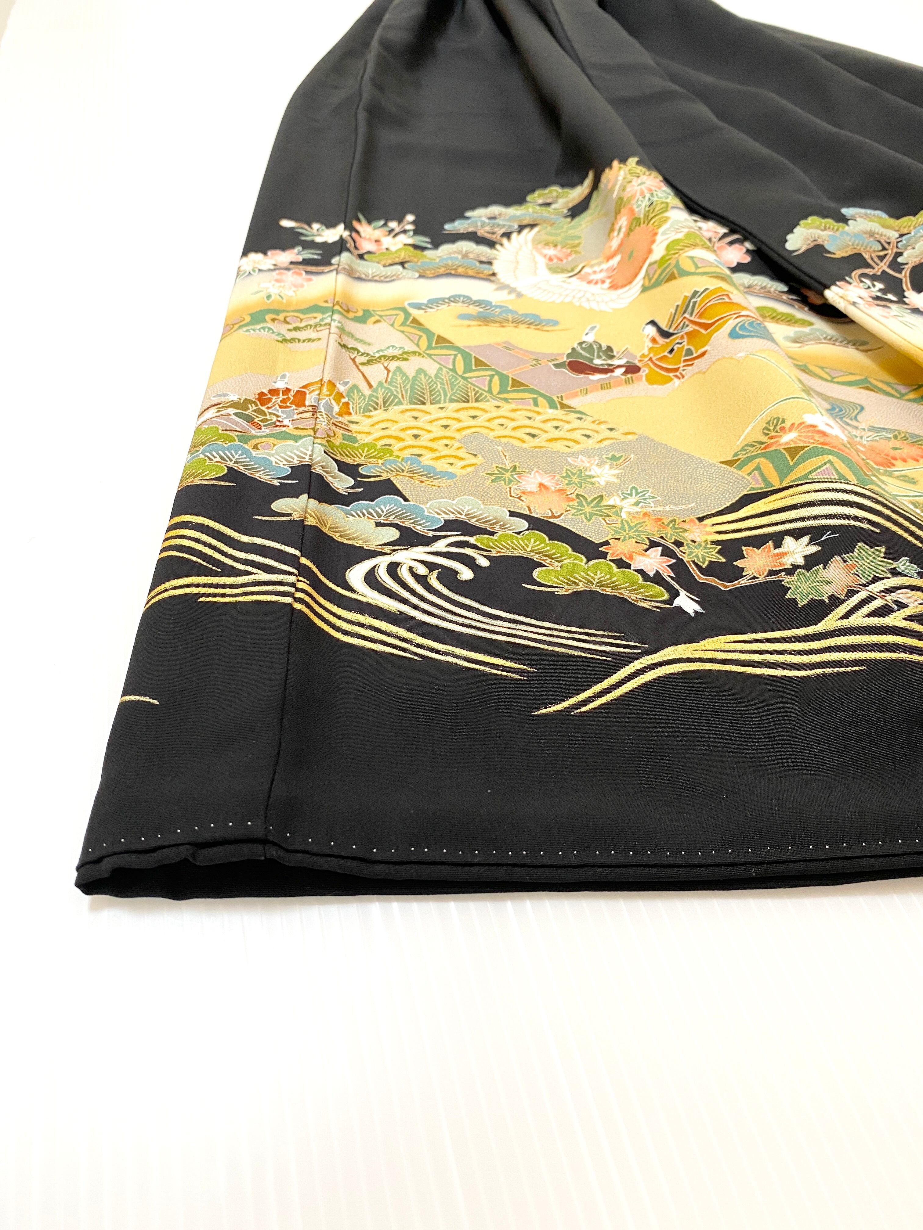 大人可愛いセレブ着物スカートフリーサイズ黒留袖着物リメイクウエストゴムロングスカート