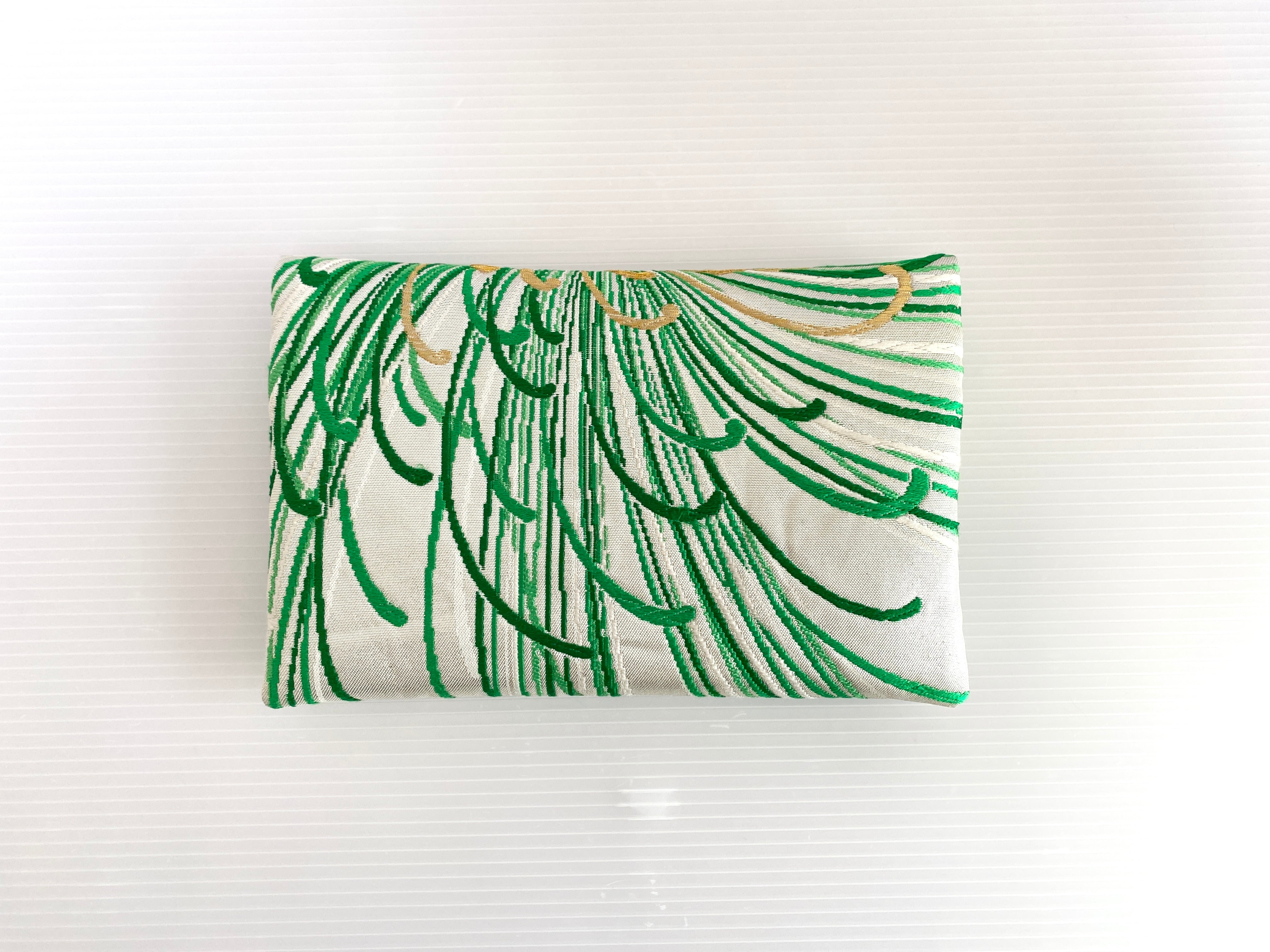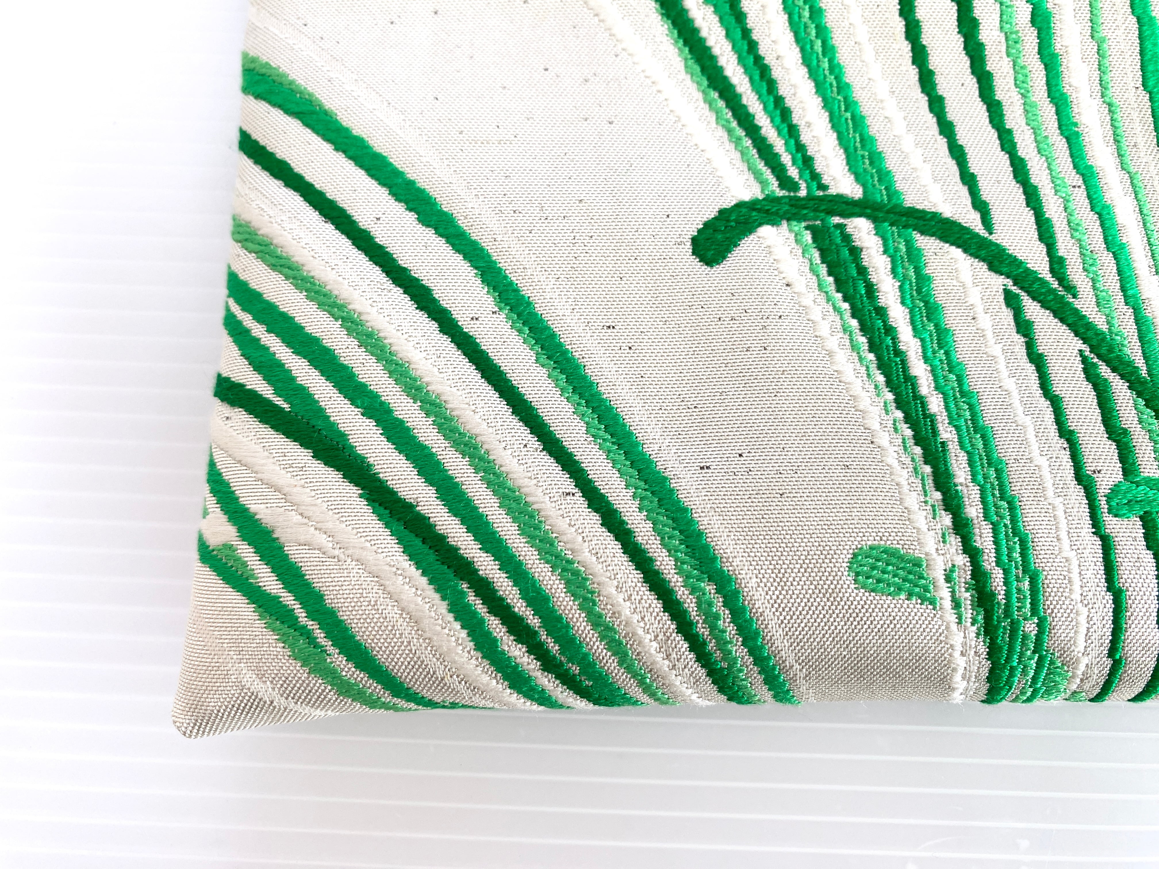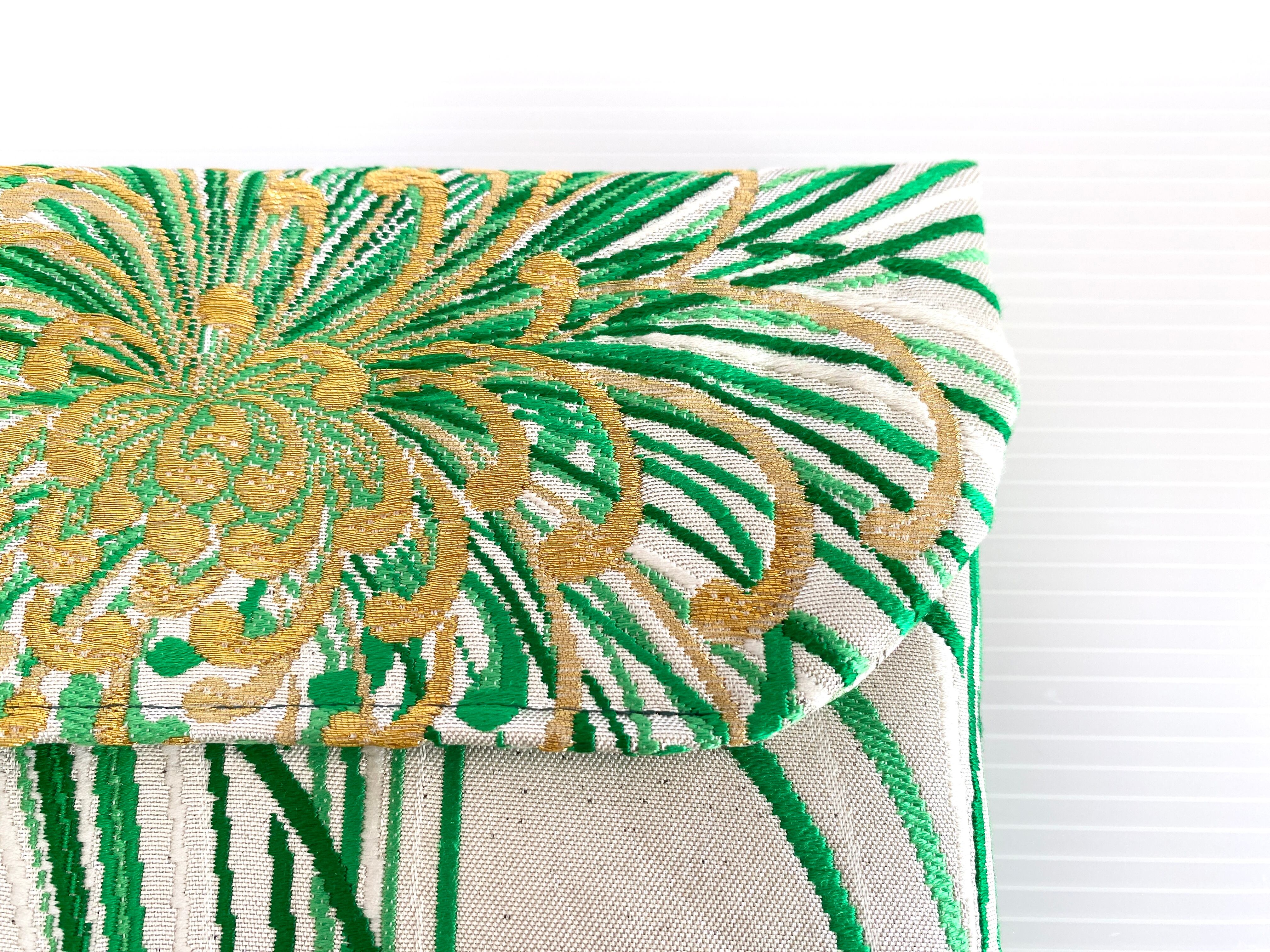 触り心地が滑らかで手にしっくりとくる安心感。絵柄の鮮やかさは日本の帯ならではの存在感で素晴らしく華やかな美しさです