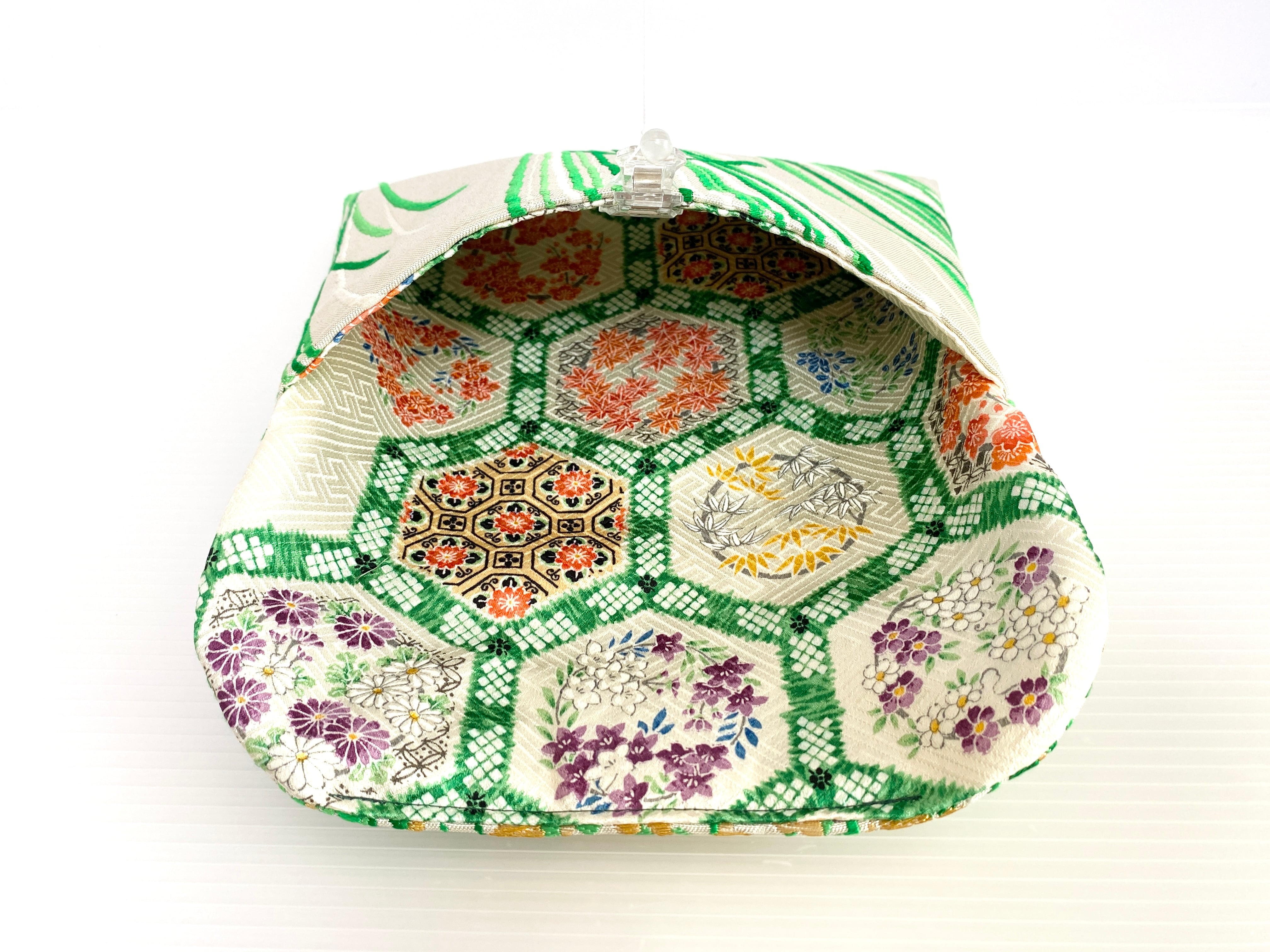 内側の裏生地も着物帯を使っておりしっかりとした造りです