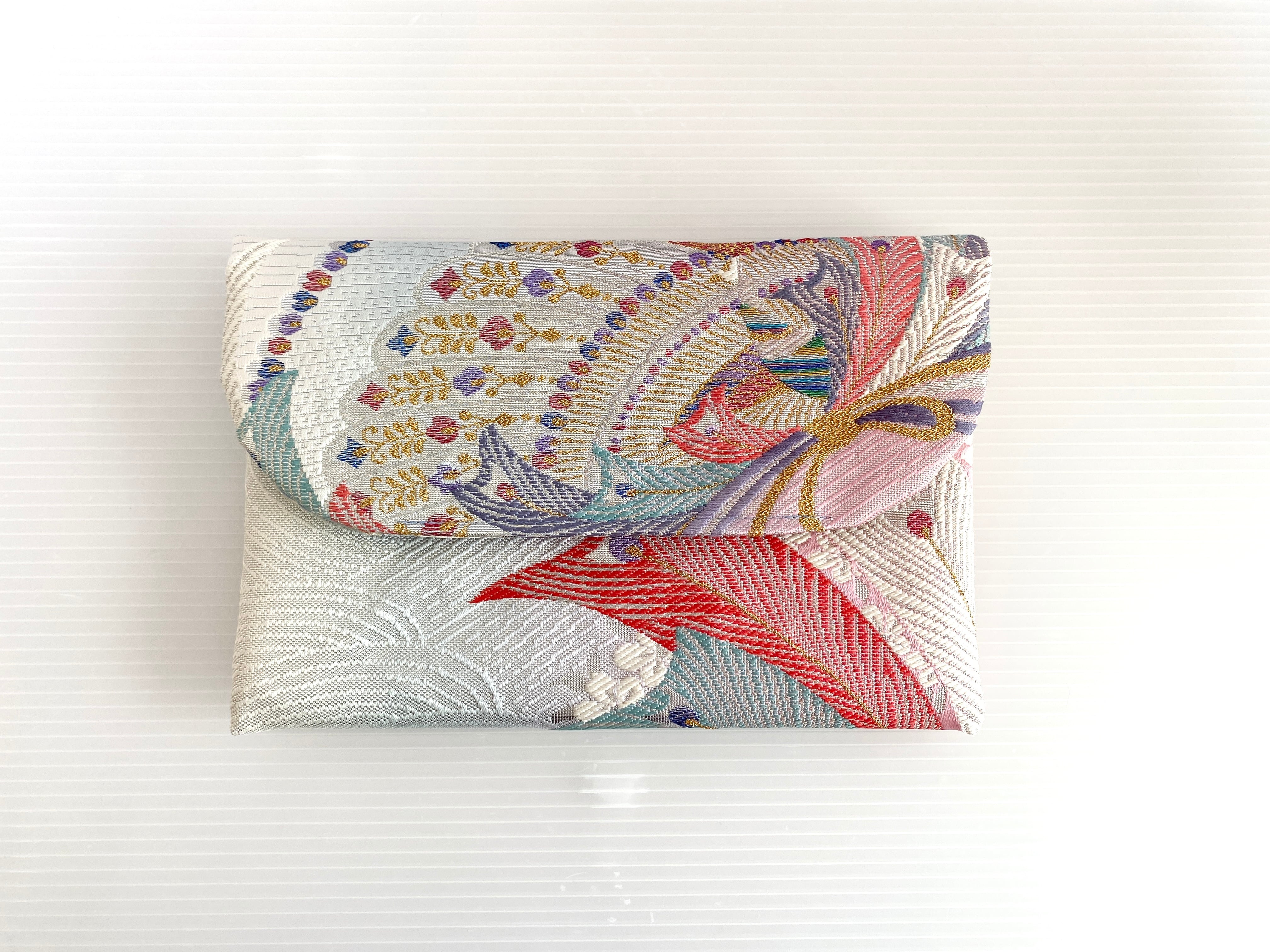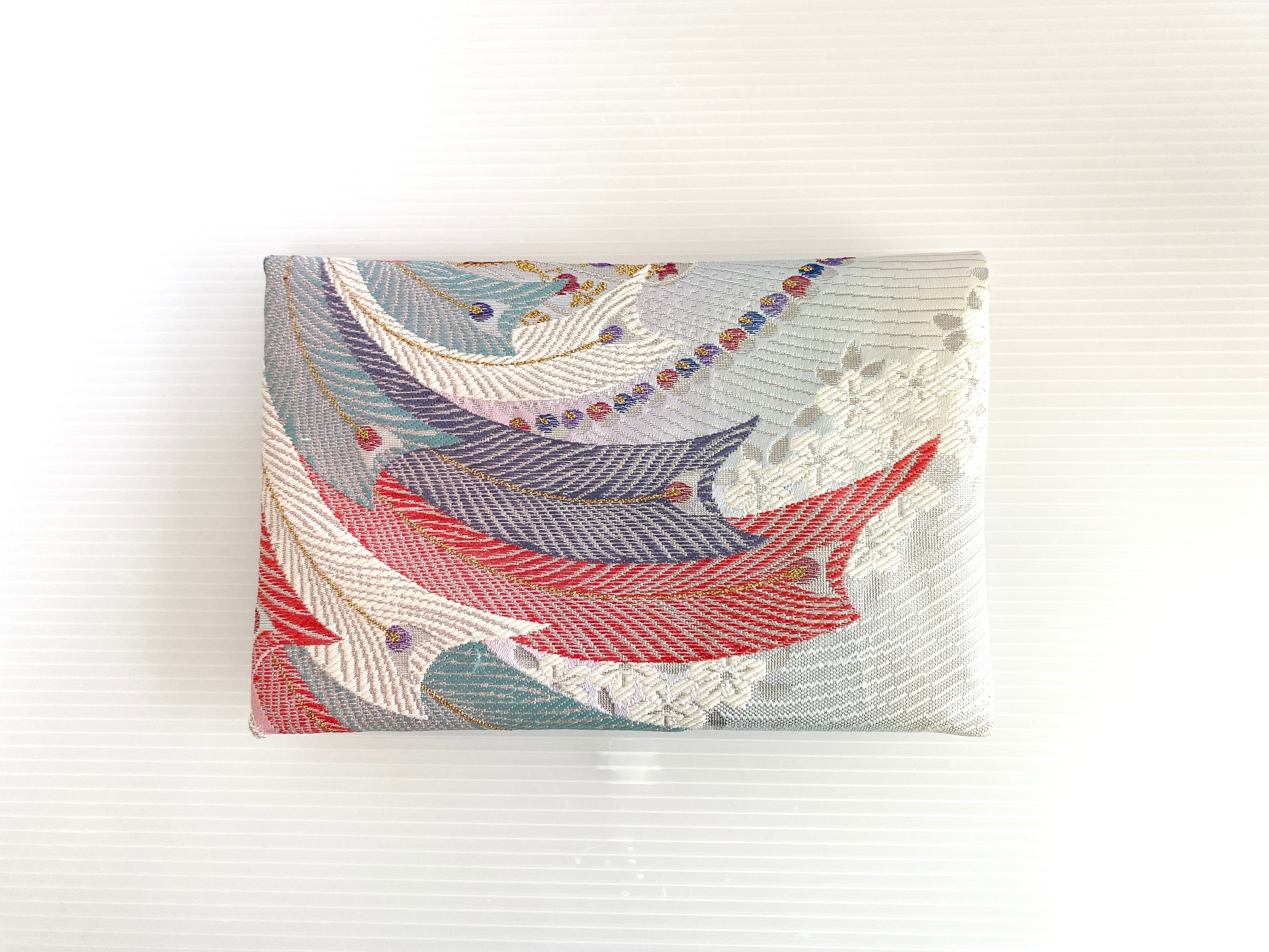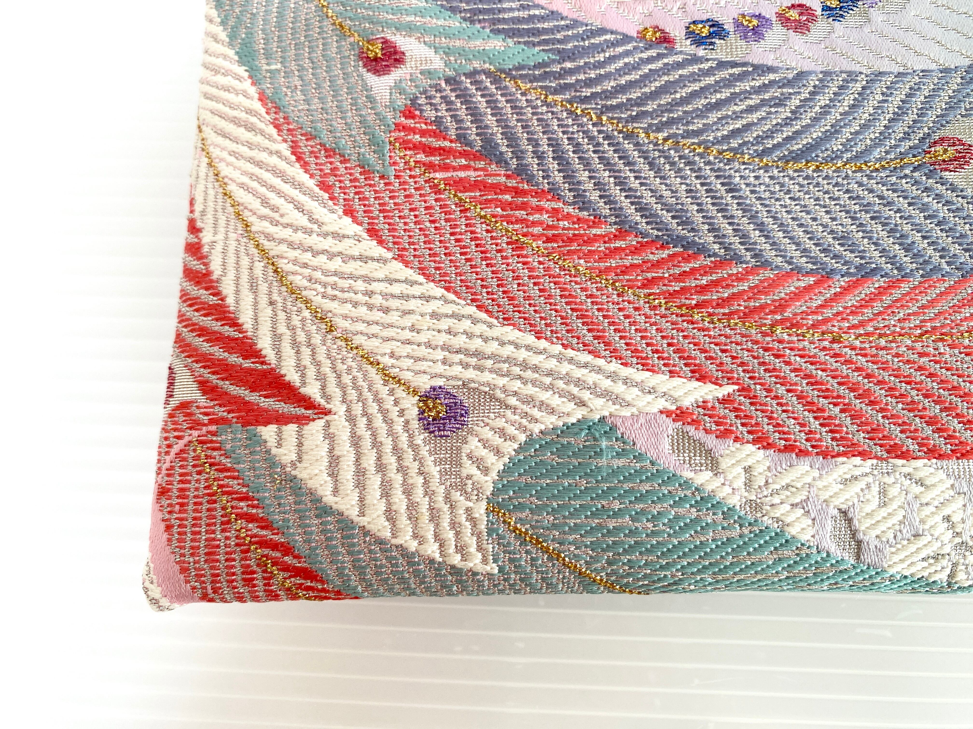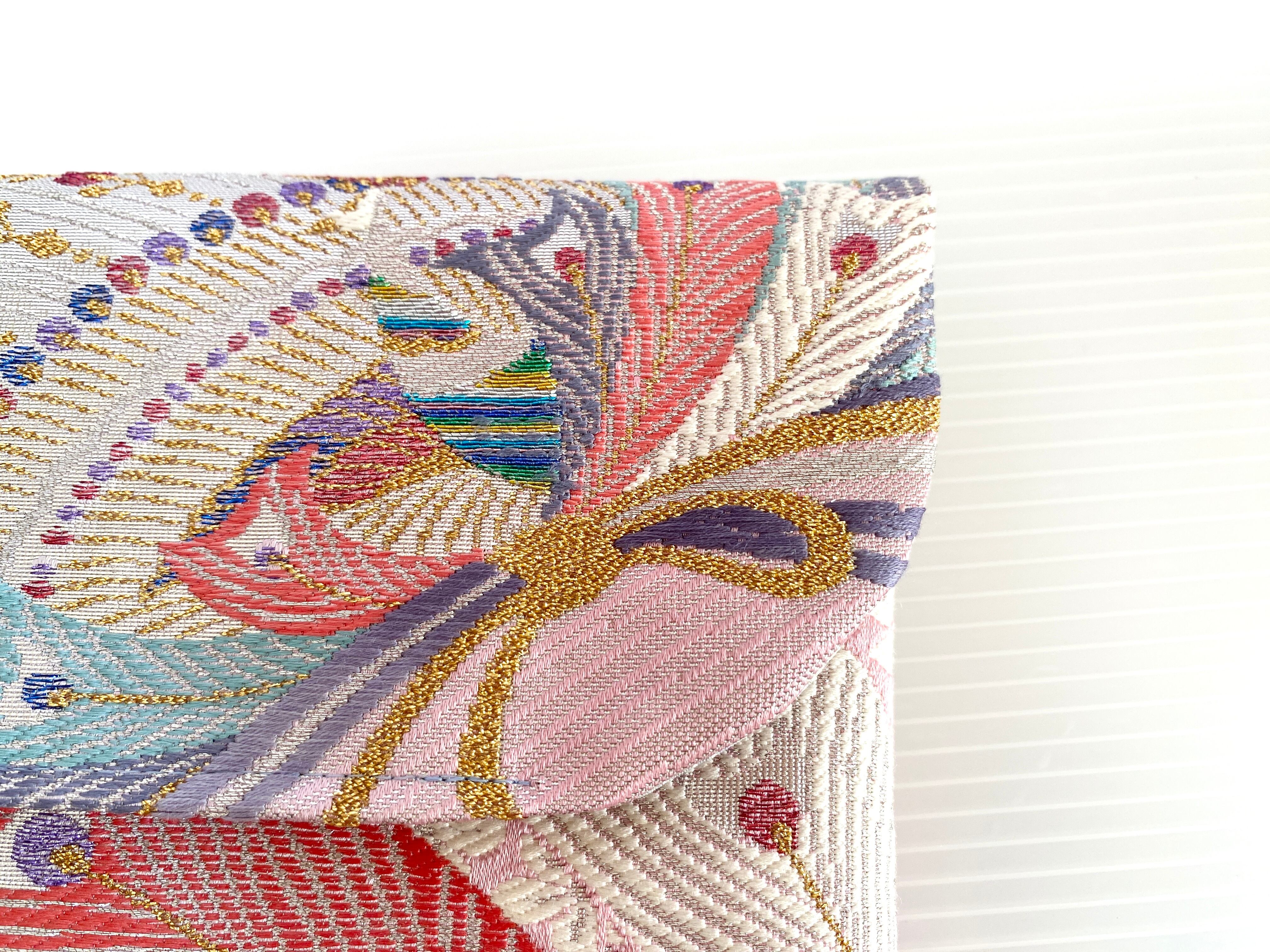 触り心地が滑らかで手にしっくりとくる安心感。絵柄の鮮やかさは日本の帯ならではの存在感で素晴らしく華やかな美しさです