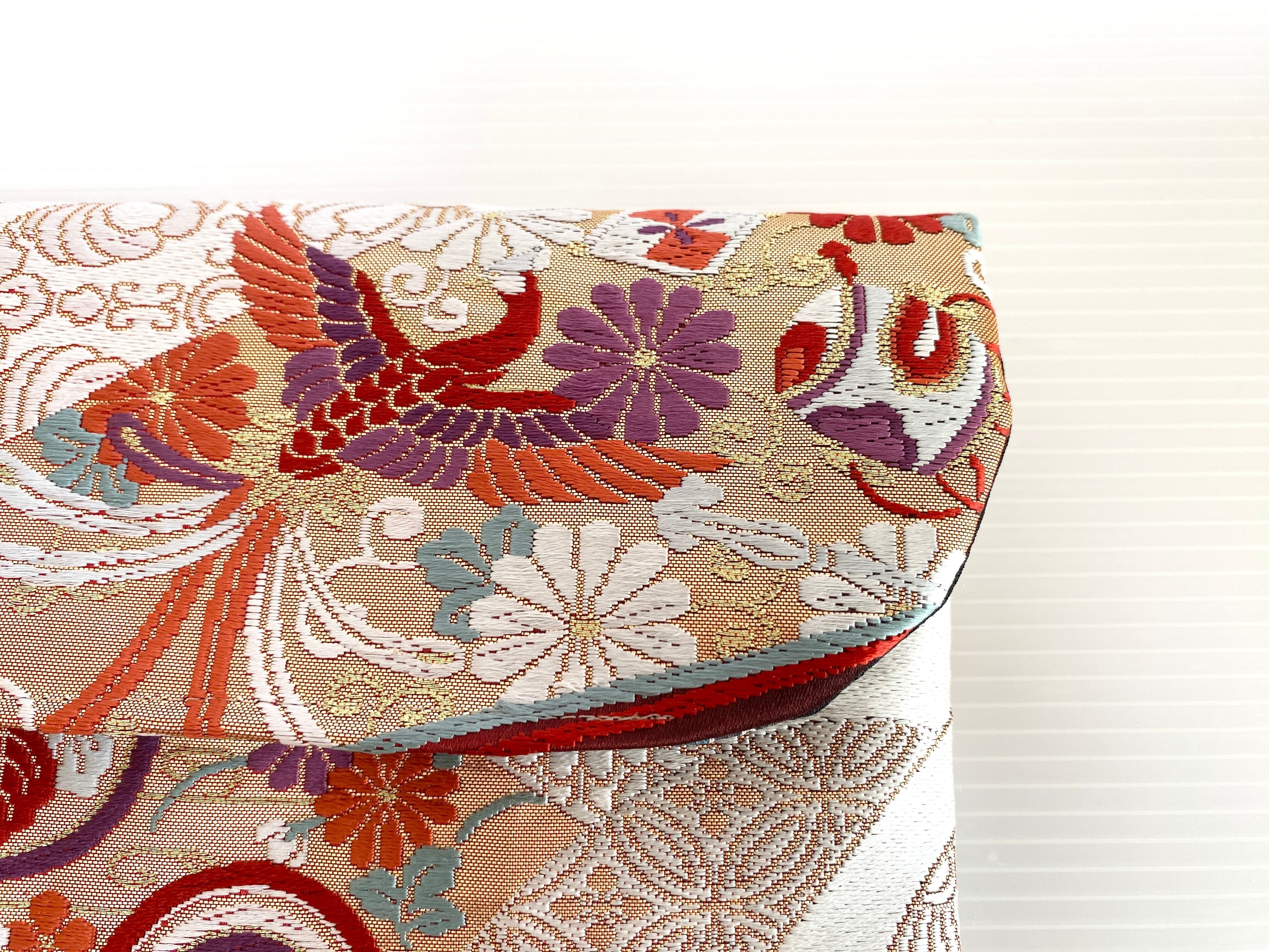 触り心地が滑らかで手にしっくりとくる安心感。絵柄の鮮やかさは日本の帯ならではの存在感で素晴らしく華やかな美しさです