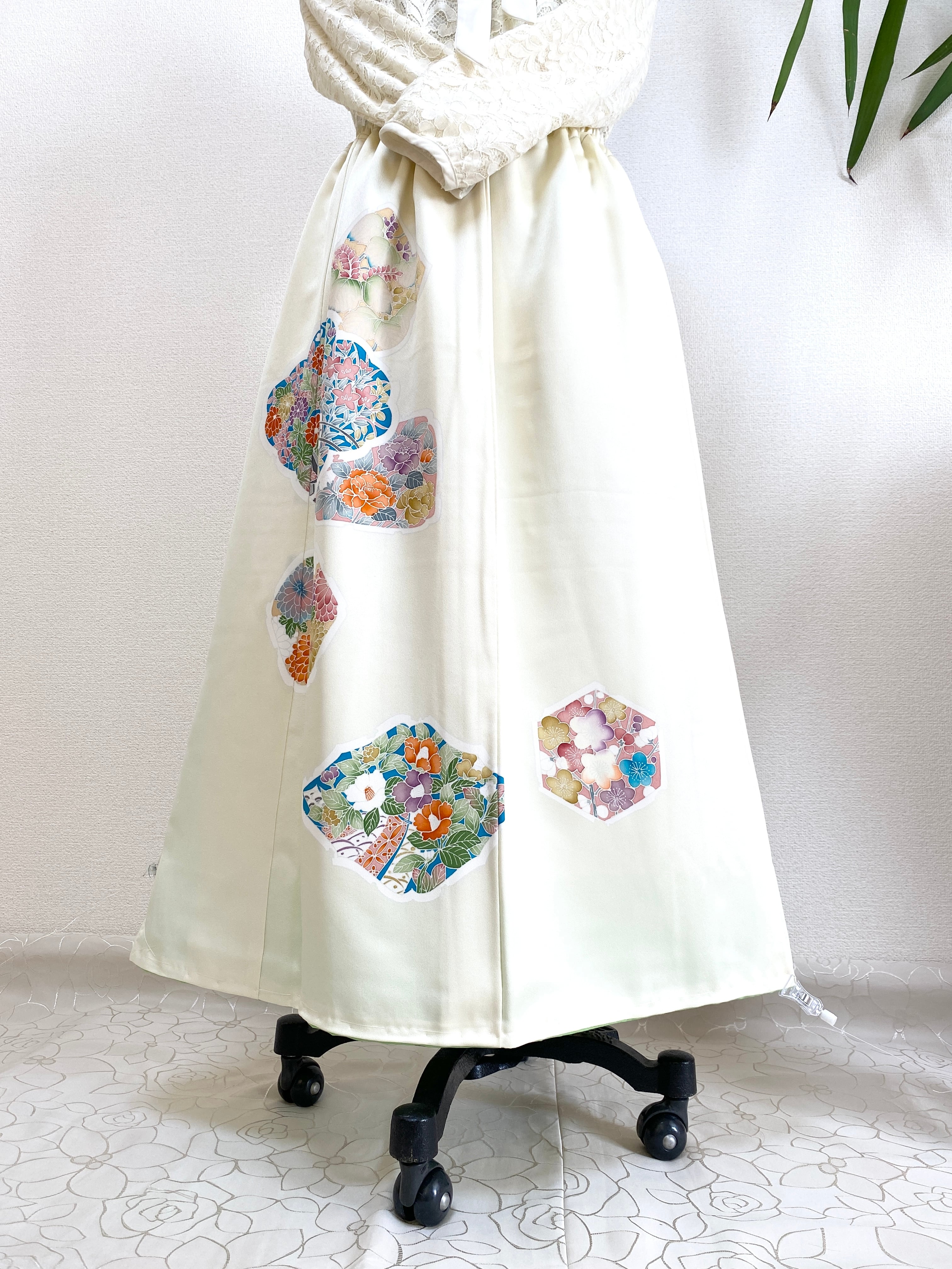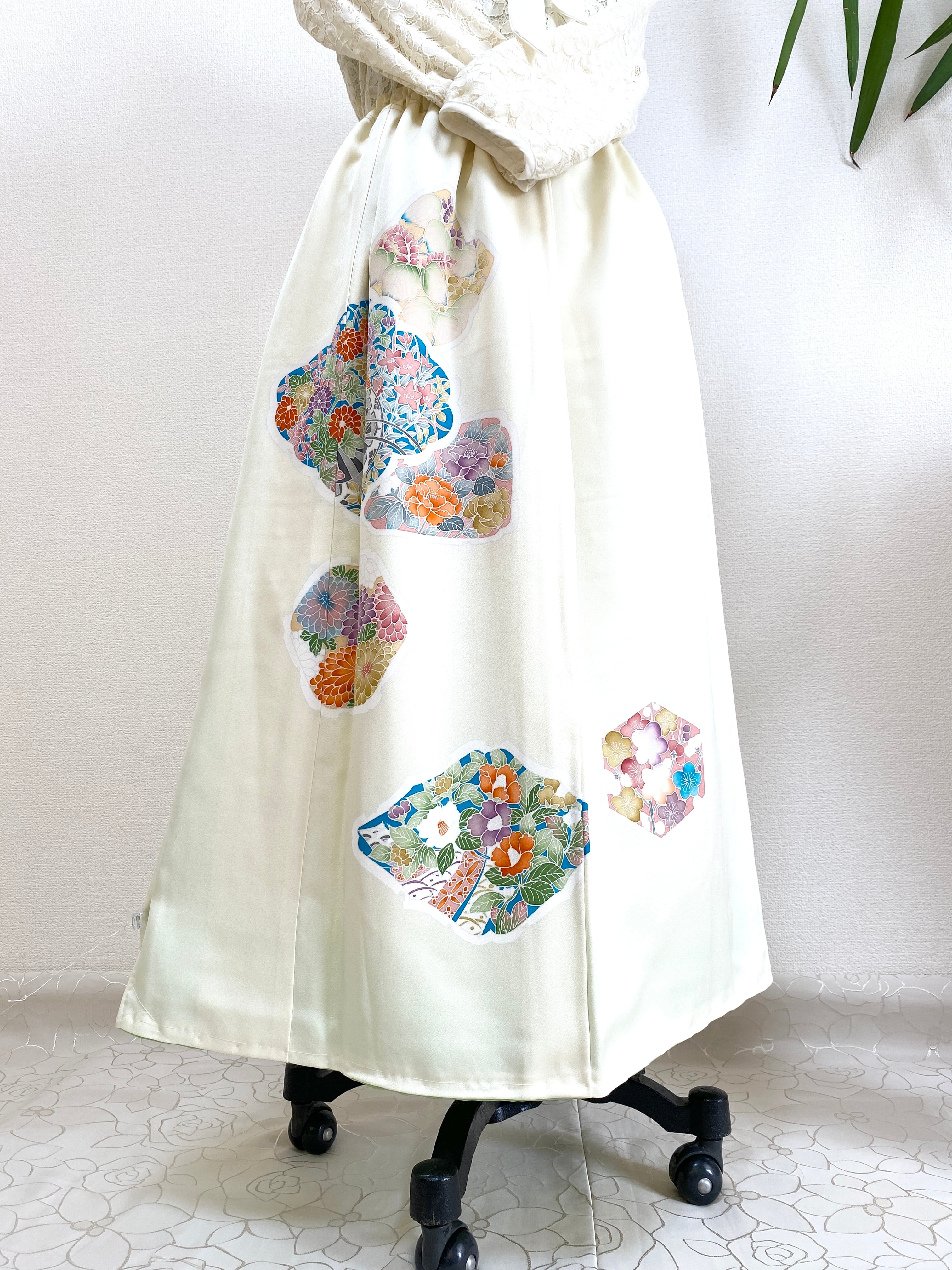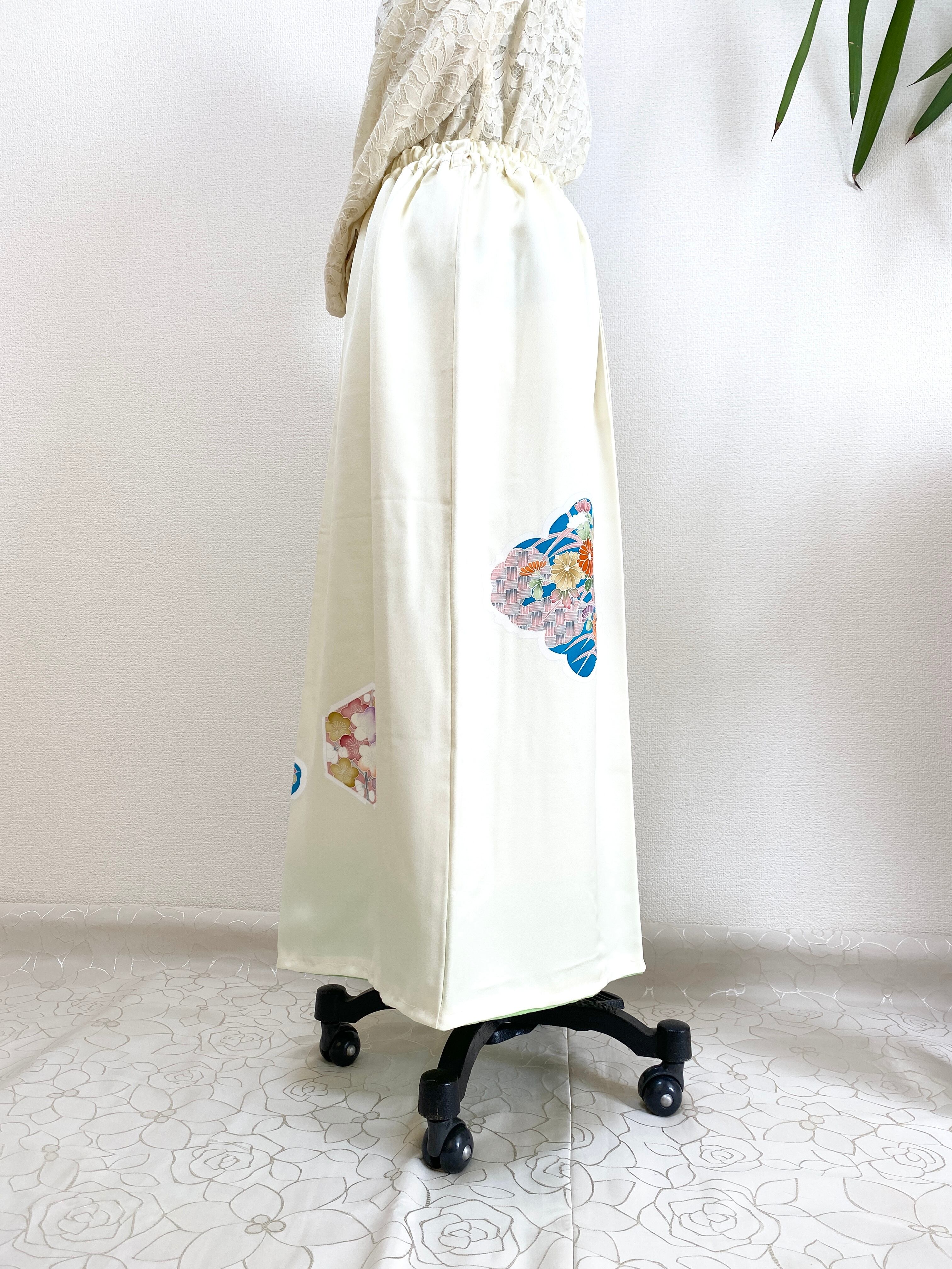 大人可愛いセレブ着物スカートフリーサイズ着物リメイクウエストゴムロングスカートフリーサイズ送料込みハンドメイドNO.6153