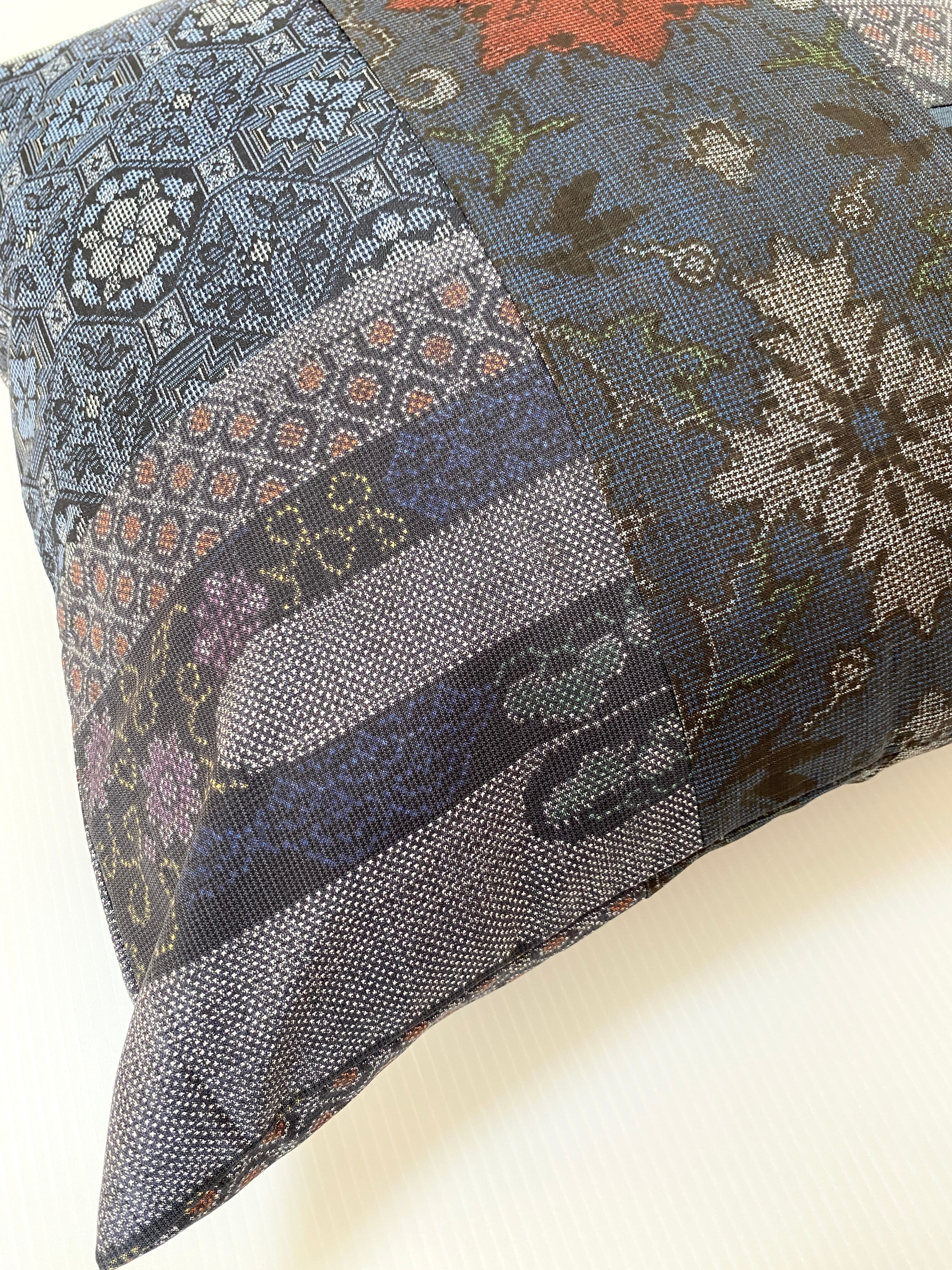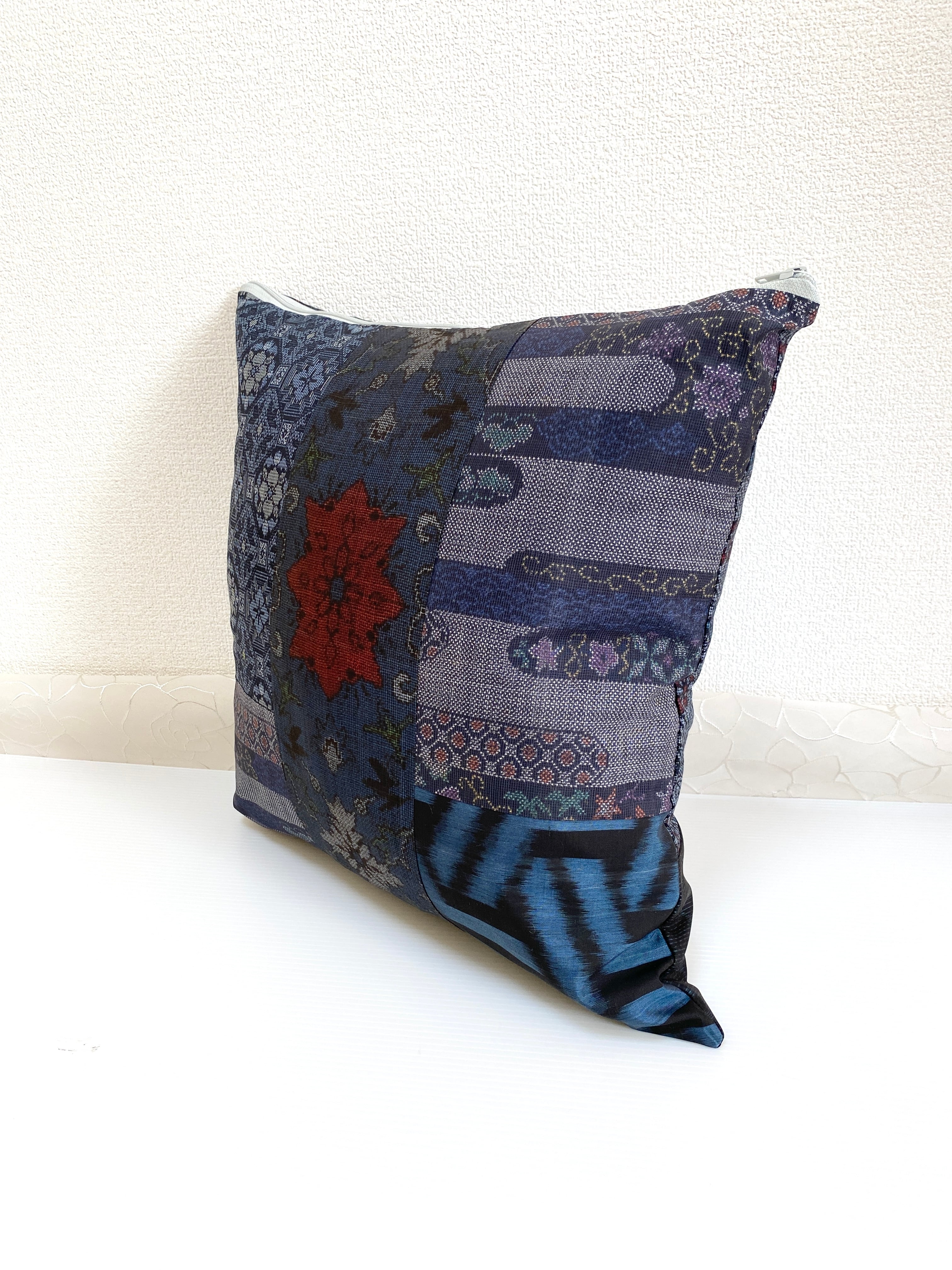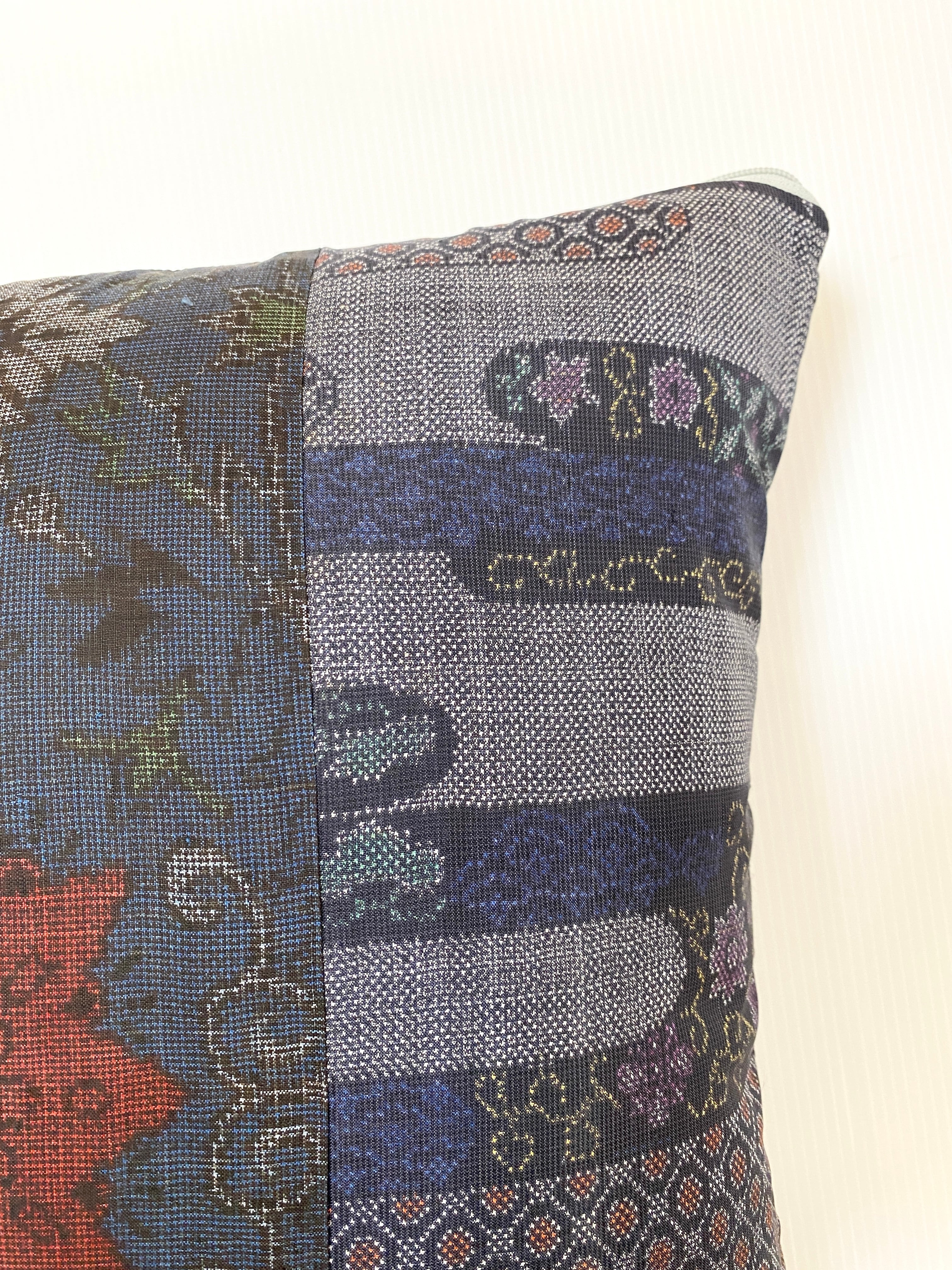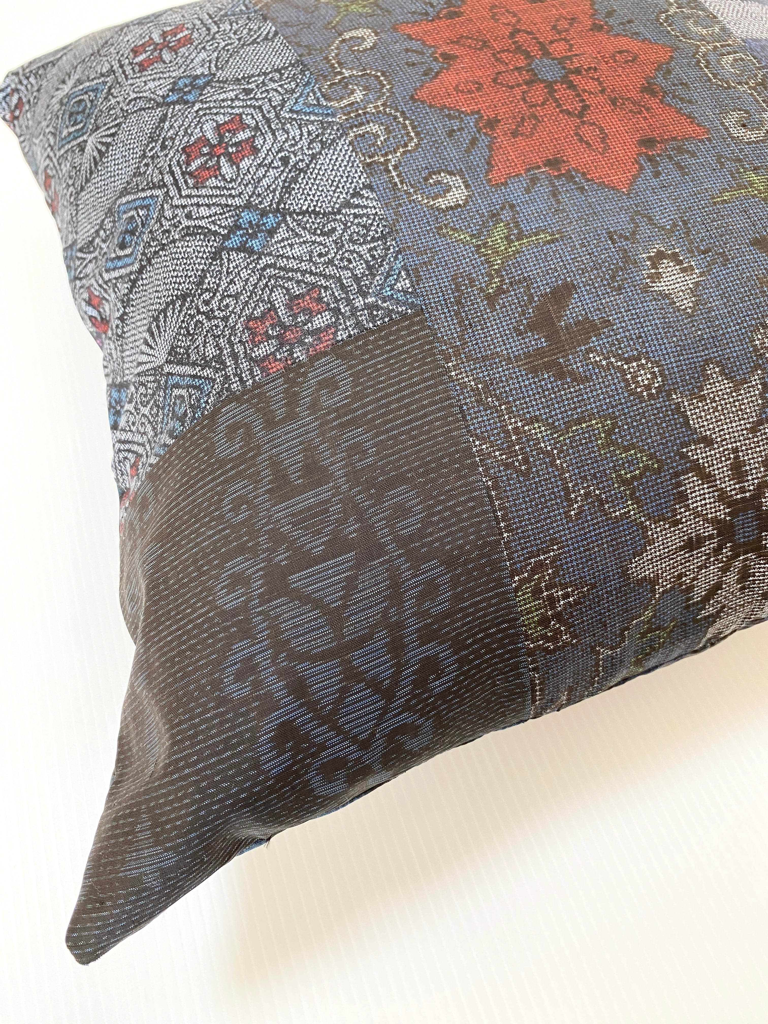大島の古着物をリメイクして作製したクッションカバー座布団カバーです