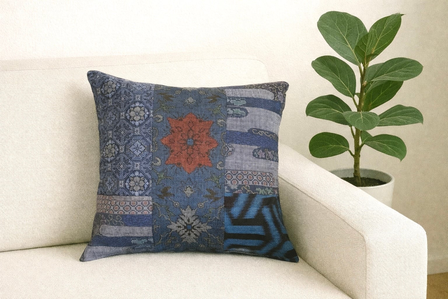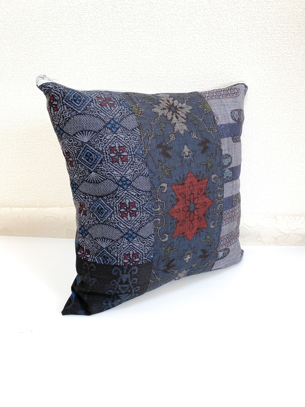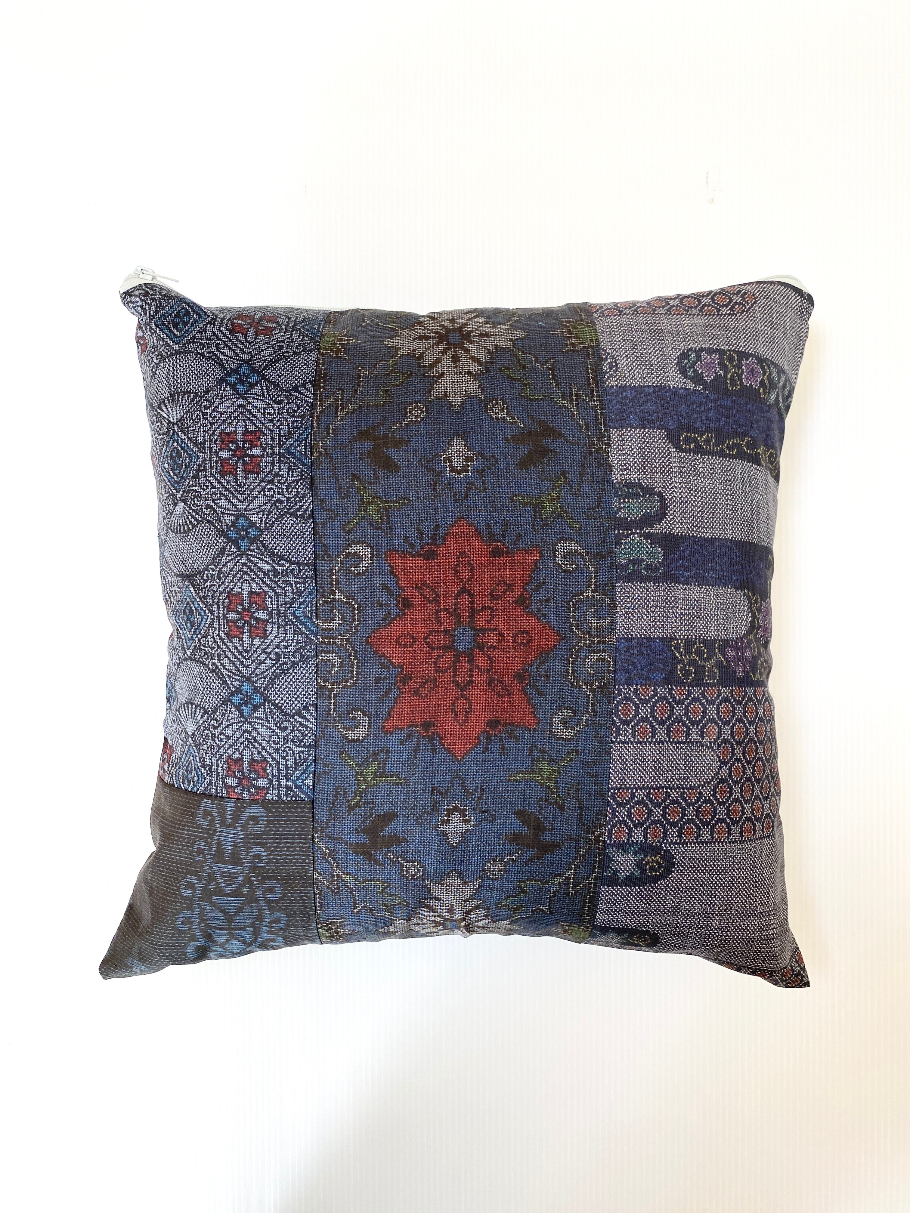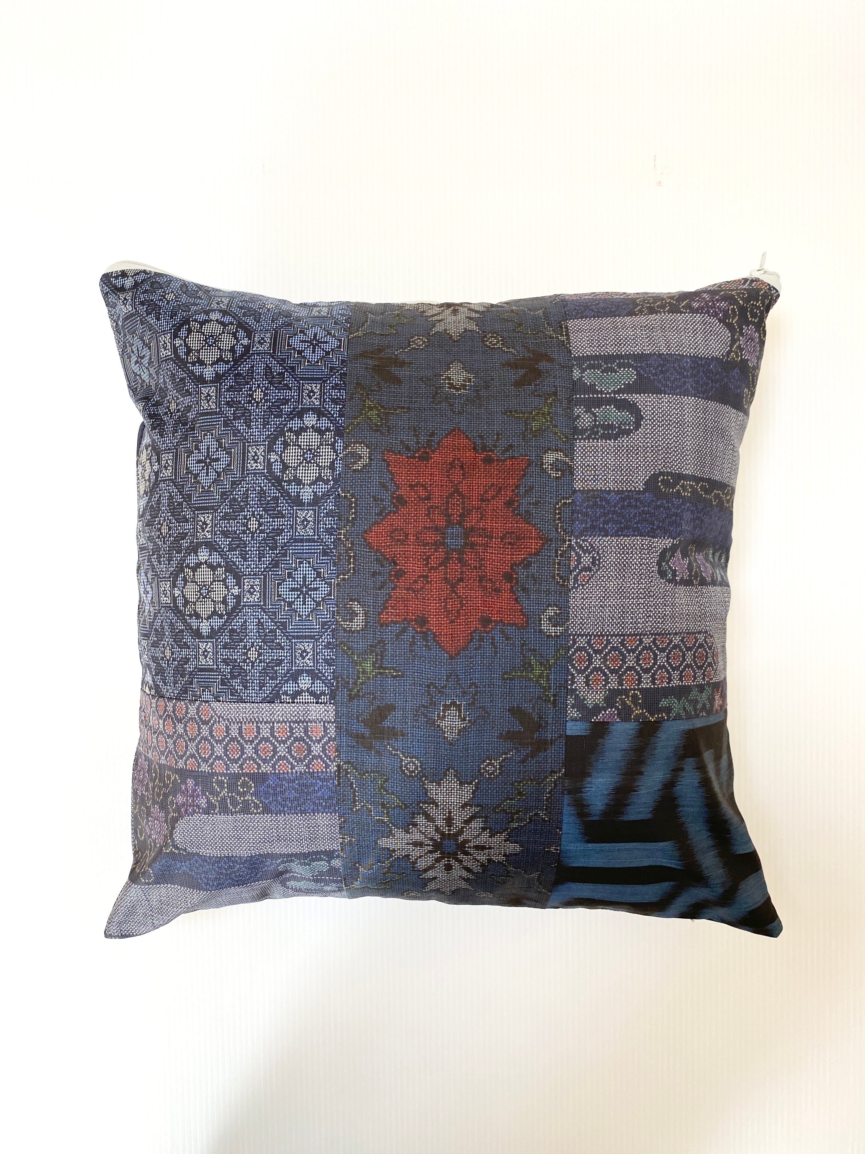 大島の古着物をリメイクして作製したクッションカバー座布団カバーです