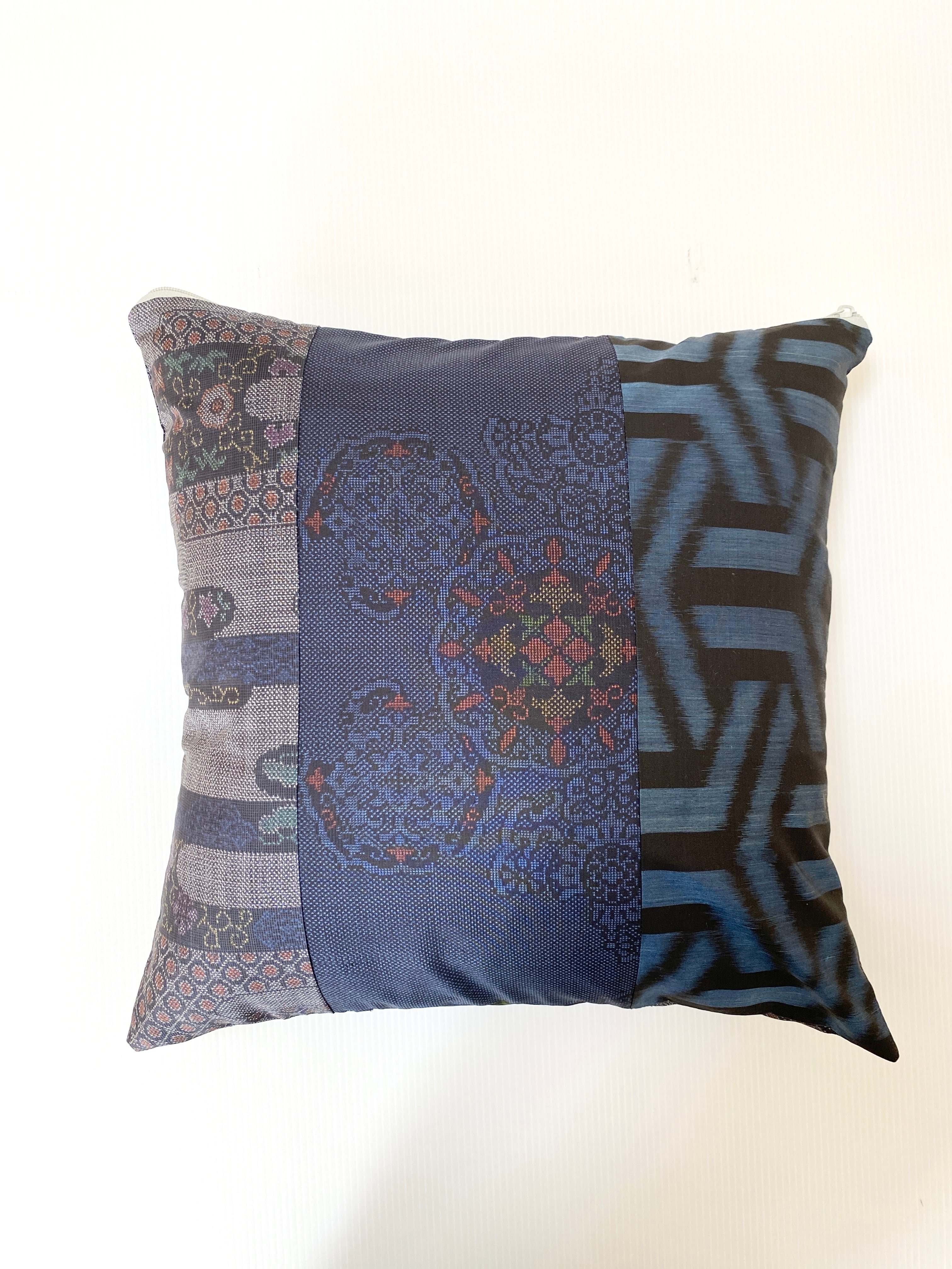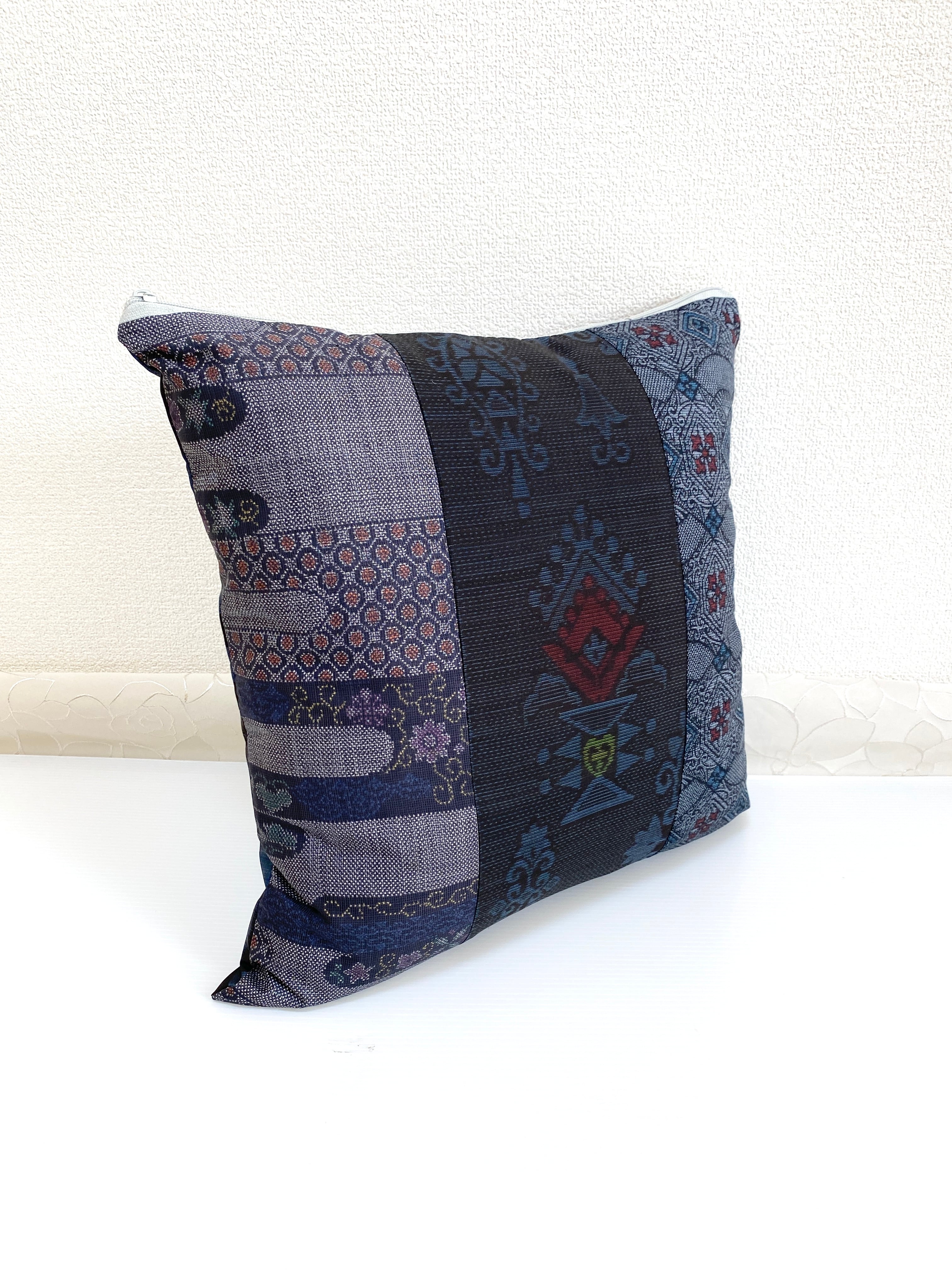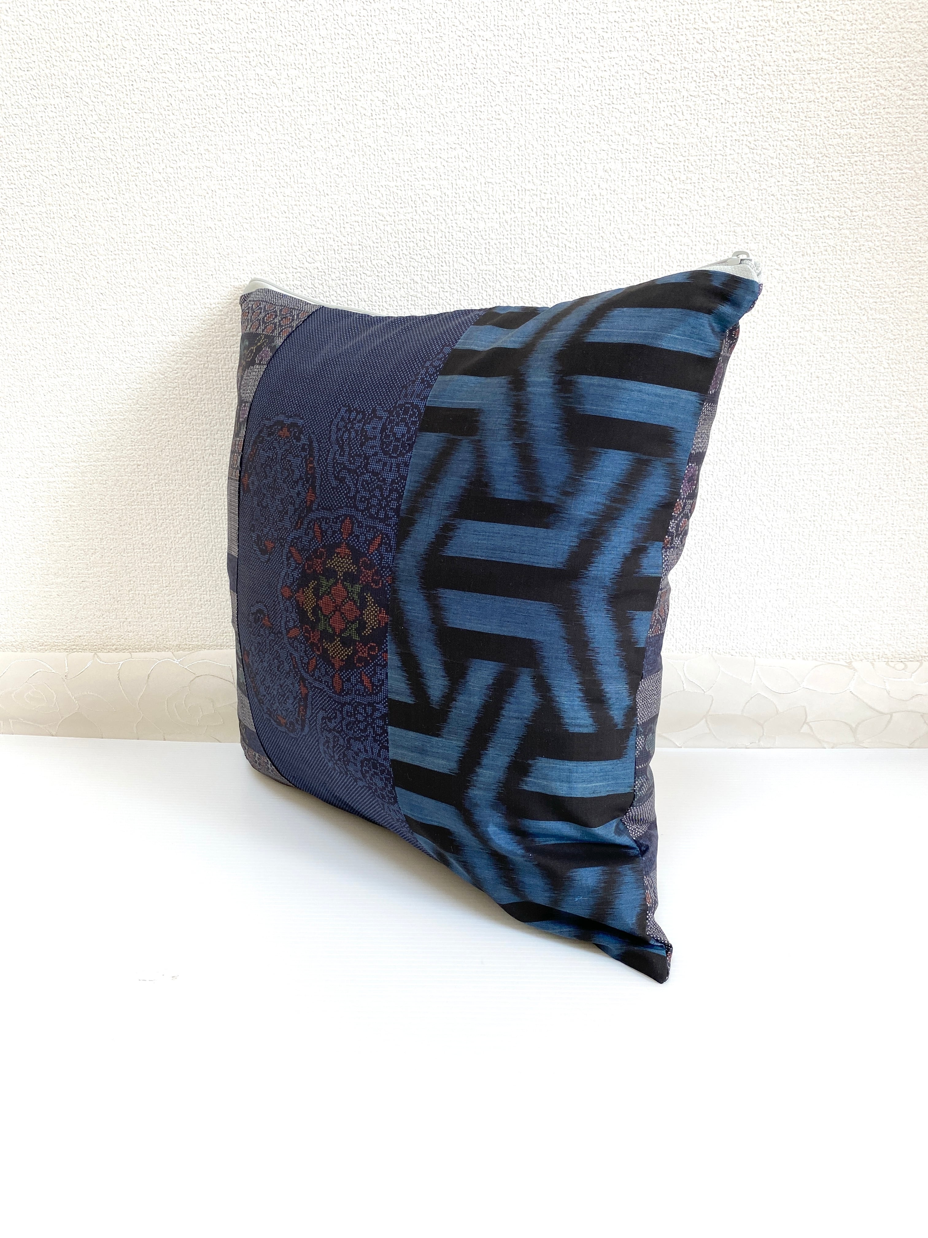 大島の古着物をリメイクして作製したクッションカバー座布団カバーです
