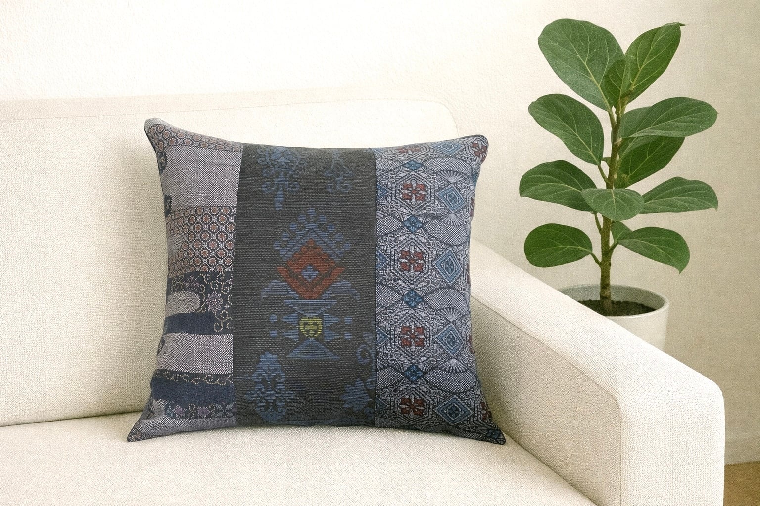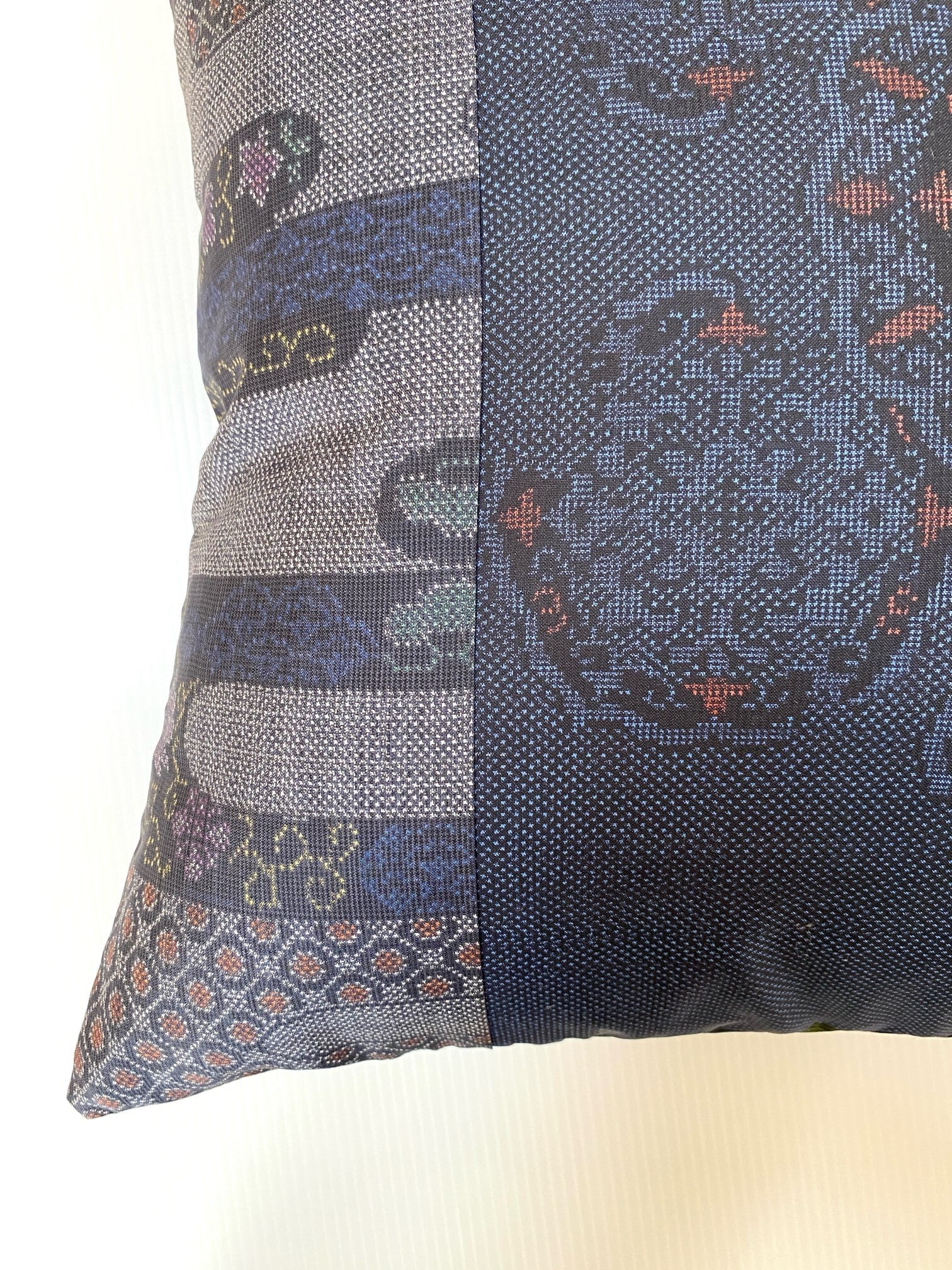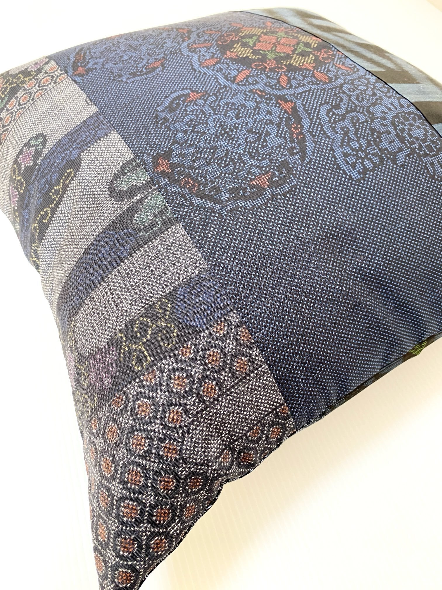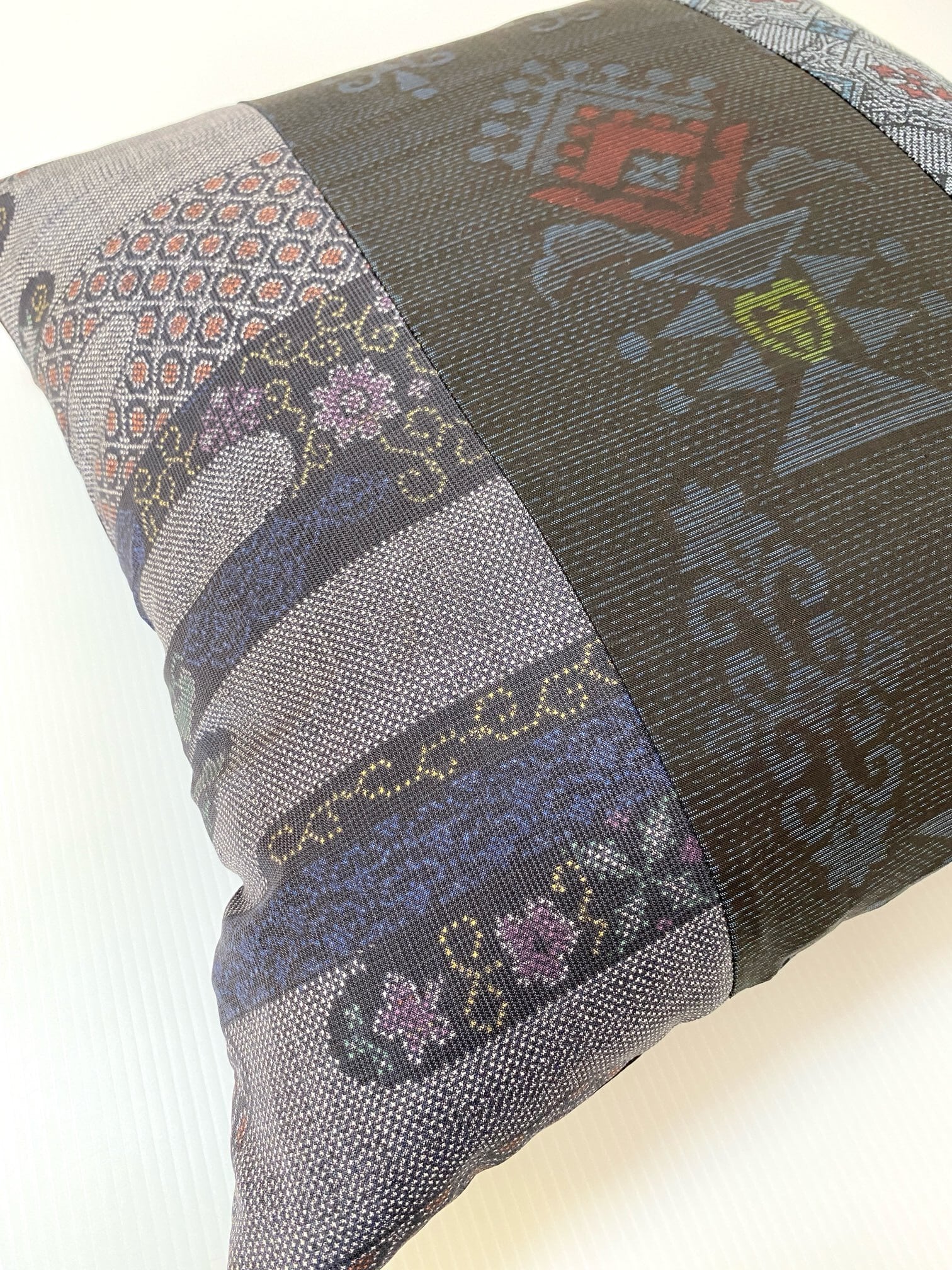 大島の古着物をリメイクして作製したクッションカバー座布団カバーです