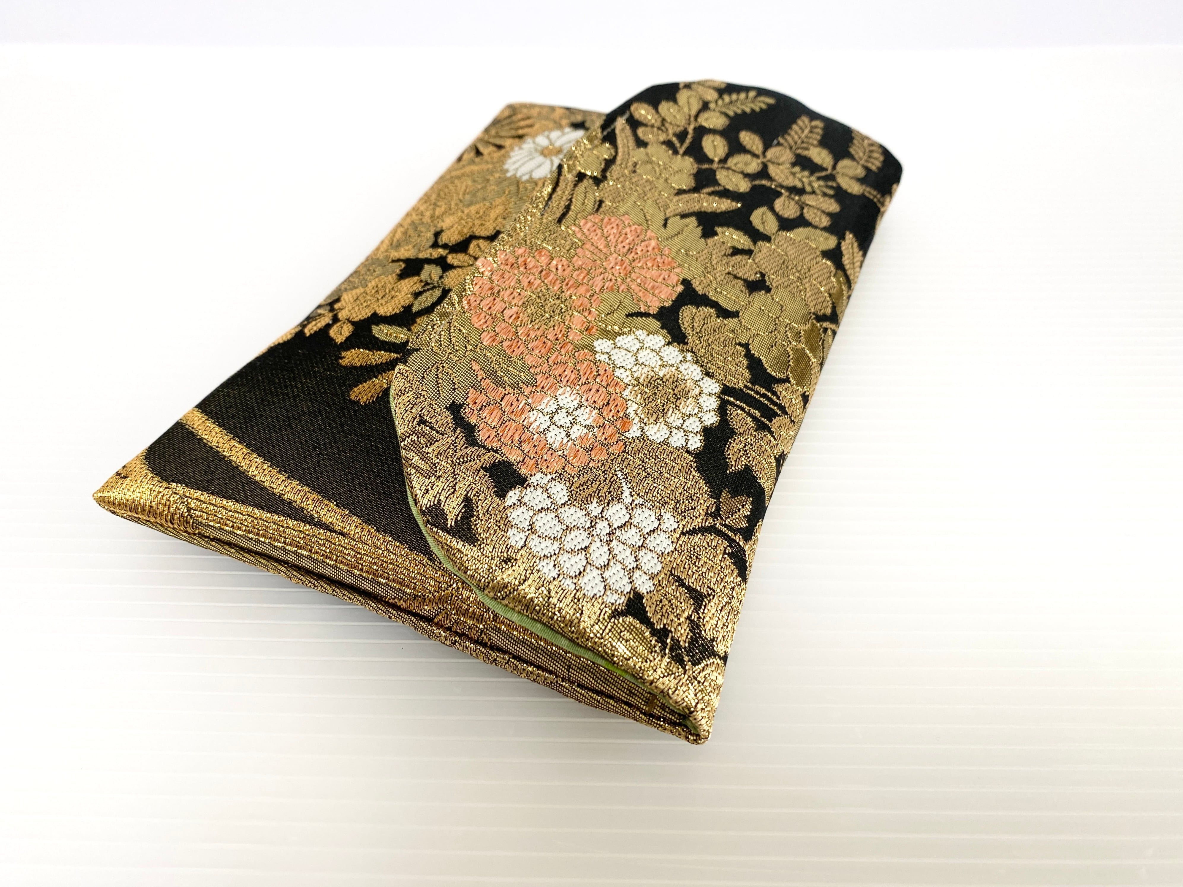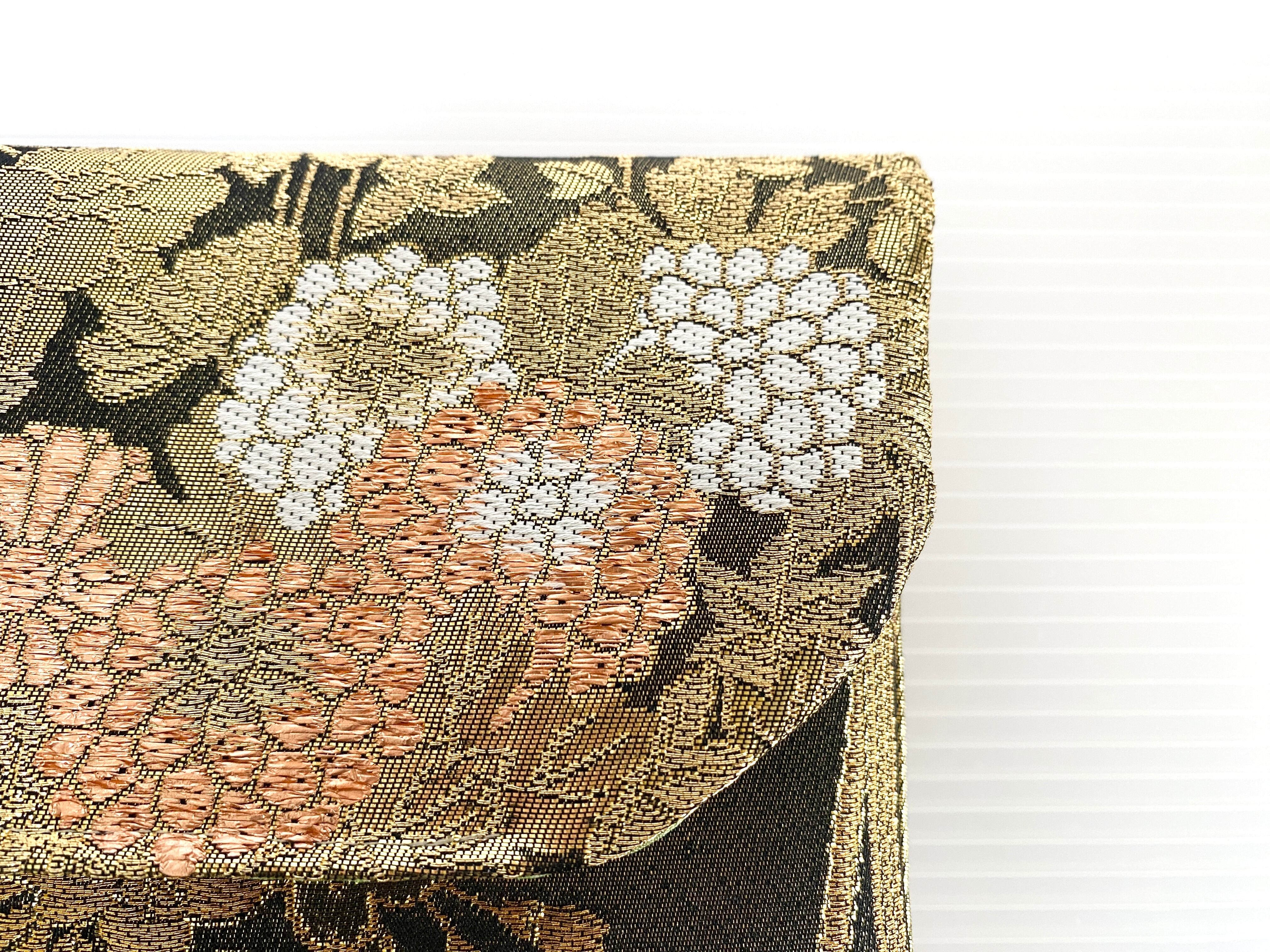 触り心地が滑らかで手にしっくりとくる安心感。絵柄の鮮やかさは日本の帯ならではの存在感で素晴らしく華やかな美しさです