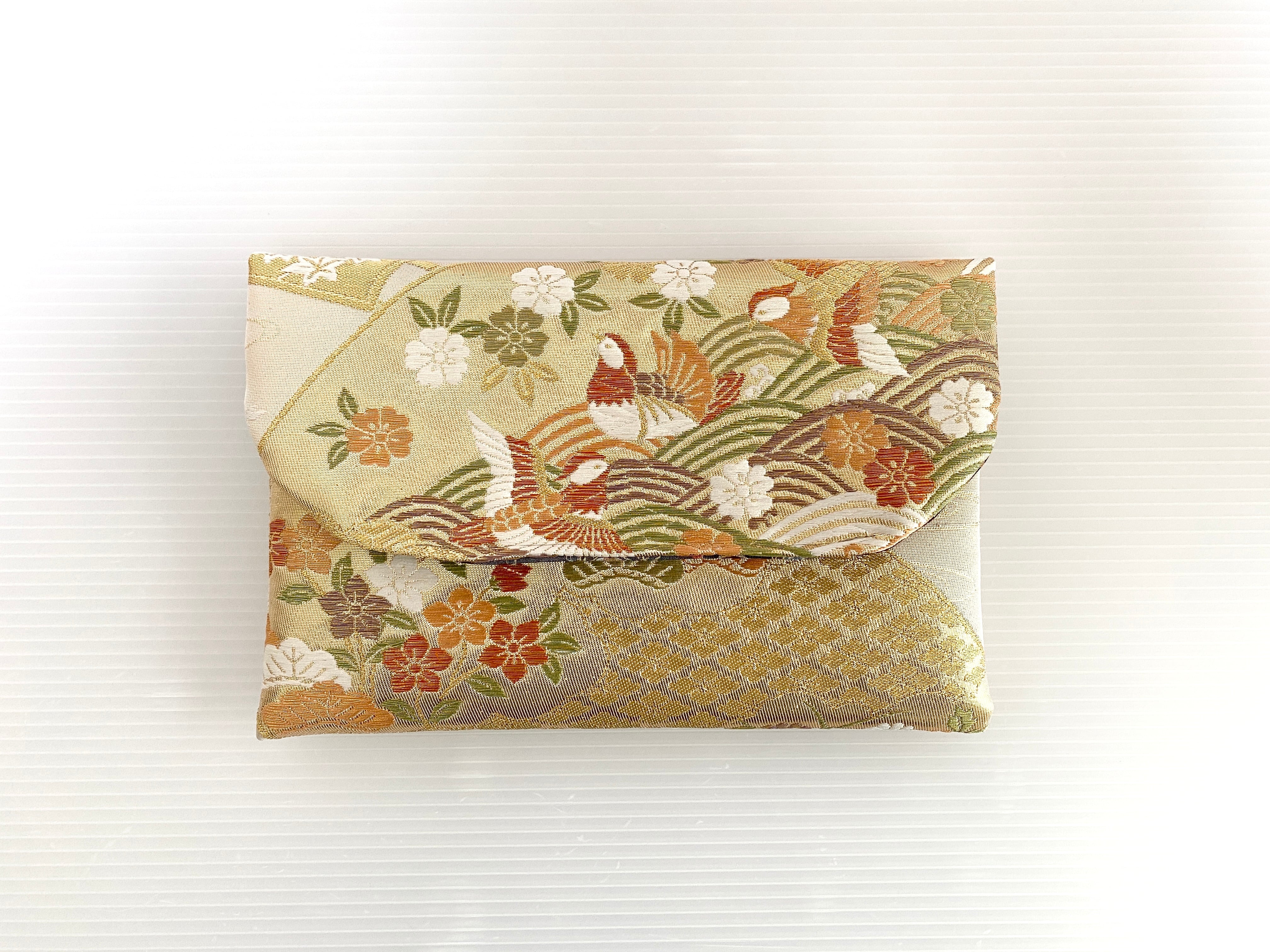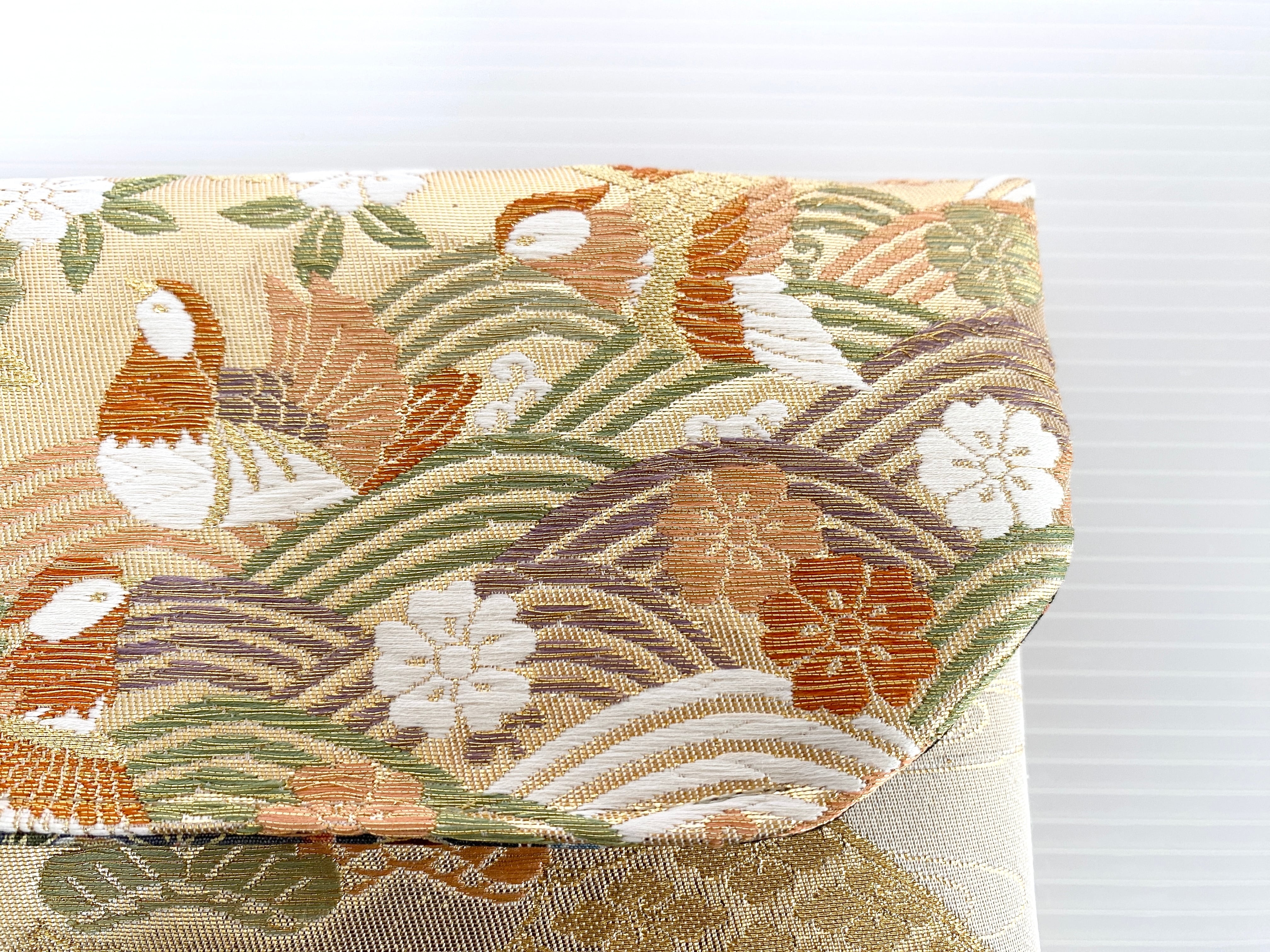 触り心地が滑らかで手にしっくりとくる安心感。絵柄の鮮やかさは日本の帯ならではの存在感で素晴らしく華やかな美しさです