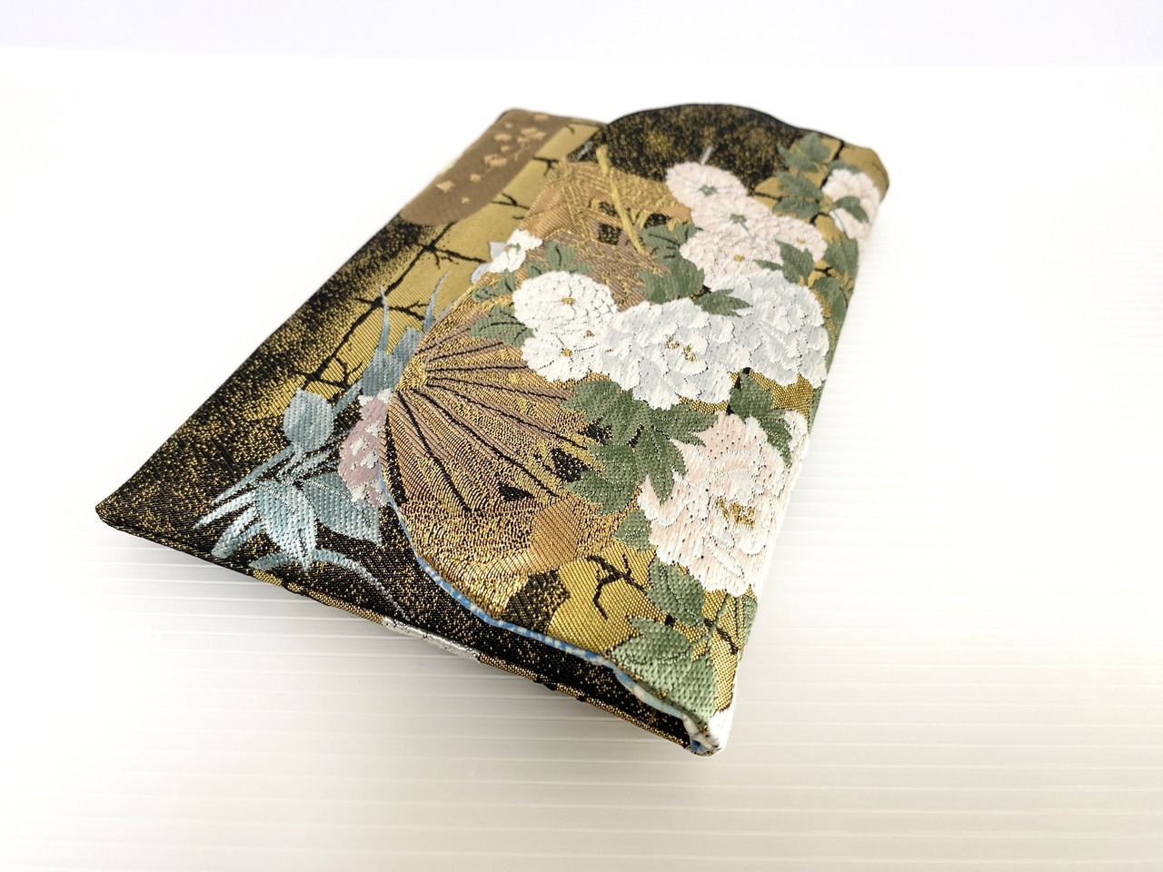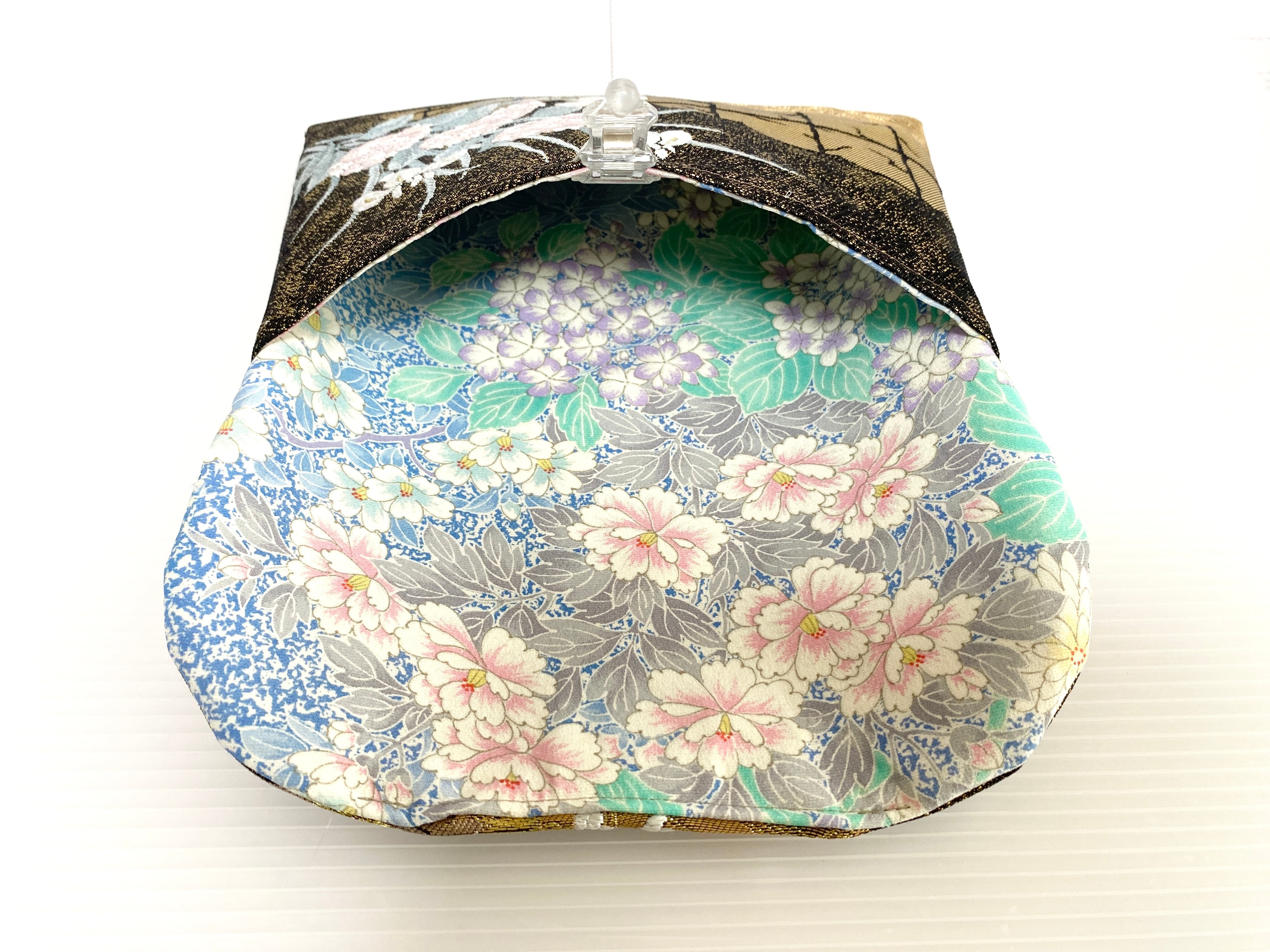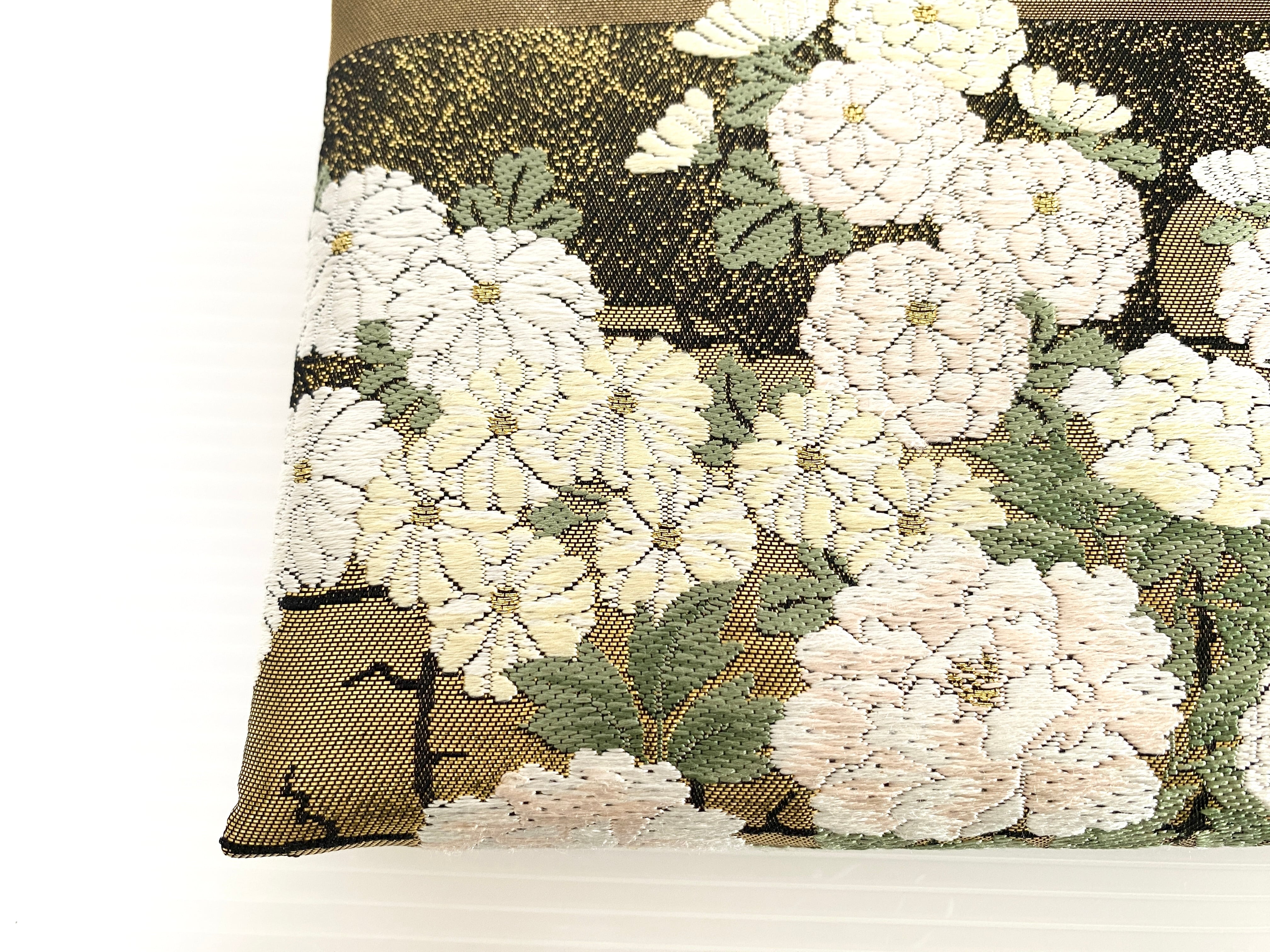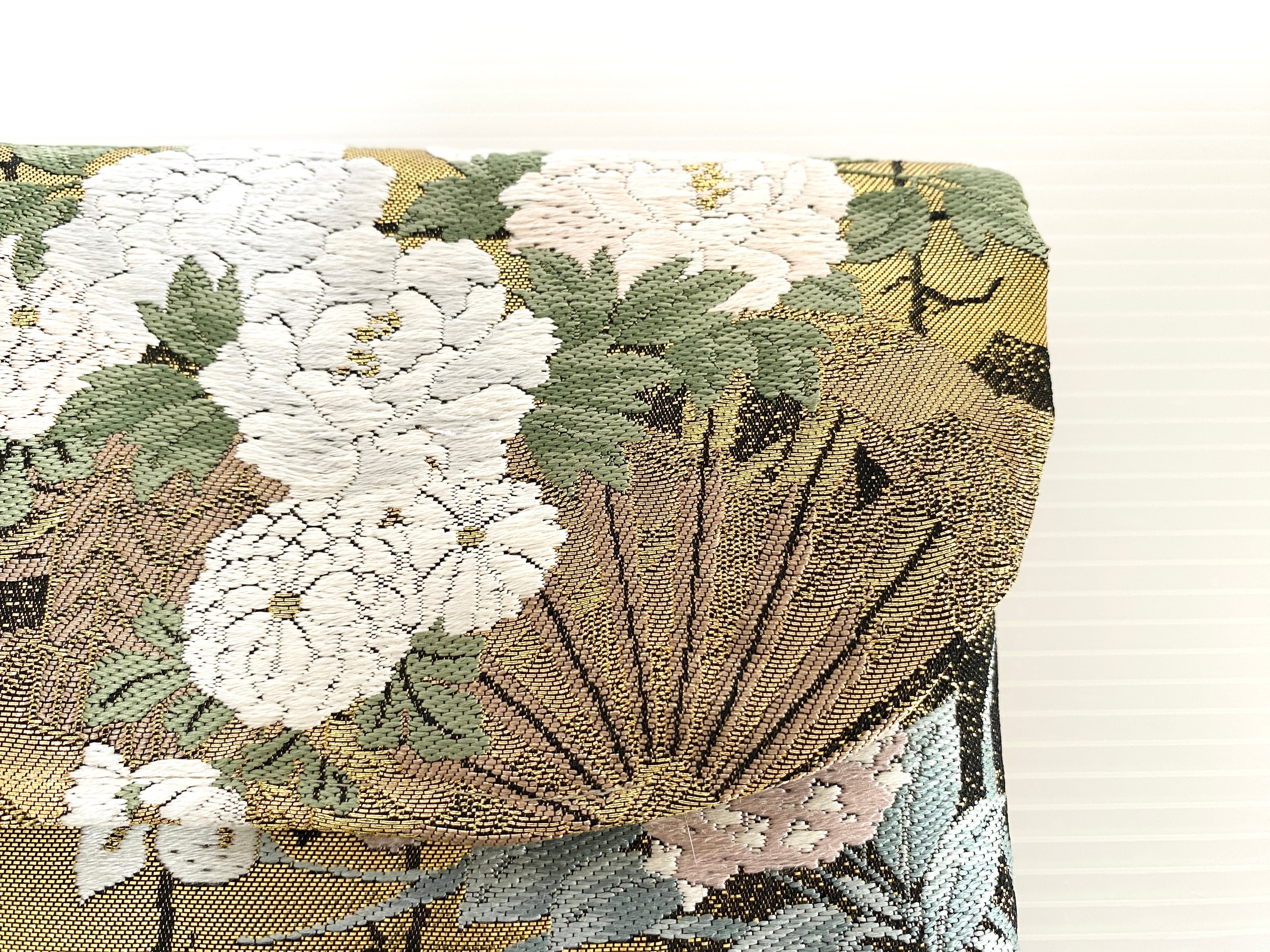 触り心地が滑らかで手にしっくりとくる安心感。絵柄の鮮やかさは日本の帯ならではの存在感で素晴らしく華やかな美しさです