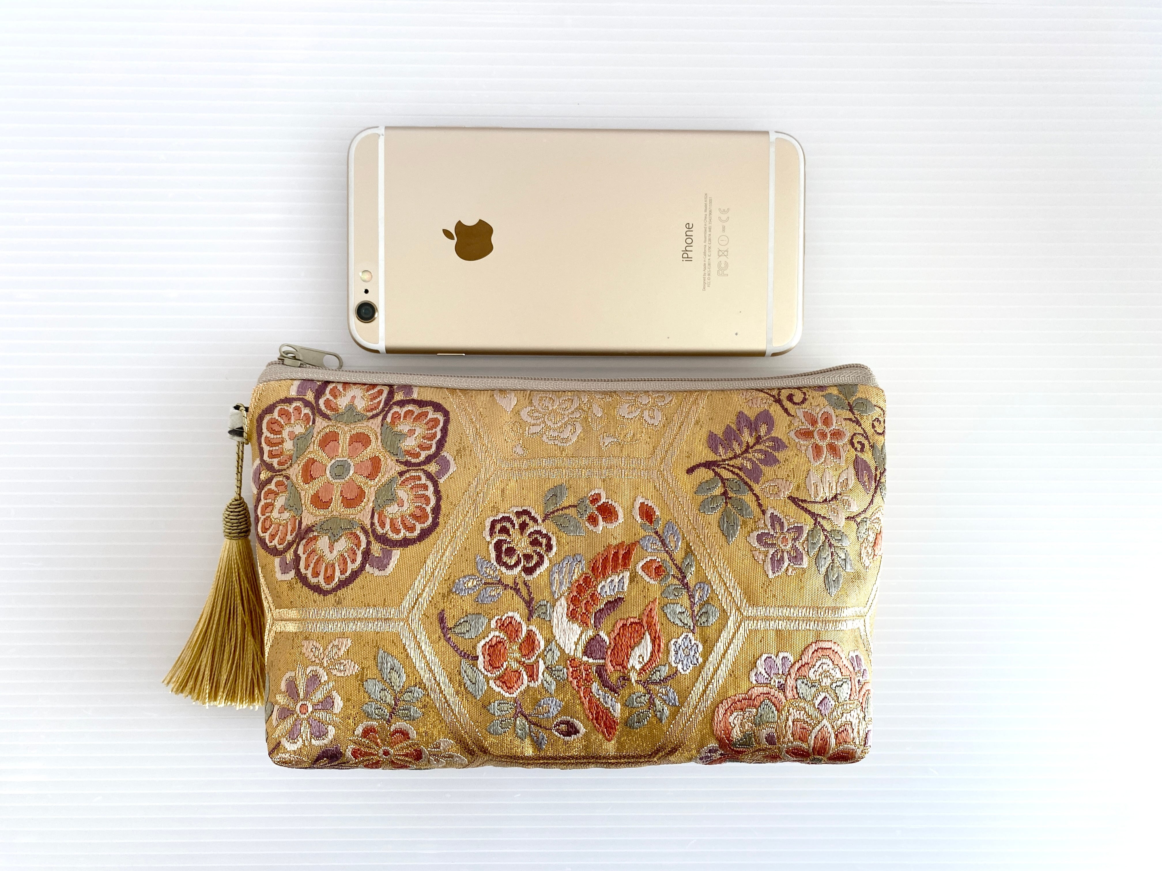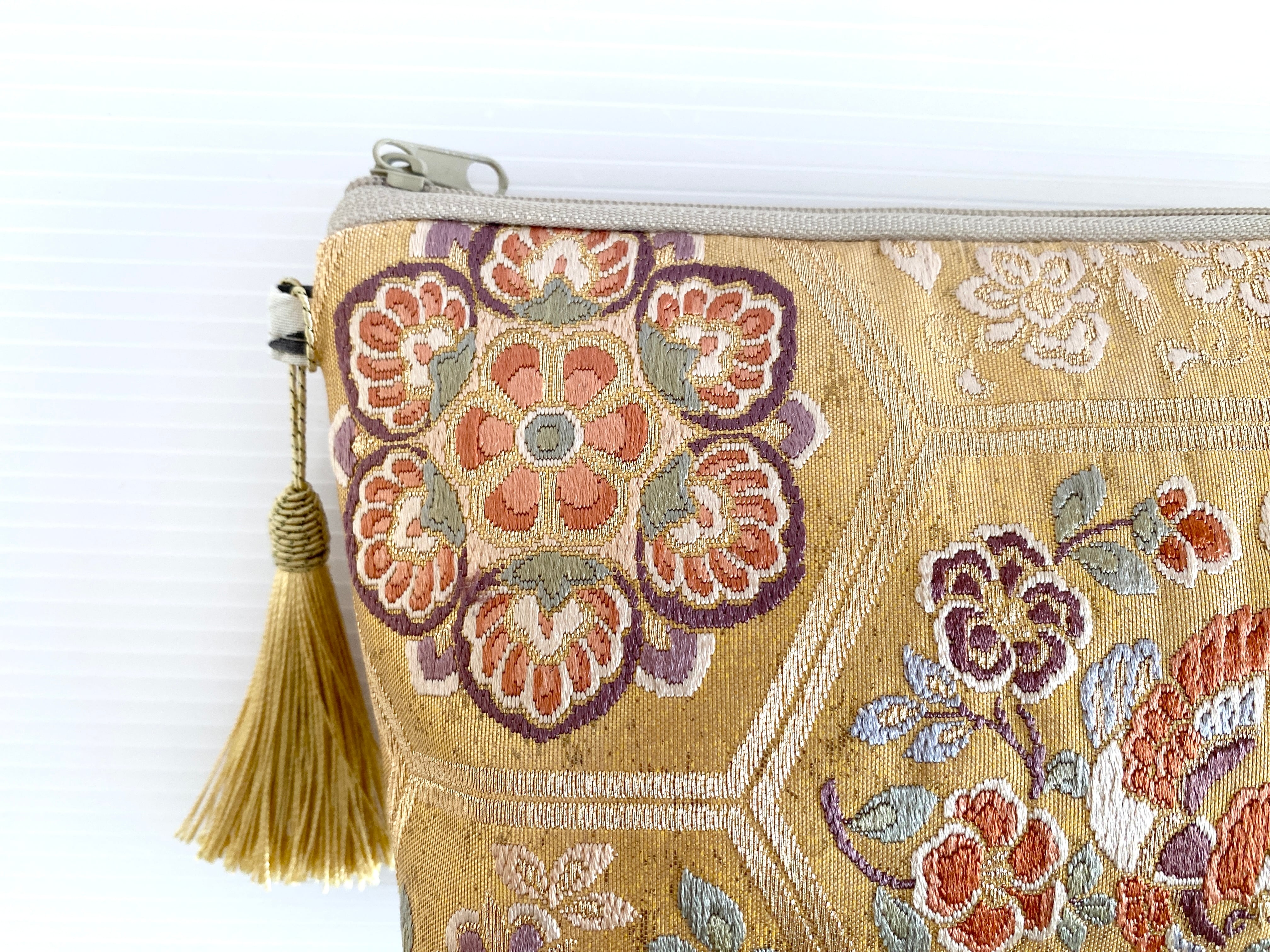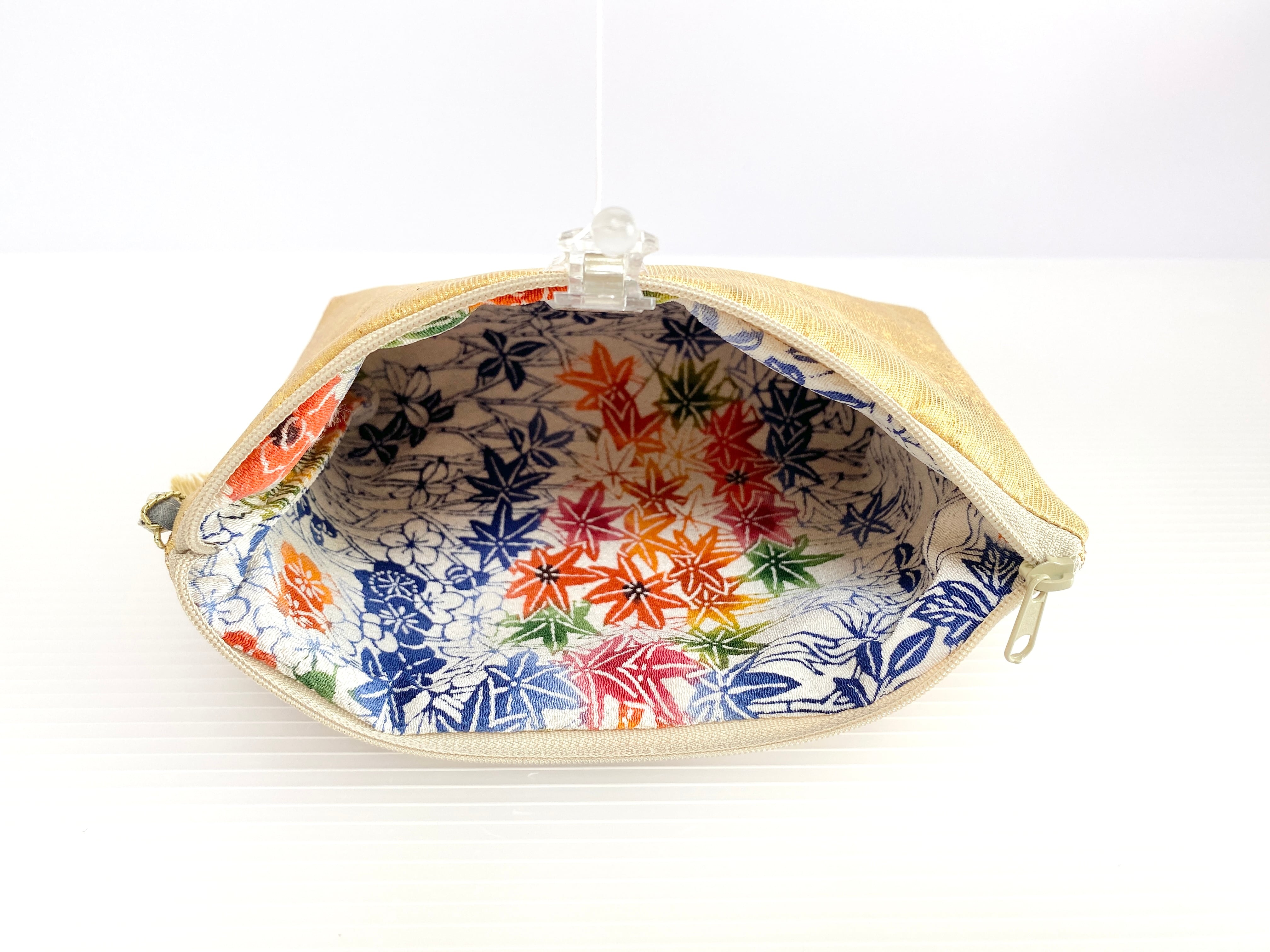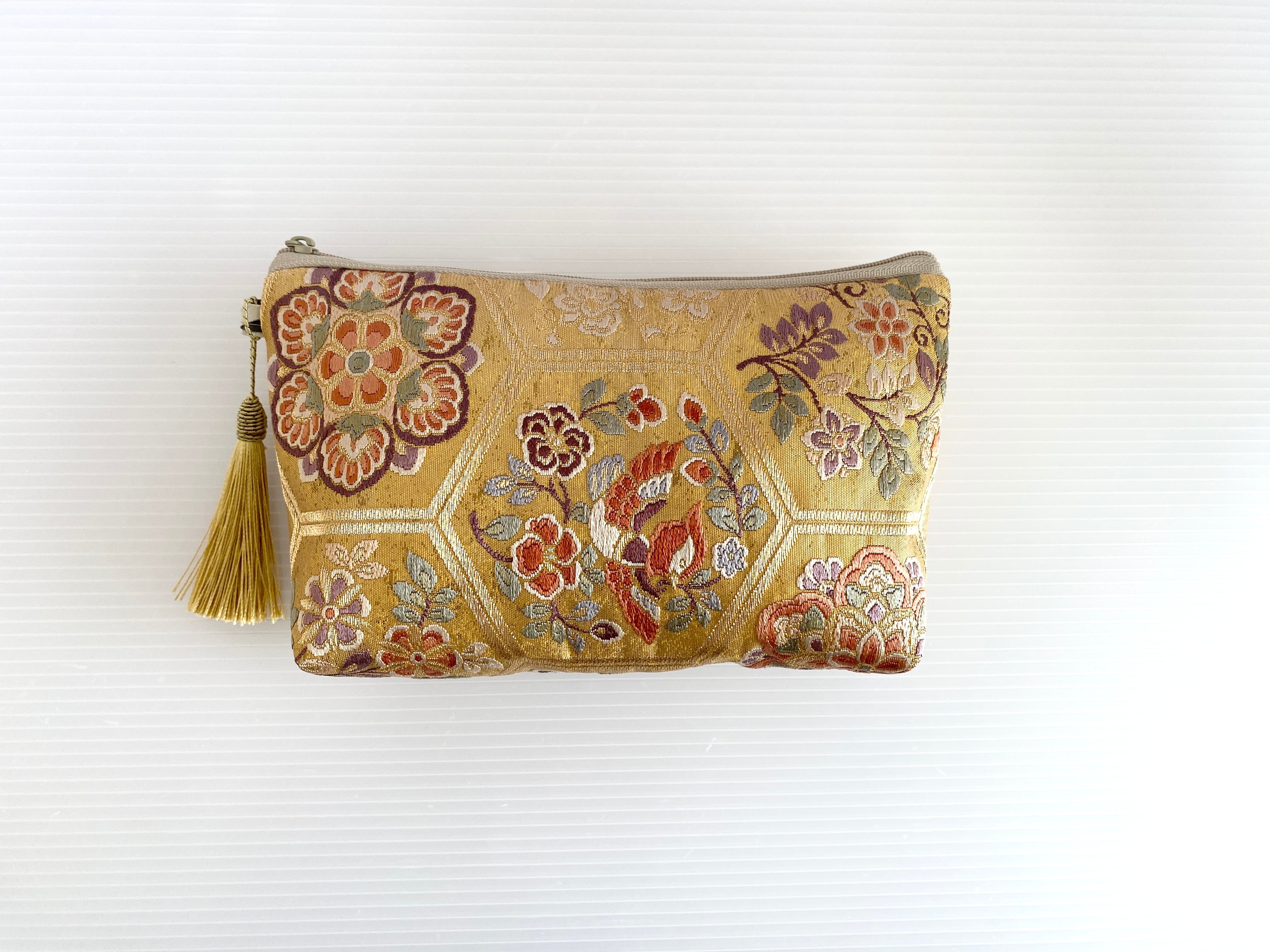 大人可愛いセレブポーチ帯リメイクポーチ化粧ポーチマルチポーチ着物リメイクポーチハンドメイド送料込みNO.6185