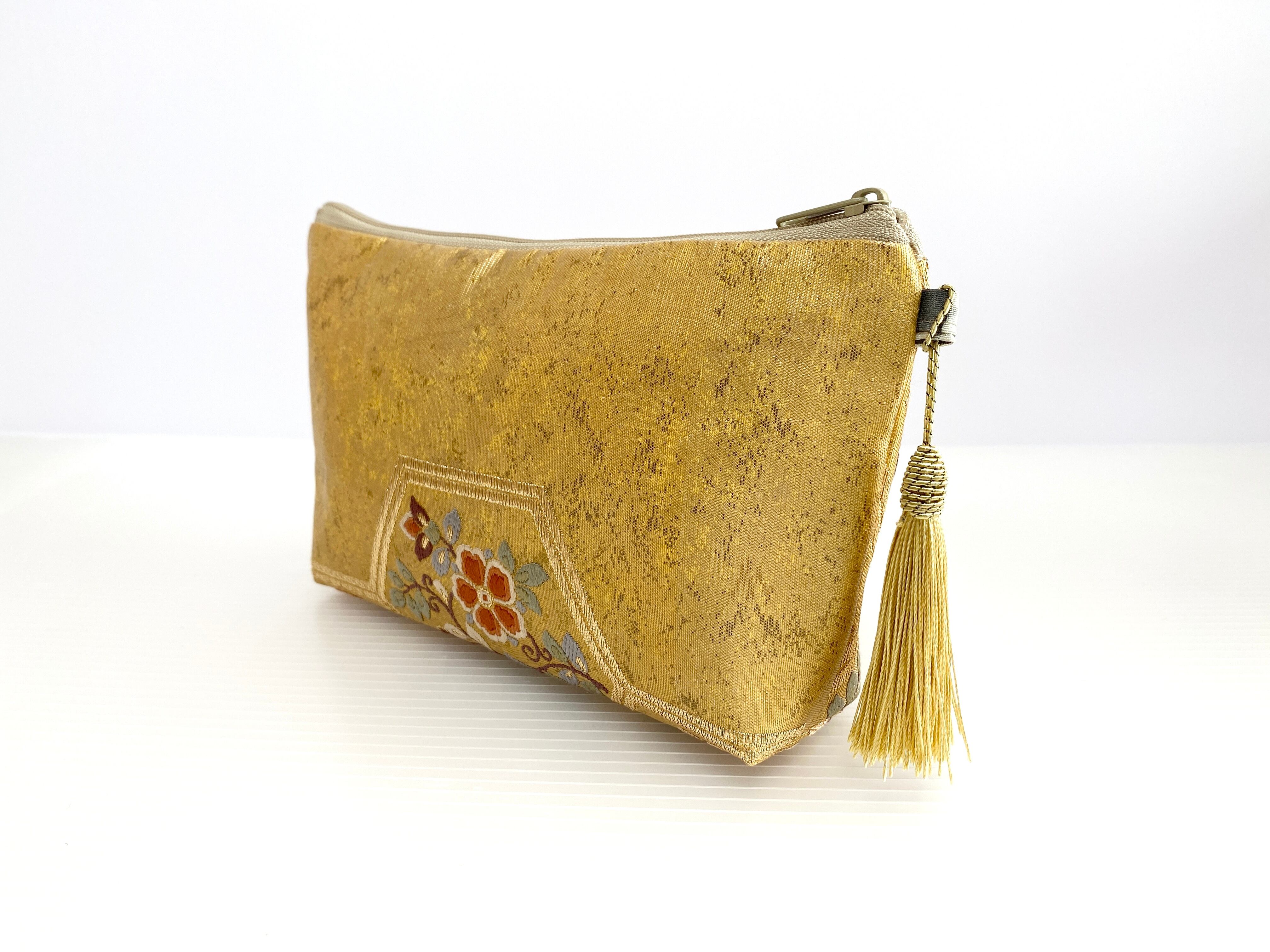 日本の古着物帯をリメイクして作製したポーチでハンドメイド品です