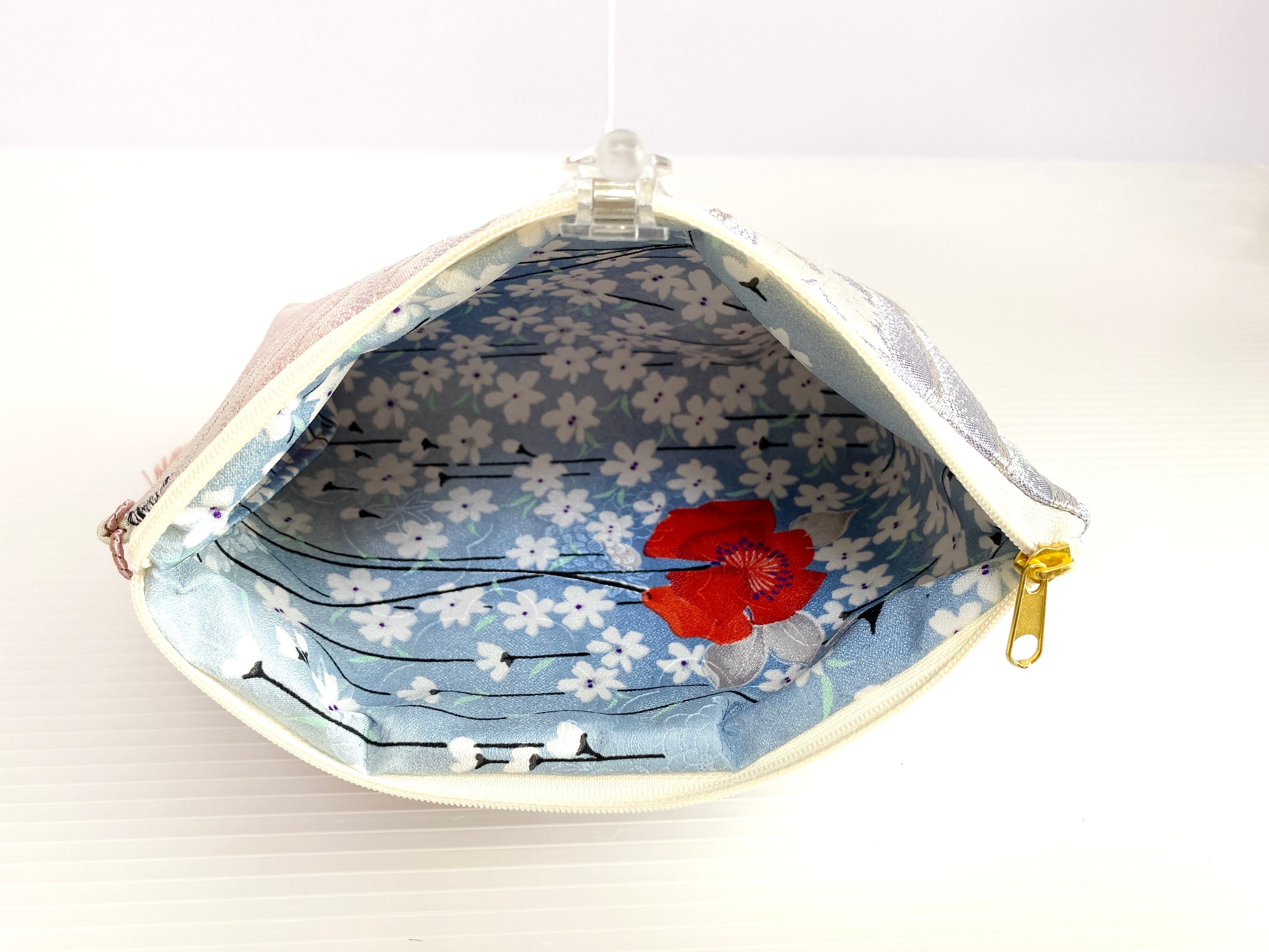 内側の裏生地にも着物布を使用しておりますのでしっかりとした造りの帯リメイクポーチ着物リメイクポーチ