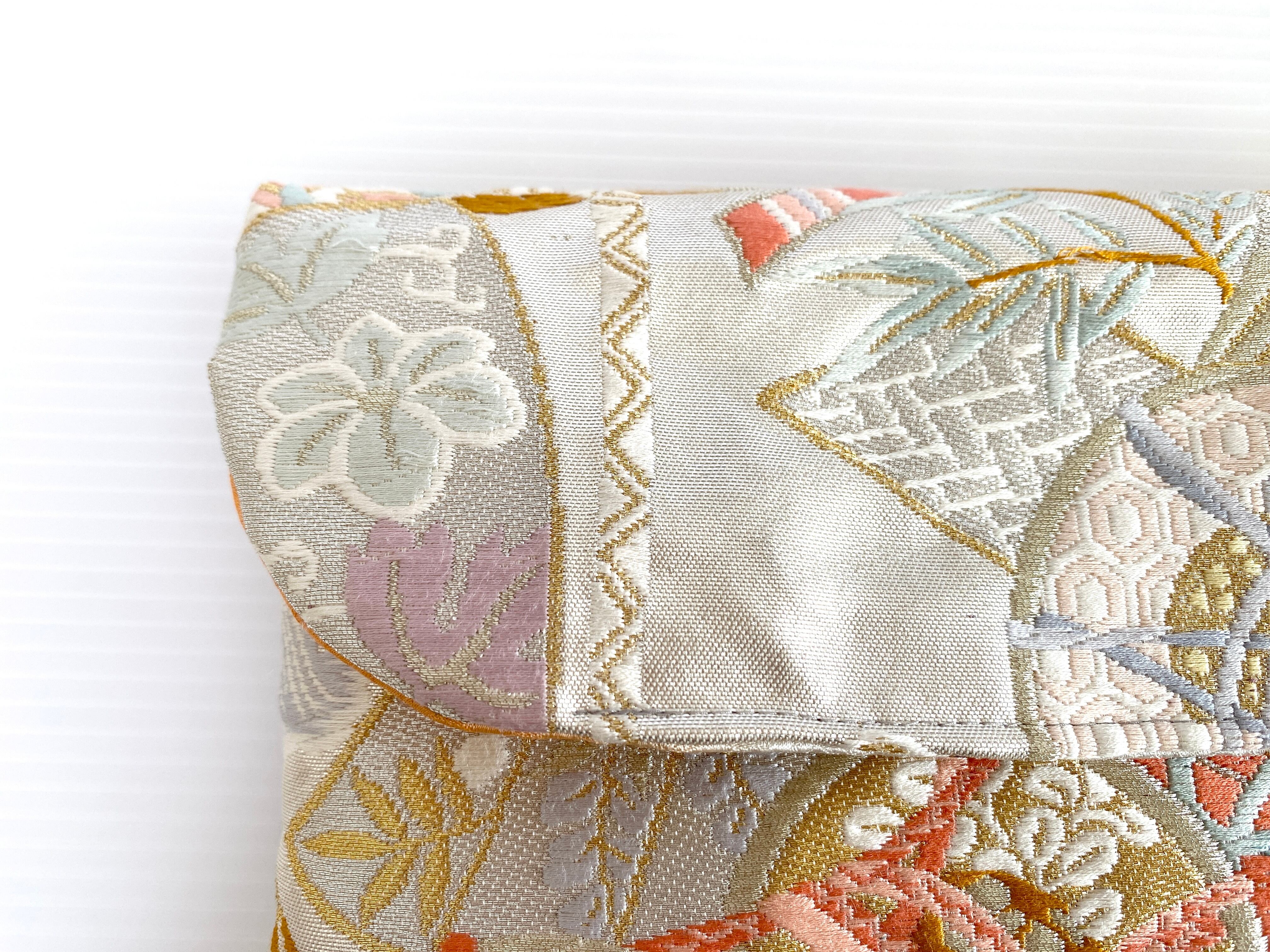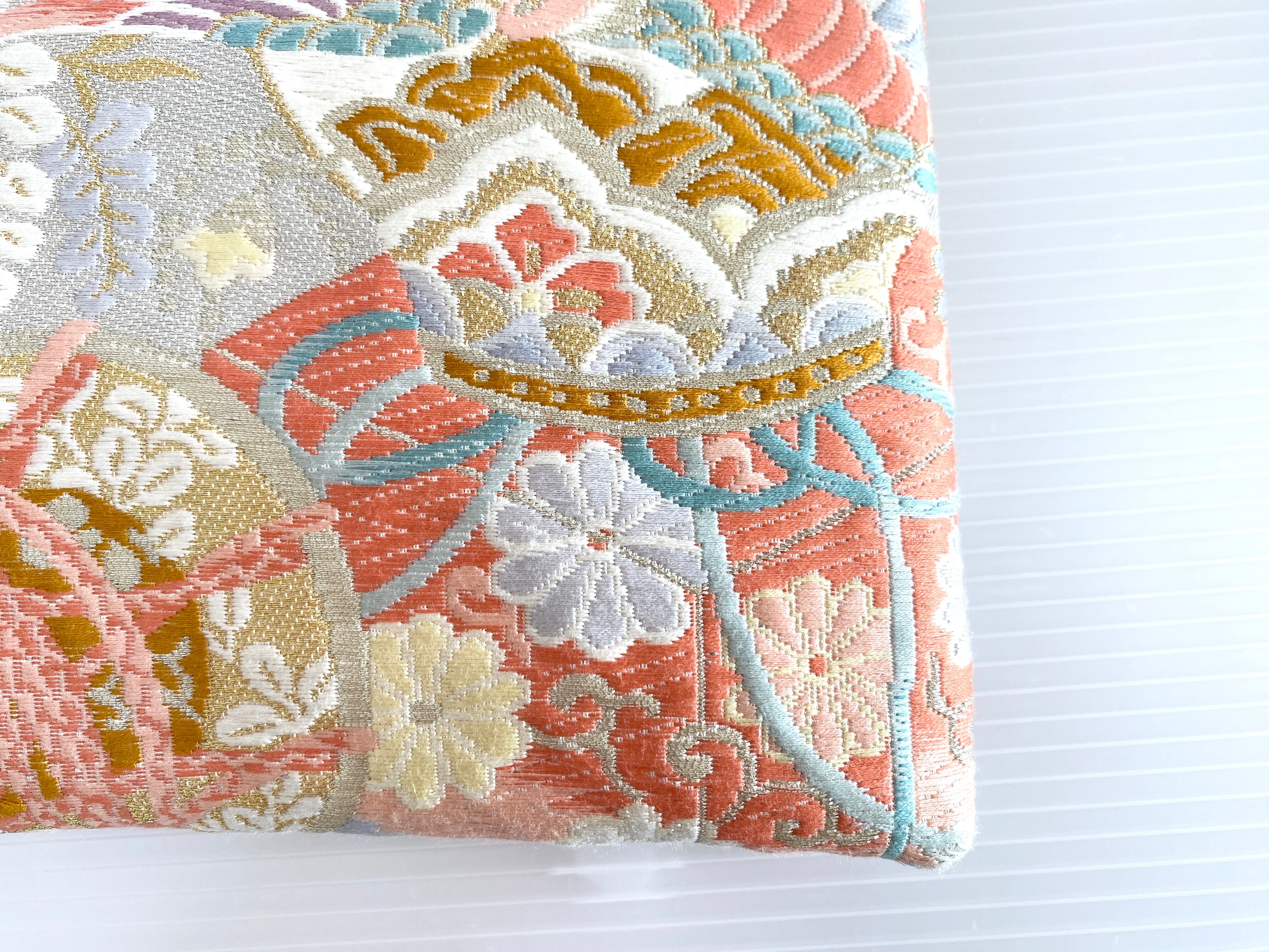 触り心地が滑らかで手にしっくりとくる安心感。絵柄の鮮やかさは日本の帯ならではの存在感で素晴らしく華やかな美しさです