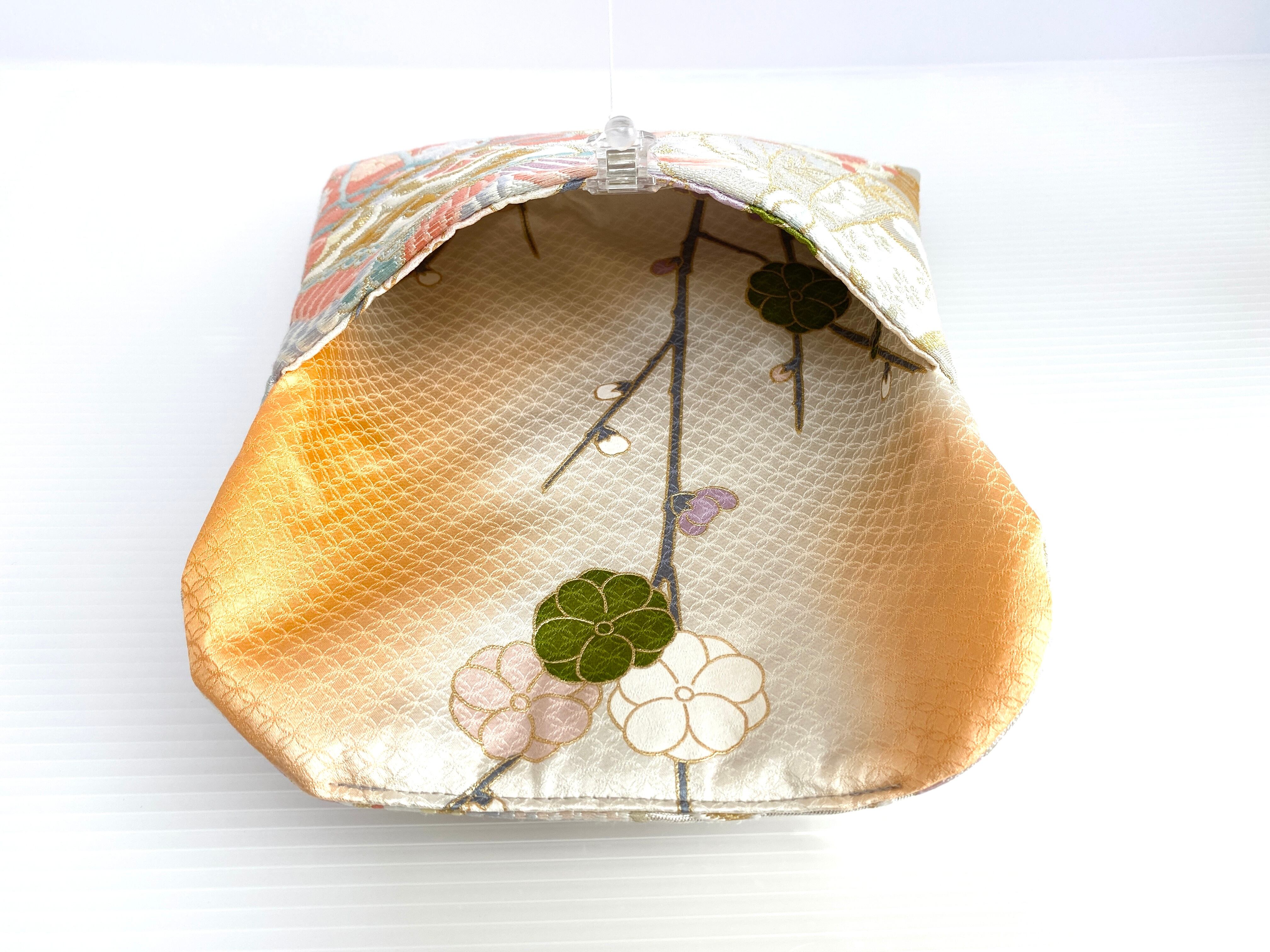 商品はハンドメイド職人が1点1点丁寧に仕上げております。生地の検品は厳選し注意して行っておりますが古帯や古着物をリメイクという特性上、生地にごく多少の難(糸や生地の擦れ折りシワ針穴など等)がある物もございます。ですが販売するにあたりよほどのシミや糸ほつれ・臭いのあるものは使用しておりませんのでご安心頂き着物帯リメイクをご理解・ご了承のうえ購入して頂きますようお願い致します