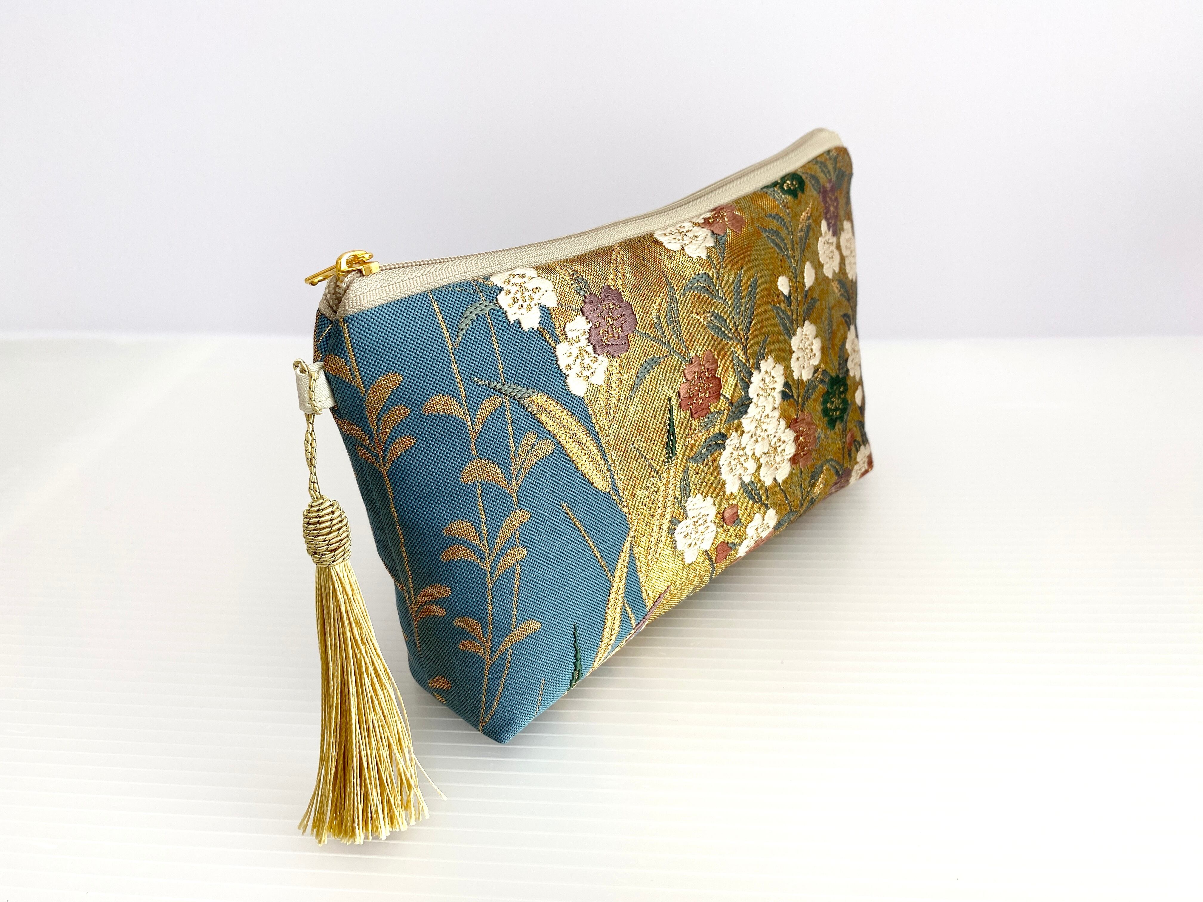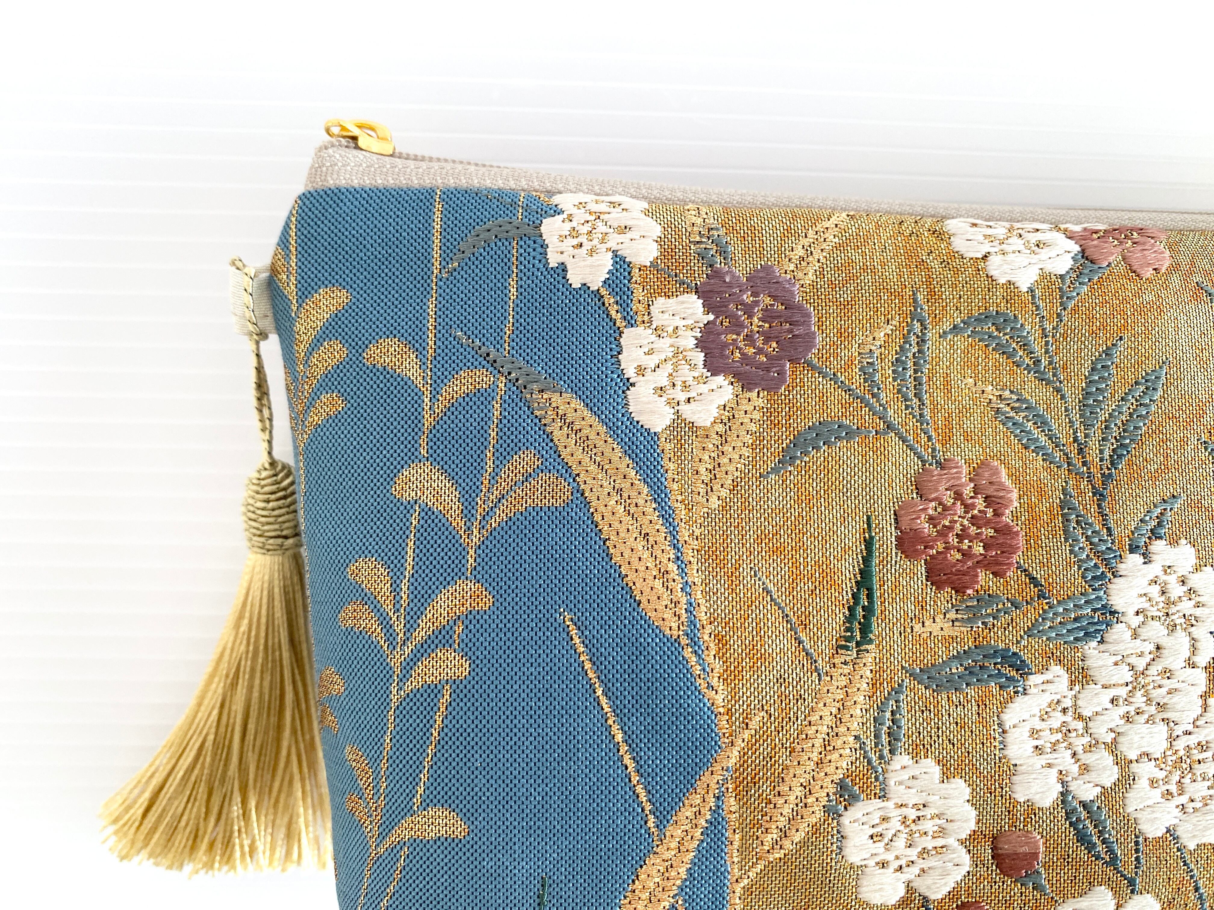 日本の古着物帯をリメイクして作製したポーチでハンドメイド品です