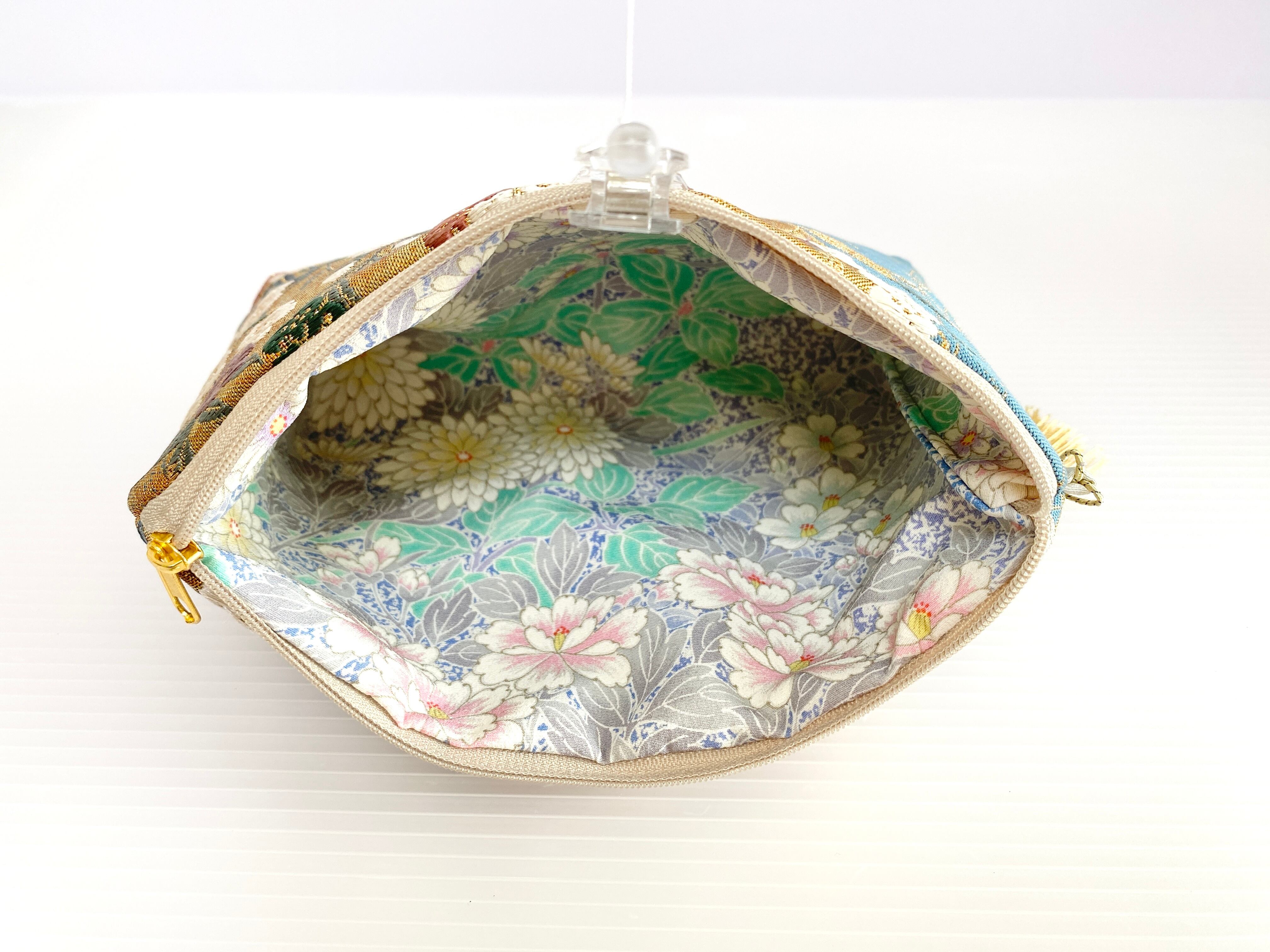 内側の裏生地にも着物布を使用しておりますのでしっかりとした造りの帯リメイクポーチ着物リメイクポーチ