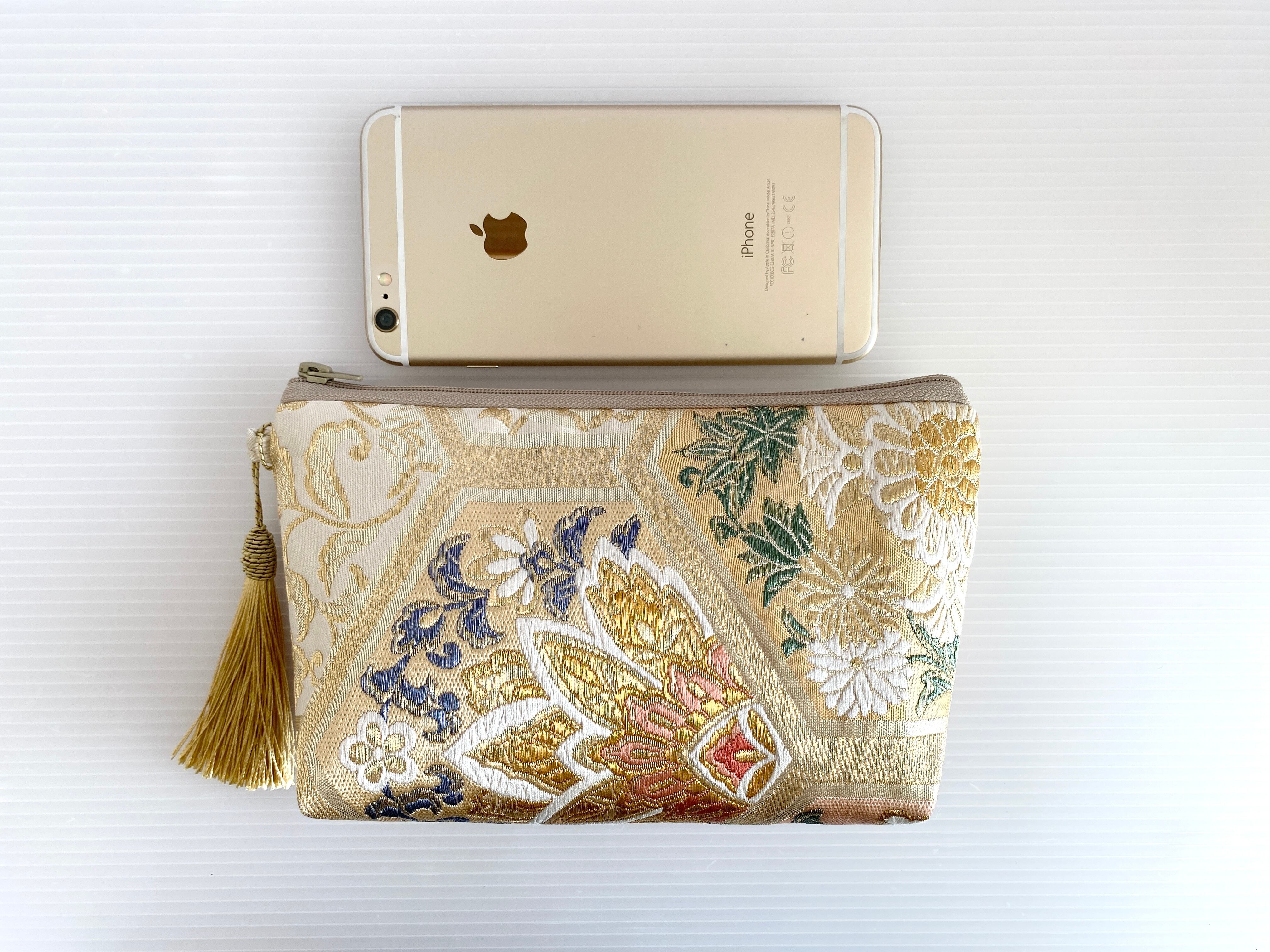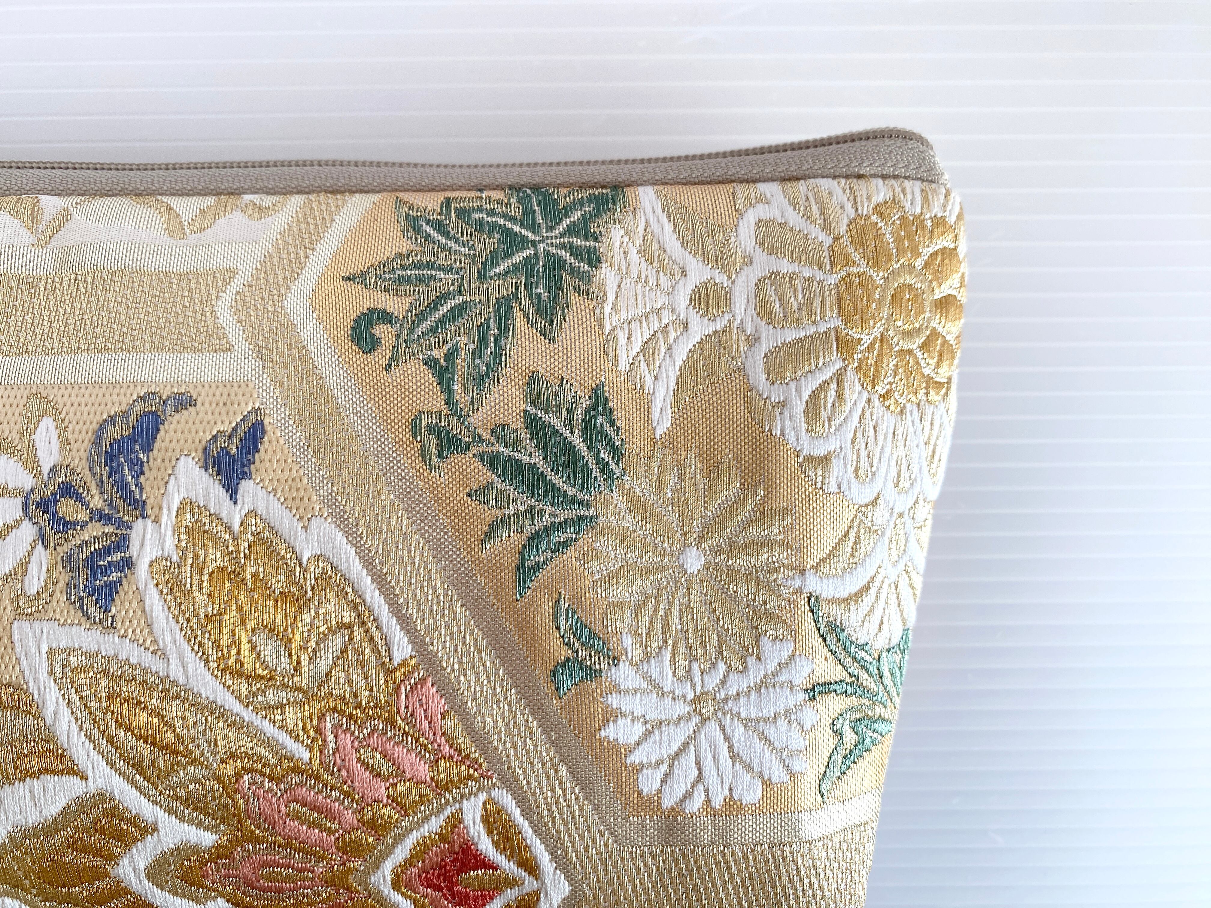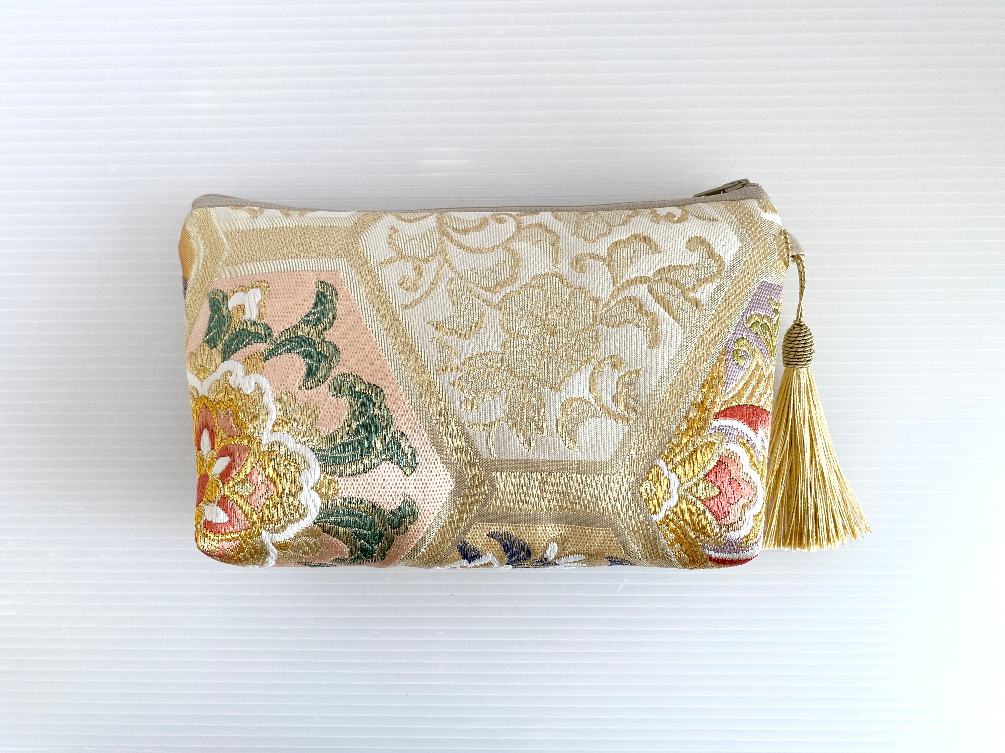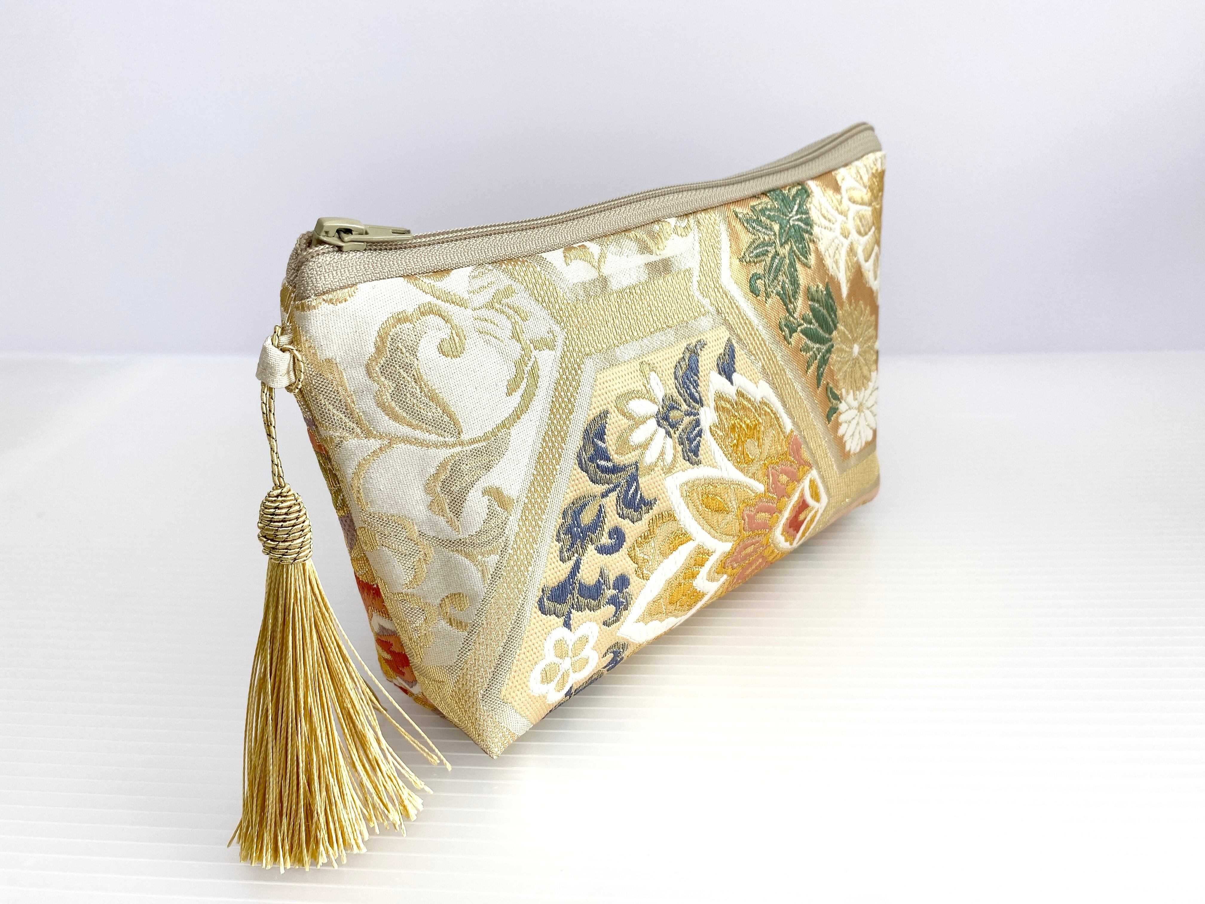 大人可愛いセレブポーチ帯リメイクポーチ化粧ポーチマルチポーチ着物リメイクポーチハンドメイド送料込みNO.6203