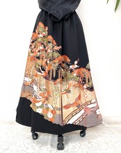 黒留袖着物をリメイクして作製したウエストゴムロングスカートフリーサイズです